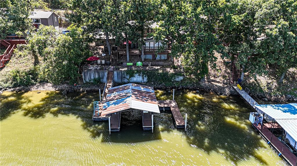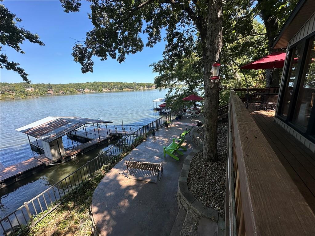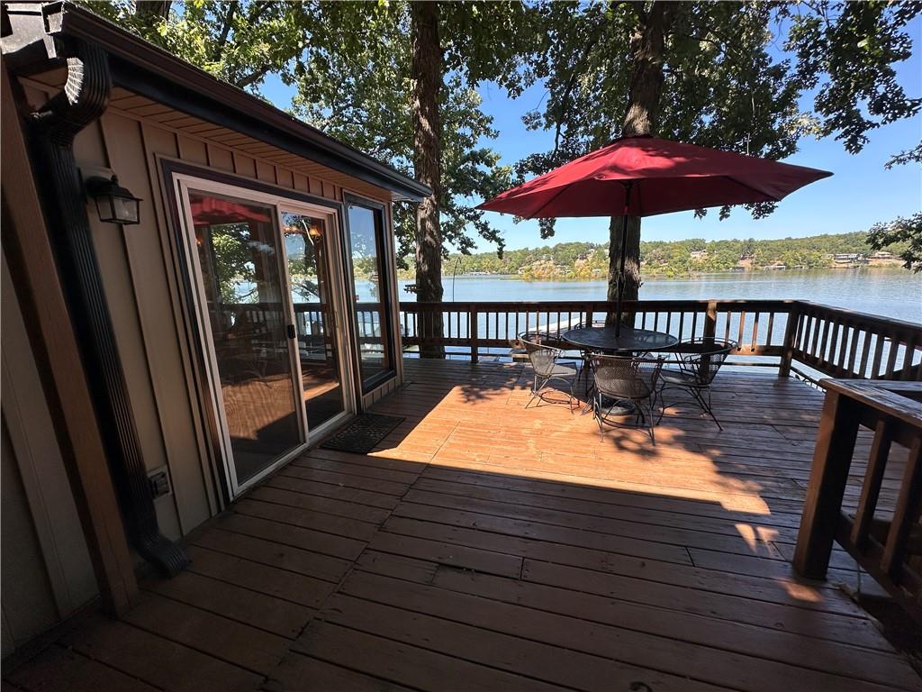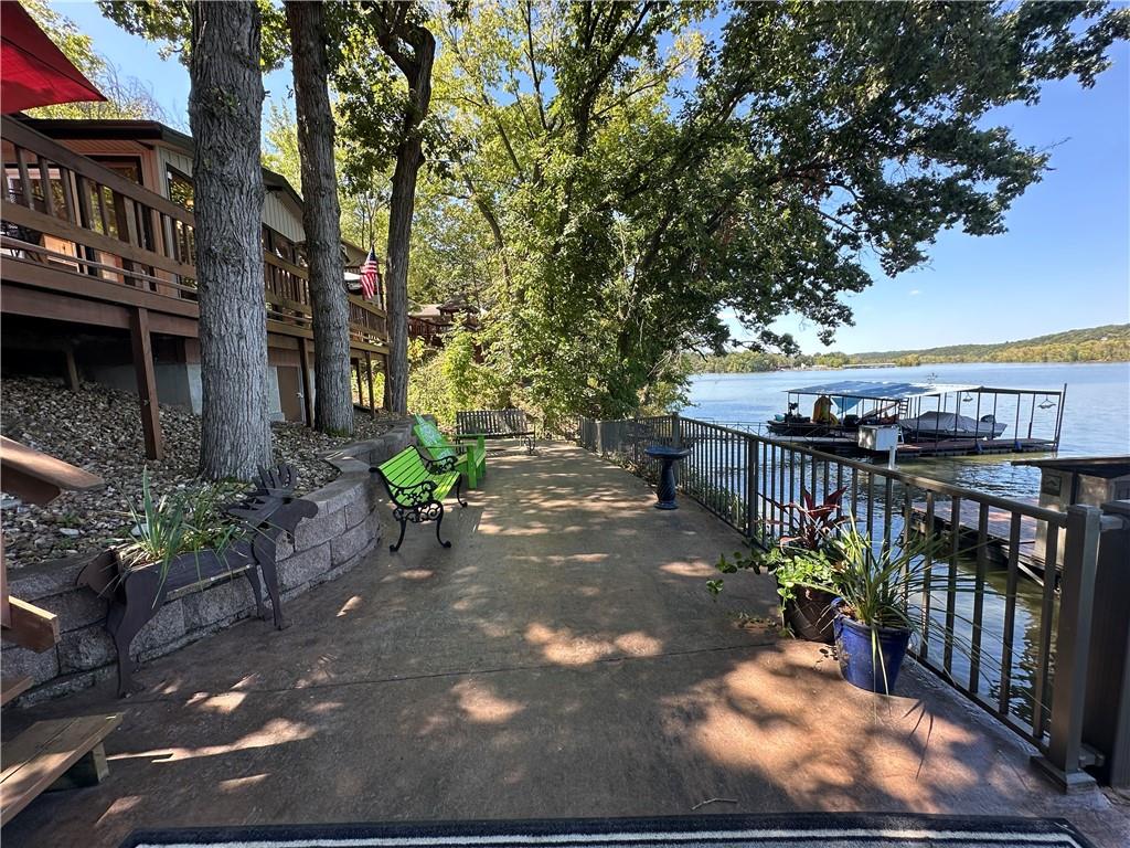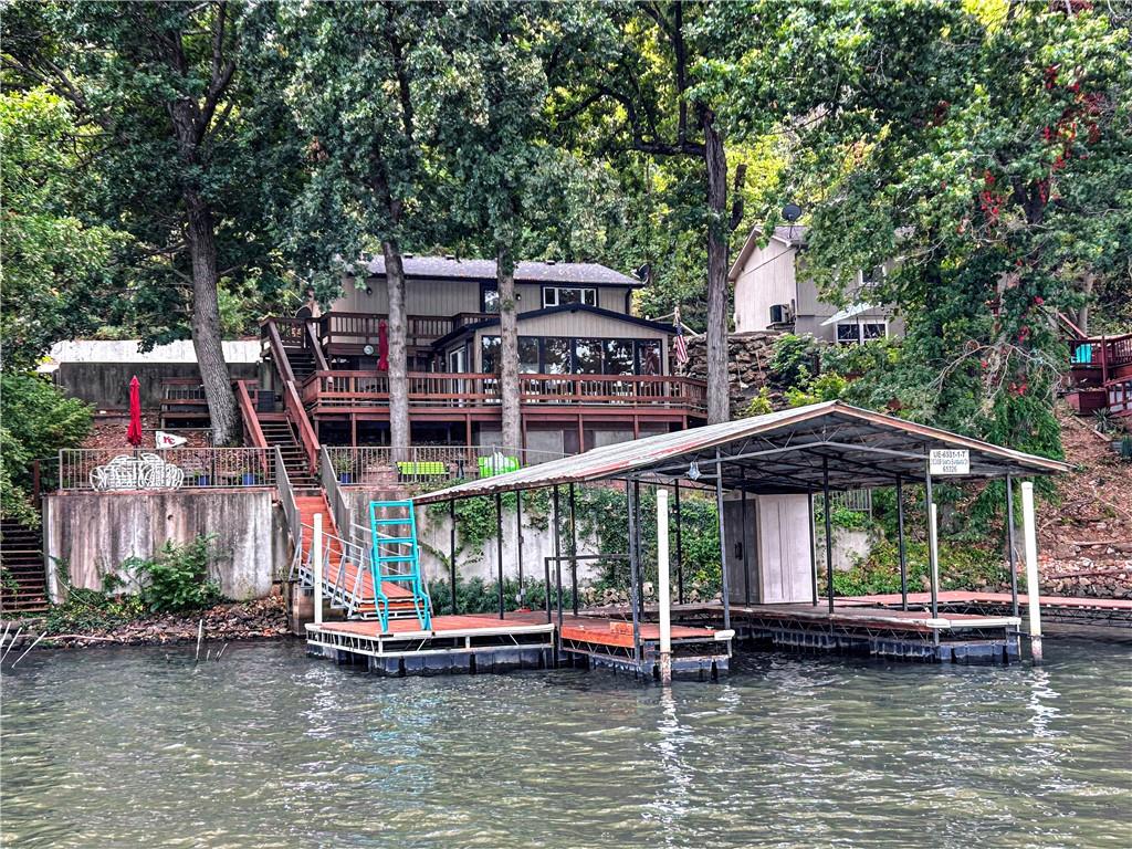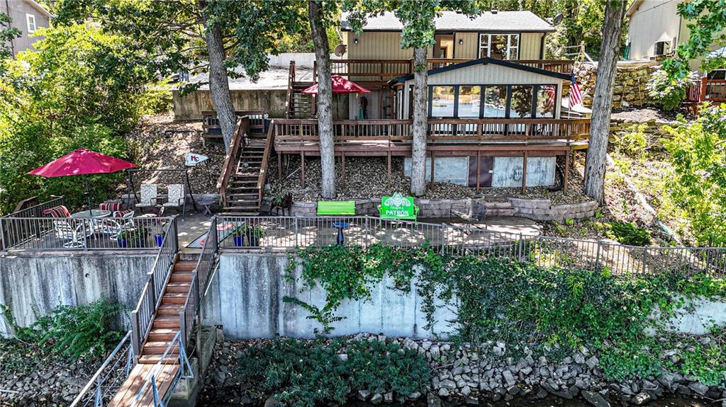 26309 Santa Barbara Dr., a lakefront getaway offering comfort, convenience, and stunning views on the 81 mile marker of the Lake of the Ozarks! This 3-bedroom, 2-bathroom home (with one non-conforming bedroom) features two levels designed for lake living. The main level includes a welcoming entry hall, living room, dining area, and a kitchen with all appliances included. The spacious master suite offers a private full bathroom and direct access to the upper deck—perfect for enjoying peaceful lake views. The lower level boasts two bedrooms, a full bathroom, storage/mechanical room, and a laundry room with washer, dryer, and water softener included. A large hallway leads to the sunroom, complete with a full wall of glass windows showcasing the water and a sliding glass door that opens to another deck. Step outside to the stamped concrete patio and walkway leading to your 2-slip partially covered dock with swim platform. Water depth averages about 8 ft. at full pool and 3 ft. during winter drawdown, with the option to extend the walkway for deeper water access. This home is designed for low maintenance with vinyl siding and exterior updates—giving you more time to relax and enjoy the lake. Parking is plentiful for guests, and you’ll love the convenience of nearby waterfront dining, local bars, and marinas. Just a couple of hours from downtown Kansas City, this lakefront home is ready for your year-round enjoyment or weekend escape!