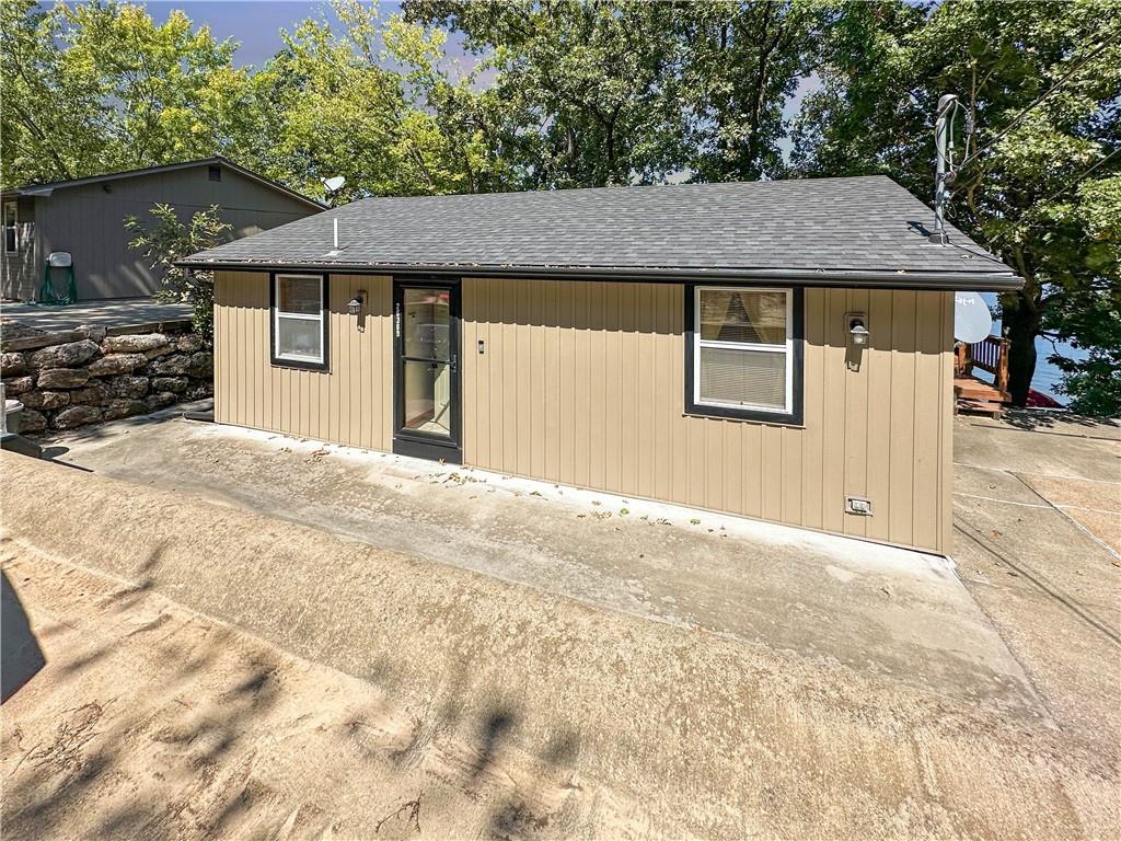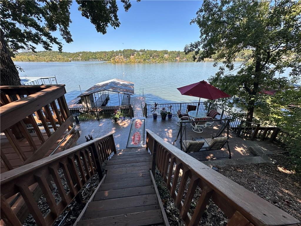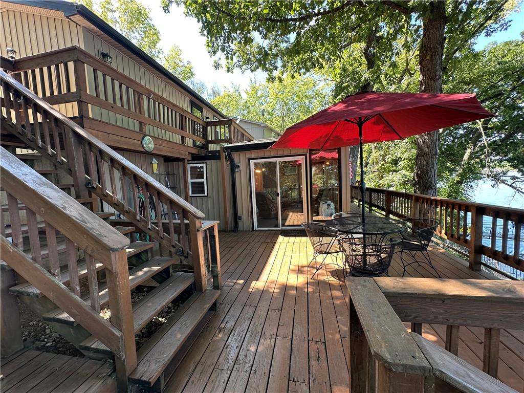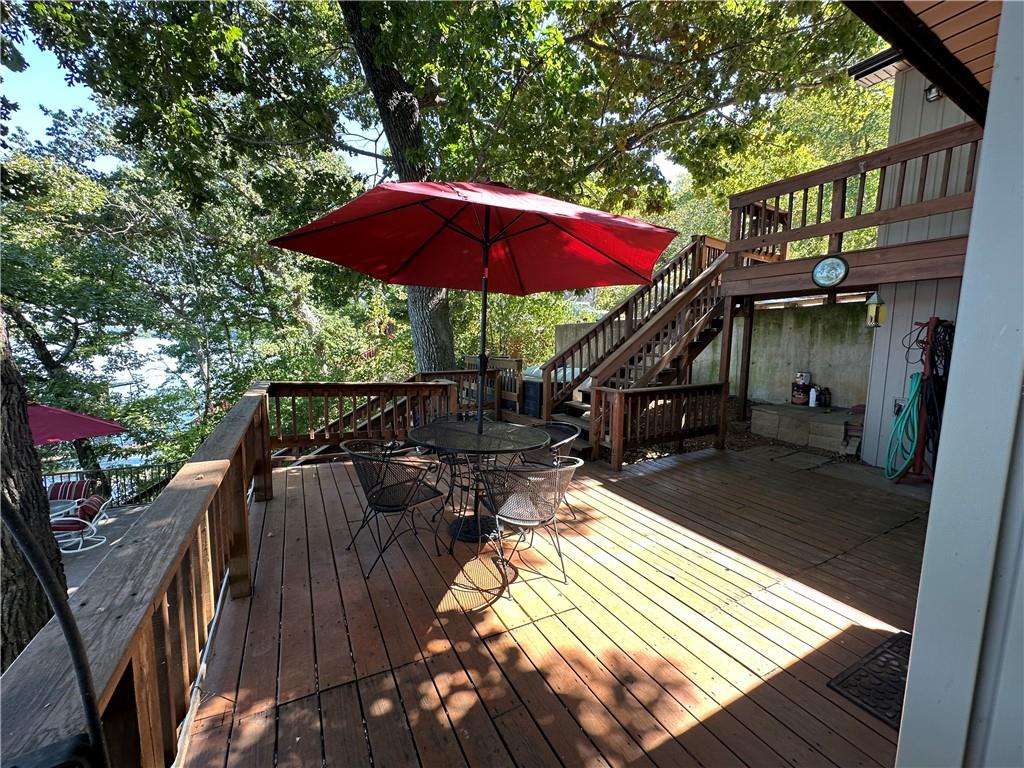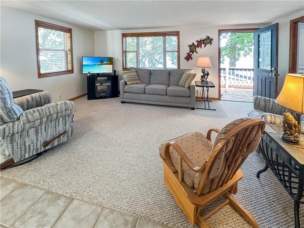 26309 Santa Barbara Dr., a lakefront getaway offering comfort, convenience, and stunning views on the 81 mile marker of the Lake of the Ozarks! This 3-bedroom, 2-bathroom home (with one non-conforming bedroom) features two levels designed for lake living. The main level includes a welcoming entry hall, living room, dining area, and a kitchen with all appliances included. The spacious master suite offers a private full bathroom and direct access to the upper deck—perfect for enjoying peaceful lake views. The lower level boasts two bedrooms, a full bathroom, storage/mechanical room, and a laundry room with washer, dryer, and water softener included. A large hallway leads to the sunroom, complete with a full wall of glass windows showcasing the water and a sliding glass door that opens to another deck. Step outside to the stamped concrete patio and walkway leading to your 2-slip partially covered dock with swim platform. Water depth averages about 8 ft. at full pool and 3 ft. during winter drawdown, with the option to extend the walkway for deeper water access. This home is designed for low maintenance with vinyl siding and exterior updates—giving you more time to relax and enjoy the lake. Parking is plentiful for guests, and you’ll love the convenience of nearby waterfront dining, local bars, and marinas. Just a couple of hours from downtown Kansas City, this lakefront home is ready for your year-round enjoyment or weekend escape!