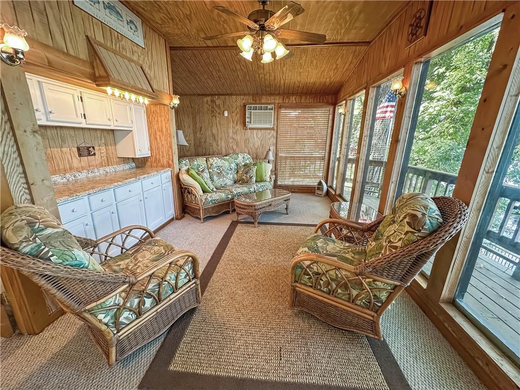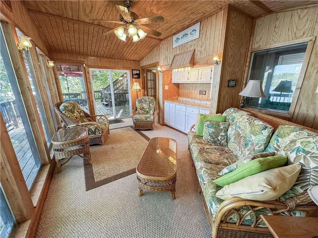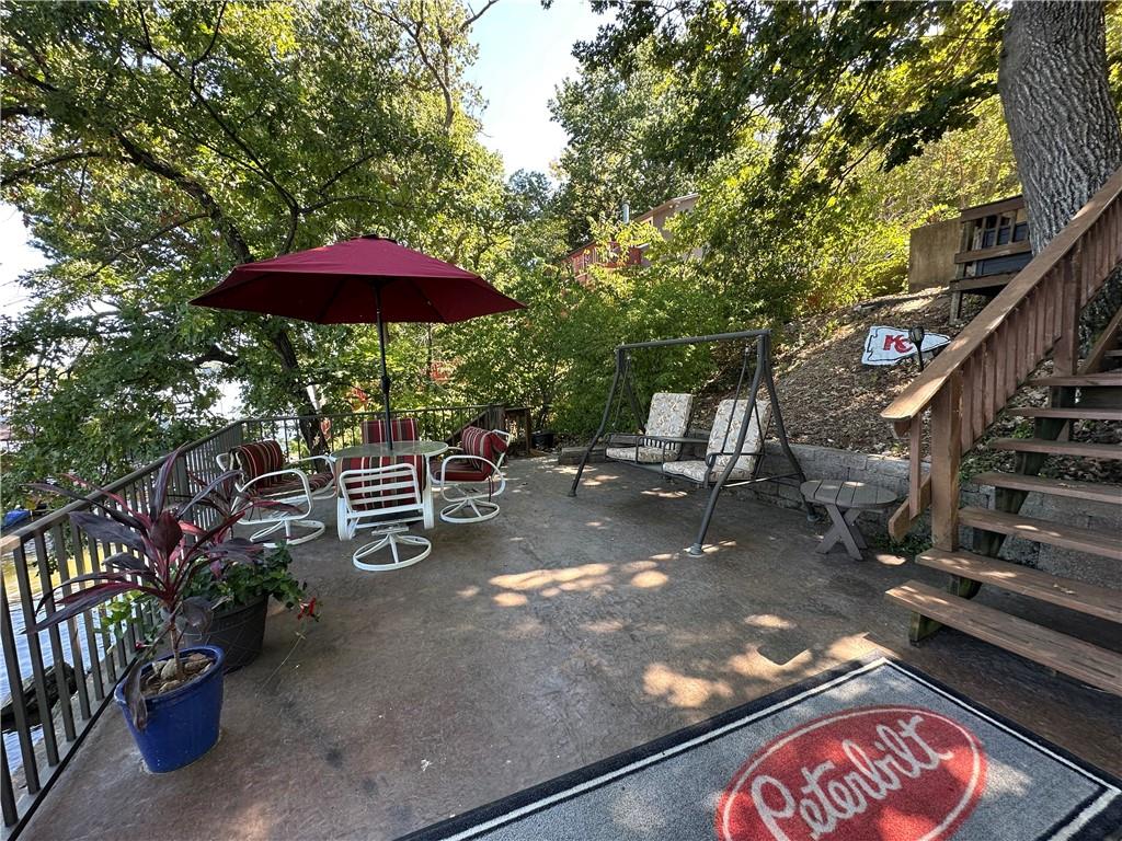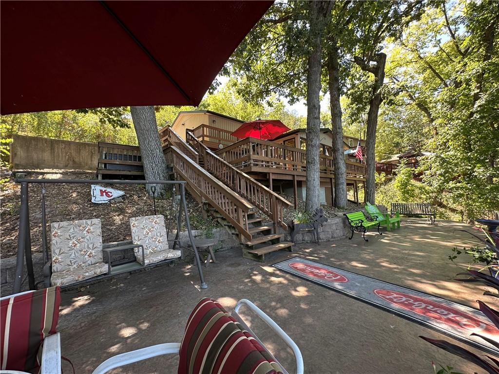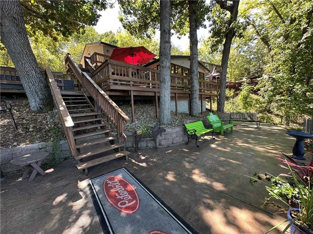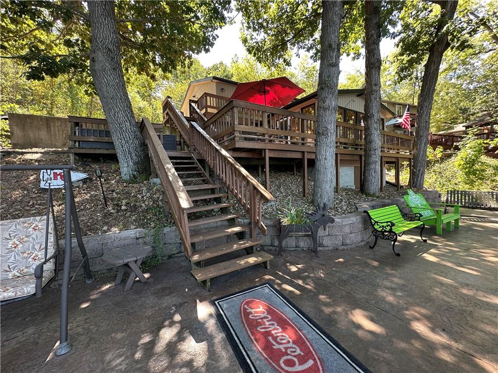 26309 Santa Barbara Dr., a lakefront getaway offering comfort, convenience, and stunning views on the 81 mile marker of the Lake of the Ozarks! This 3-bedroom, 2-bathroom home (with one non-conforming bedroom) features two levels designed for lake living. The main level includes a welcoming entry hall, living room, dining area, and a kitchen with all appliances included. The spacious master suite offers a private full bathroom and direct access to the upper deck—perfect for enjoying peaceful lake views. The lower level boasts two bedrooms, a full bathroom, storage/mechanical room, and a laundry room with washer, dryer, and water softener included. A large hallway leads to the sunroom, complete with a full wall of glass windows showcasing the water and a sliding glass door that opens to another deck. Step outside to the stamped concrete patio and walkway leading to your 2-slip partially covered dock with swim platform. Water depth averages about 8 ft. at full pool and 3 ft. during winter drawdown, with the option to extend the walkway for deeper water access. This home is designed for low maintenance with vinyl siding and exterior updates—giving you more time to relax and enjoy the lake. Parking is plentiful for guests, and you’ll love the convenience of nearby waterfront dining, local bars, and marinas. Just a couple of hours from downtown Kansas City, this lakefront home is ready for your year-round enjoyment or weekend escape!