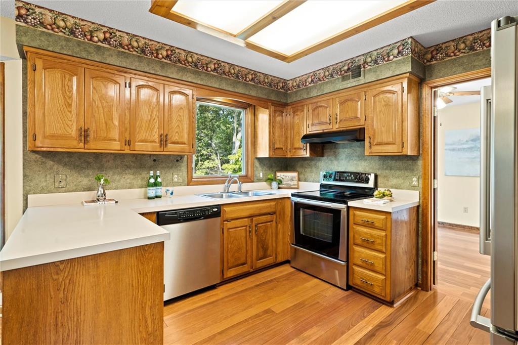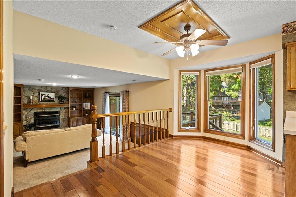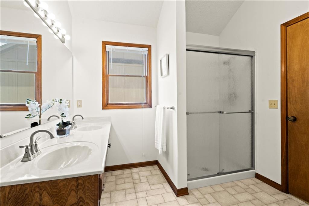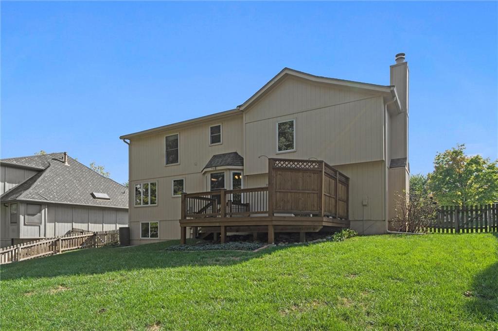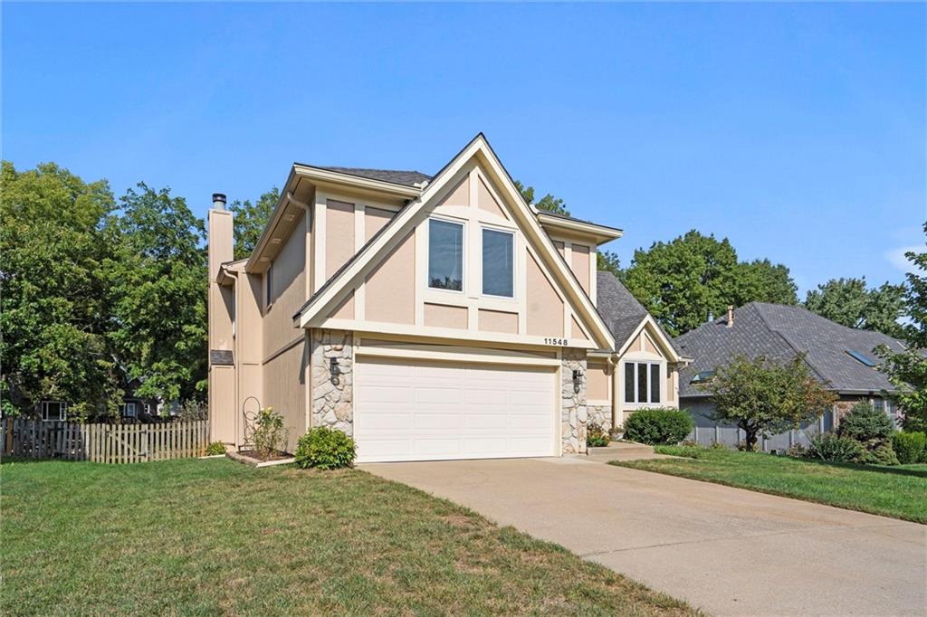 Welcome to this spacious and well-maintained two-story home offering 4 true bedrooms PLUS a non-conforming bonus room and a fully finished basement -- Perfect for extra living space, guests, or a home office! From the moment you step inside, you’re greeted by beautiful hardwood floors that flow room to room. The kitchen features pantry and stainless steel appliances, opening to the cozy living room with built-in shelves and a gas fireplace. Upstairs, you’ll love the oversized primary suite complete with a walk-in closet and a generous ensuite featuring a double vanity, soaking tub, and separate shower. Laundry is conveniently located on the bedroom level, along with built-in hallway shelving for added display. The finished basement offers a large rec room, full bath, built-in storage shelves, and a non-conforming room for flexible use. Bonus features include NEW roof, an updated HVAC, 50-gallon water heater, radon system, and quality Pella windows throughout. Step outside to a private backyard oasis with a large deck, roll-out sun shade, paved patio, and rain barrel for water conservation. All this located in award-winning Olathe Schools and NO HOA.. don’t miss this one!