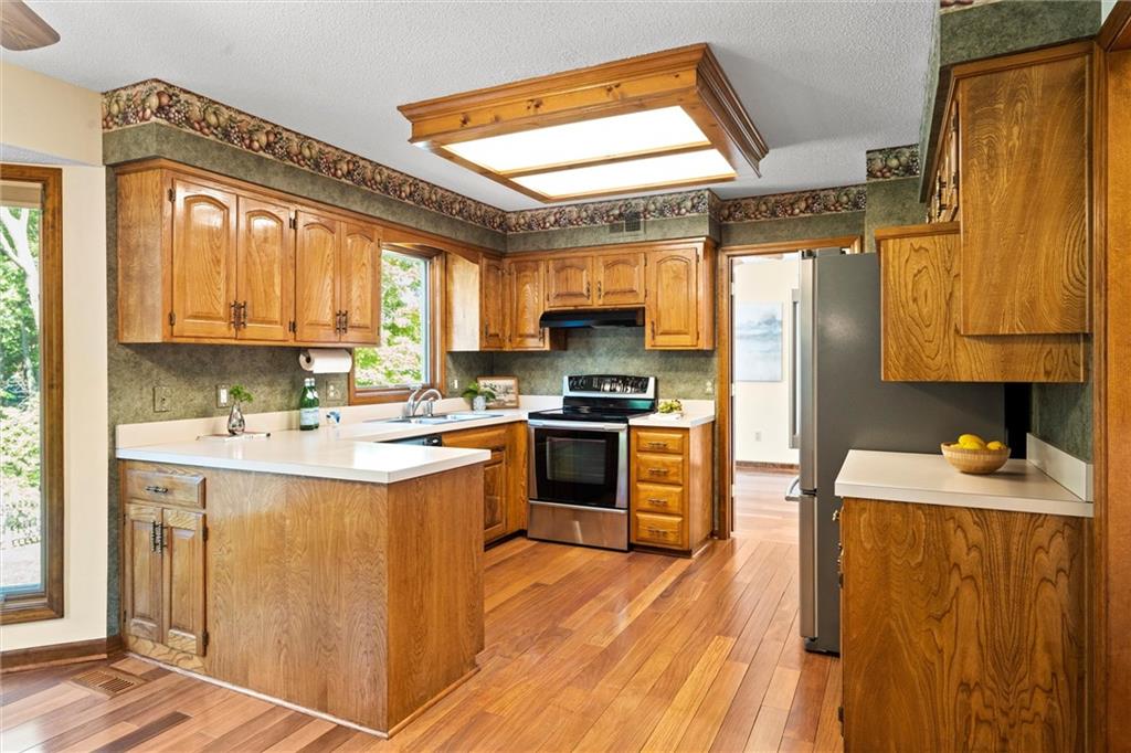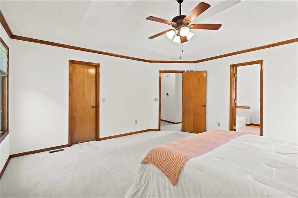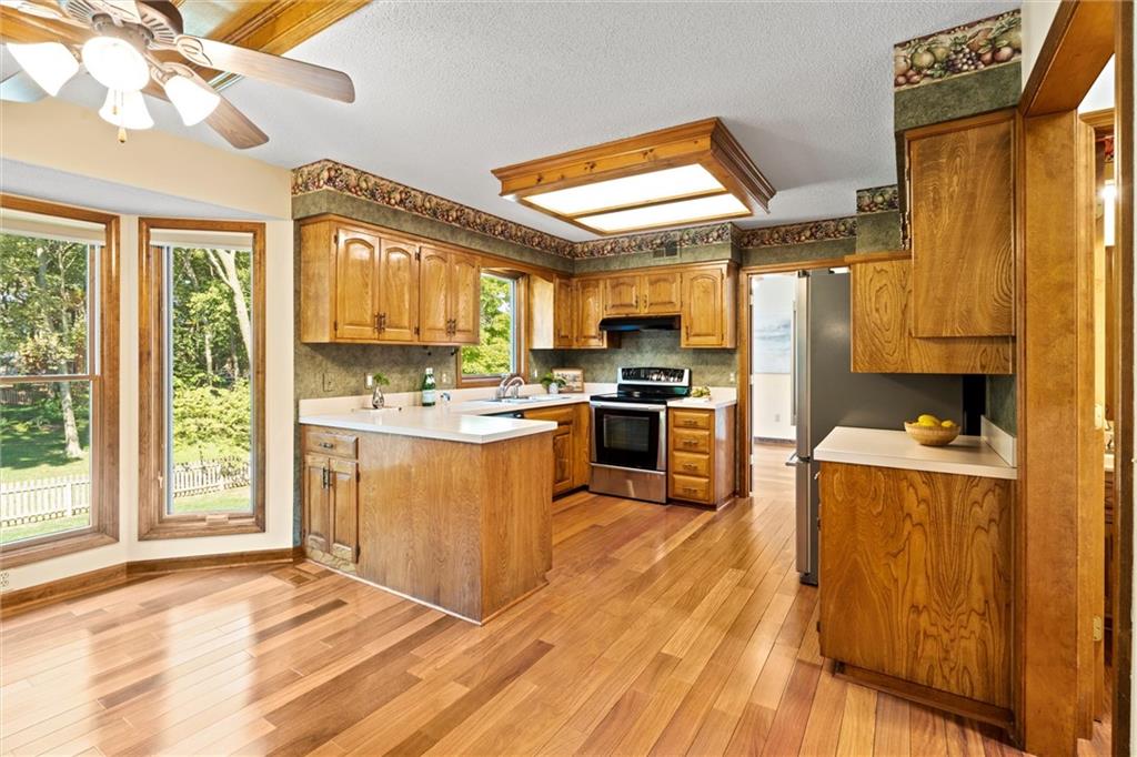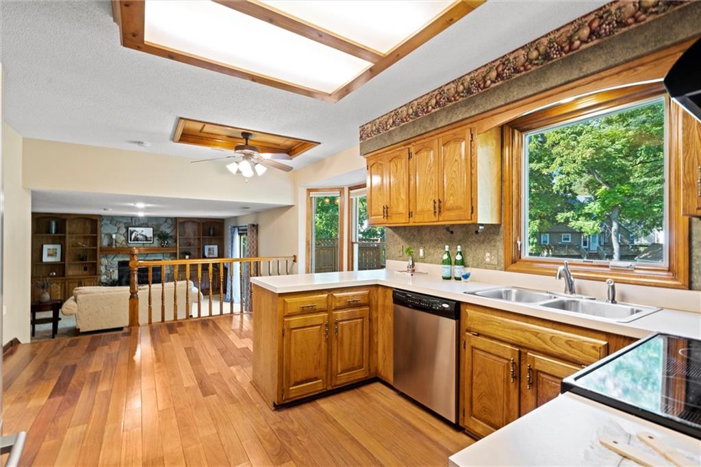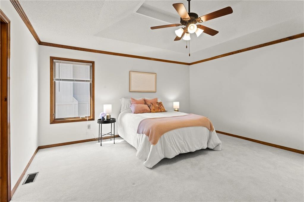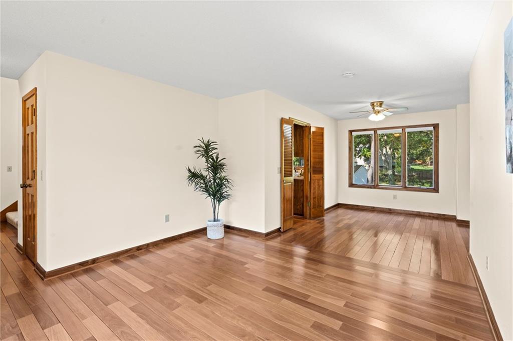 Welcome to this spacious and well-maintained two-story home offering 4 true bedrooms PLUS a non-conforming bonus room and a fully finished basement -- Perfect for extra living space, guests, or a home office! From the moment you step inside, you’re greeted by beautiful hardwood floors that flow room to room. The kitchen features pantry and stainless steel appliances, opening to the cozy living room with built-in shelves and a gas fireplace. Upstairs, you’ll love the oversized primary suite complete with a walk-in closet and a generous ensuite featuring a double vanity, soaking tub, and separate shower. Laundry is conveniently located on the bedroom level, along with built-in hallway shelving for added display. The finished basement offers a large rec room, full bath, built-in storage shelves, and a non-conforming room for flexible use. Bonus features include NEW roof, an updated HVAC, 50-gallon water heater, radon system, and quality Pella windows throughout. Step outside to a private backyard oasis with a large deck, roll-out sun shade, paved patio, and rain barrel for water conservation. All this located in award-winning Olathe Schools and NO HOA.. don’t miss this one!