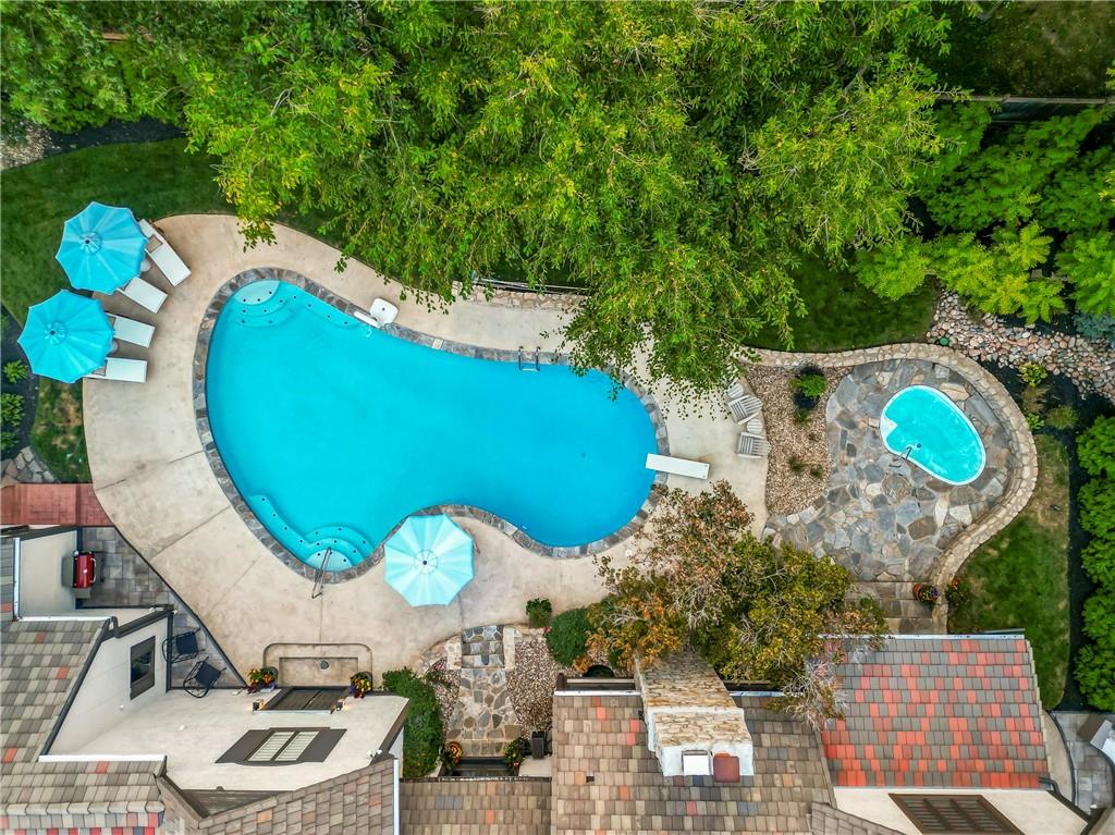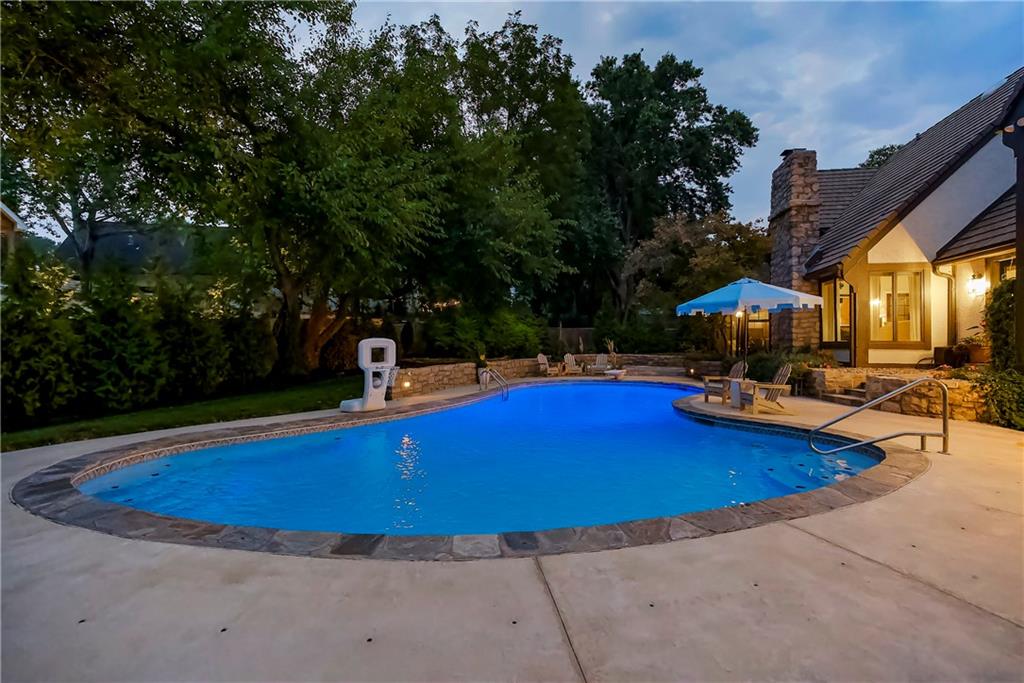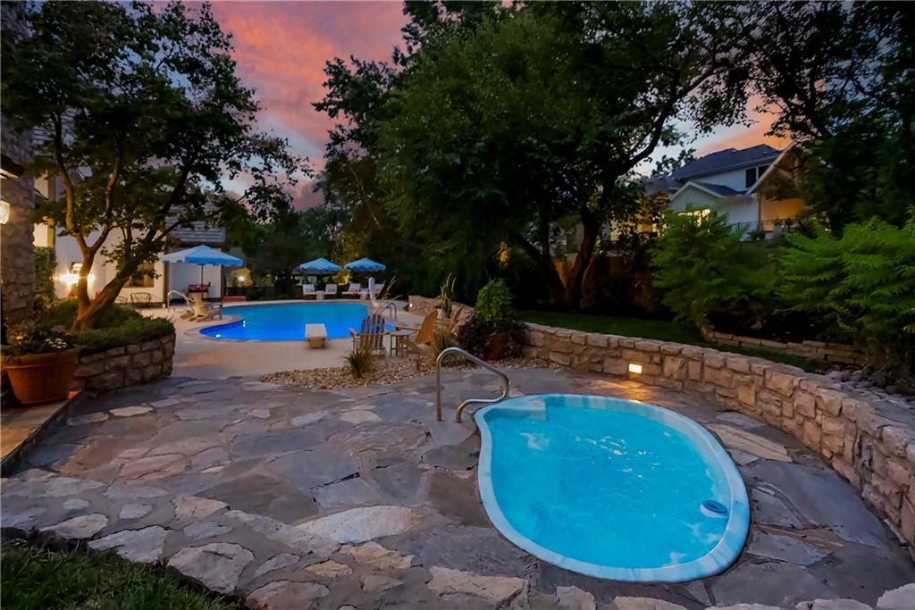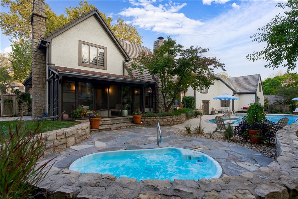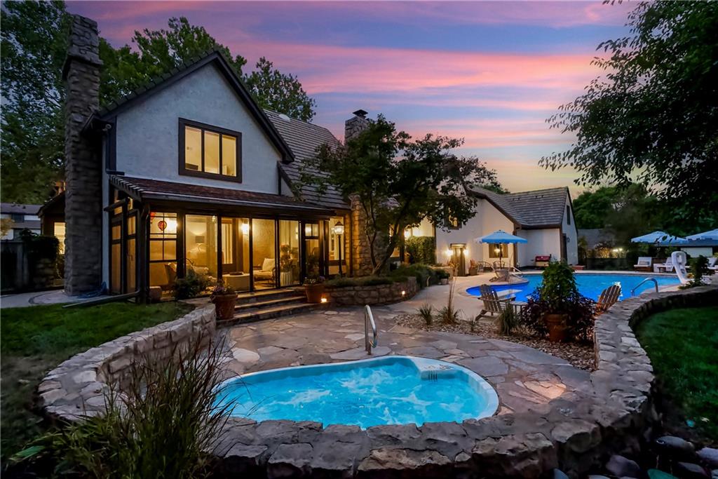 Recently Remodeled 1.5-Story Estate on a Private Cul-de-Sac Lot — 5-Car Tandem Garage, Pool & Hot Tub, Just steps from Franklin Park, Meadowbrook & top-rated Shawnee Mission East schools, this extraordinary estate has been fully reimagined with high-end finishes and thoughtful upgrades throughout. Situated on a sprawling cul-de-sac lot with a circle drive, the property features a sparkling pool, a built-in hot tub, and incredible outdoor living spaces designed for both entertaining and everyday relaxation. A newly added California-stacking all-season screened-in patio completes this private retreat. Inside, no detail has been overlooked. Gorgeous wood floors flow throughout, leading to a show stopping kitchen showcasing a custom island, walk-in pantry, spacious eat-in area, extensive custom cabinetry, and top-of-the-line appliances. Designer lighting from Visual Comfort, Thomas O’Brien, and more, along with custom window treatments, add warmth and sophistication. Multiple marbles, quartz, and solid stone finishes, hidden storage cubbies, and thoughtful design touches elevate every space. This home is equipped for comfort and convenience with 4 HVAC units, 3 hot water heaters, a central vacuum, and 3 separate laundry areas (primary suite, second floor, & lower level). The remodeled lower level offers an office, living room, rec room, wet bar, home theater & storage. Additional upgrades include LVP flooring, surround sound with amps, and a dry basement waterproofing system with a lifetime warranty (2025). Major improvements include a fully serviced tile roof that’s been acid-washed, new chimney caps, new rear 6-ft privacy fence (2025), enhanced landscaping for privacy, new patio pavers, French drain system, upgraded sump pump with battery backup (2025), Halo Water Filtration System, new water pressure regulator, updated irrigation zones, and a custom ADT security system with cameras, doorbell, smart home integration, and epoxied garage floors. This is a must see!