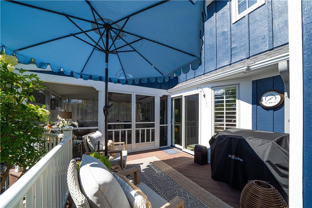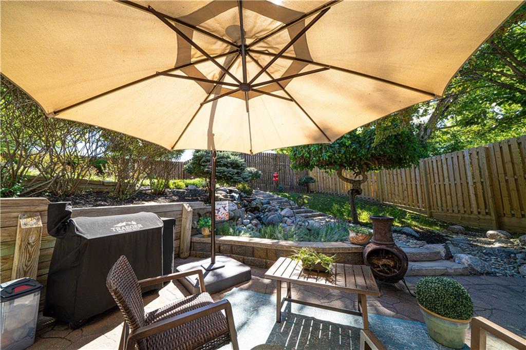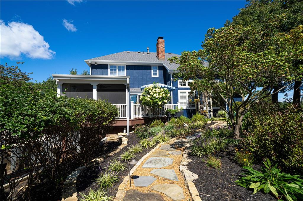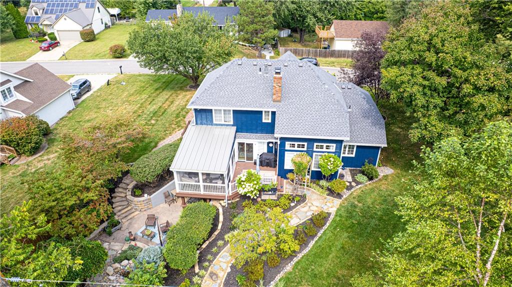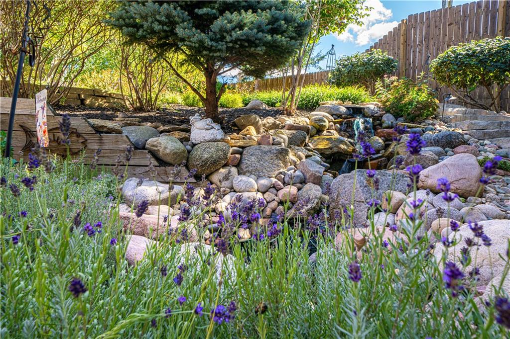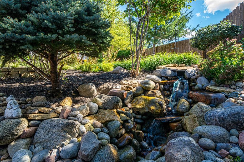Welcome to this beautiful 5-bedroom, 3.5-bath home (4 conforming bedrooms plus a non-conforming in the basement), perfectly situated on a spacious corner lot that includes 2 lots, totaling .88 acres. From the moment you arrive, you’ll appreciate the thoughtful details, including elegant plantation shutters throughout and a see-through fireplace that adds warmth and charm to both living spaces. The main floor features a private master suite, complete with a luxurious bathroom highlighted by a color therapy jet tub—your own spa-like retreat designed for relaxation and wellness. Outdoors, the property feels like your own private haven. Meander through the vibrant perennial gardens that bloom year after year and follow the path to the tranquil waterfall—an inviting spot to gather with family and friends. The pavilion, set on its own 1/2-acre lot, is complete with a bar, treed backdrop, and ample seating, making it the perfect setting for entertaining, from lively summer cookouts to cozy fall evenings. Inside, the home offers comfort, style, and function. The kitchen opens to a 3-season room, where you can enjoy your morning coffee this fall while overlooking the backyard. A brand-new wine and coffee bar adds a modern touch, while the in-house Sonos system ensures rich, whole-home sound during gatherings. Rings are negotiable, adding even more convenience and peace of mind for the next owner. The walk-out basement is designed for relaxation and fun, featuring a built-in bar, generous entertaining space, and a non-conforming 5th bedroom—perfect for guests, a home office, gym, or hobby room. With direct access to the backyard, this level is an effortless extension of the home’s living areas. Upstairs, you’ll find large bedrooms, each with walk-in closets that provide both comfort and convenience. Thoughtfully designed and beautifully maintained, this home blends everyday functionality with special spaces for entertaining and enjoying life’s moments. Builder-Don Clark.