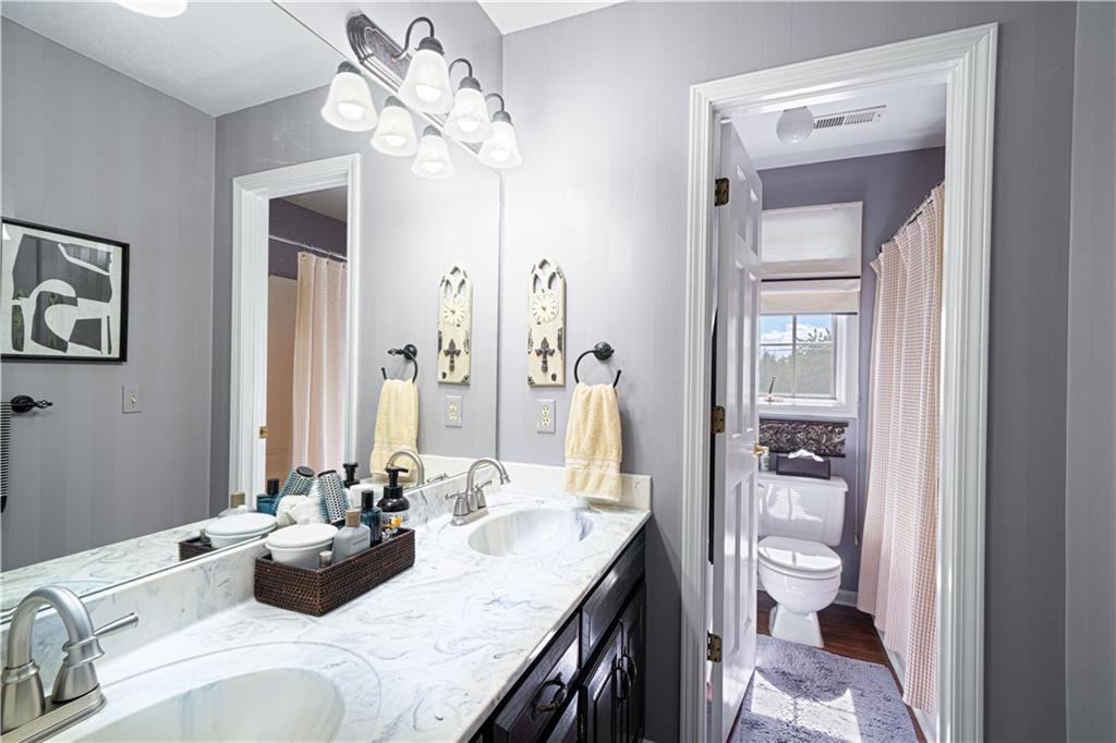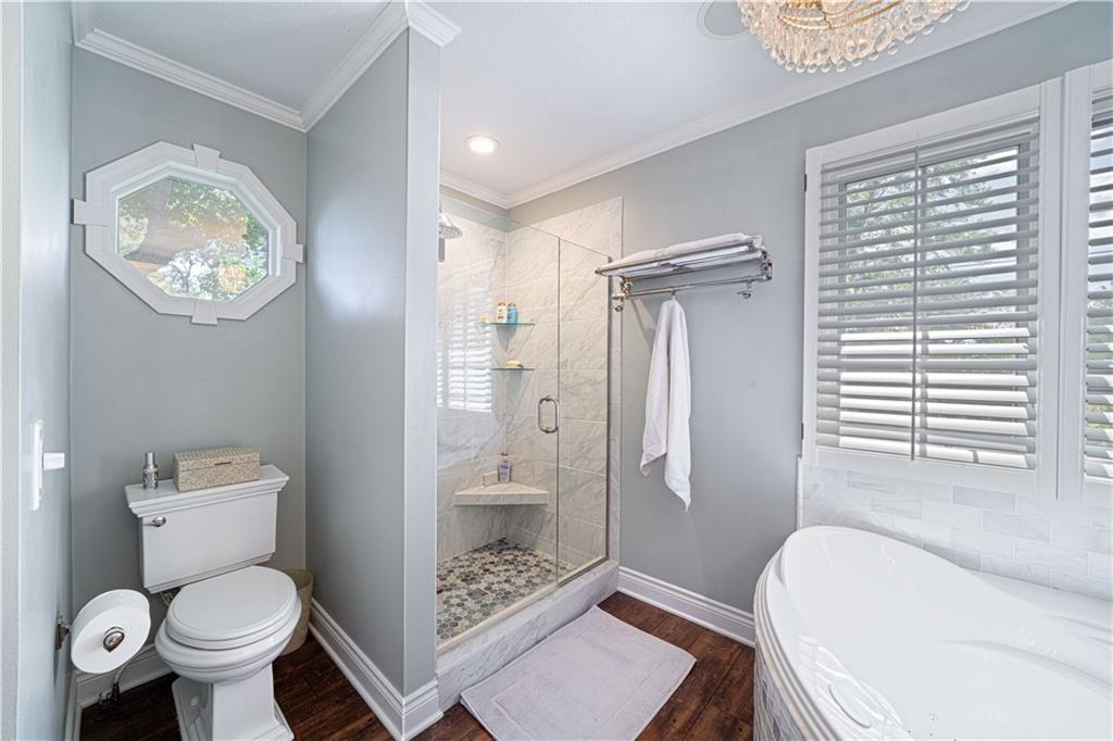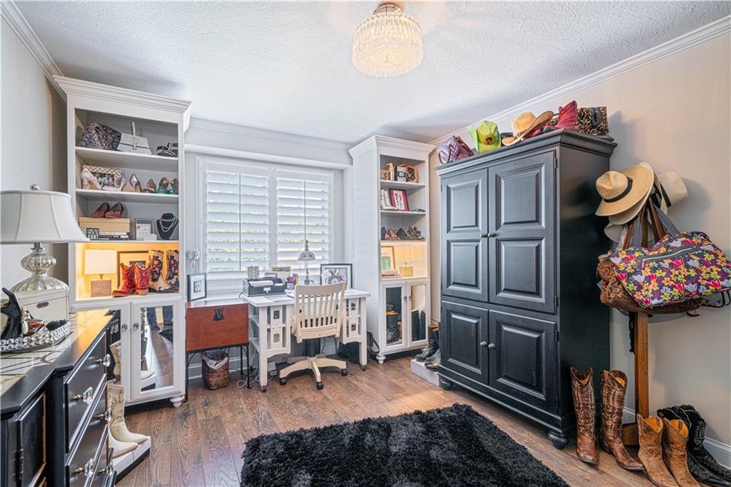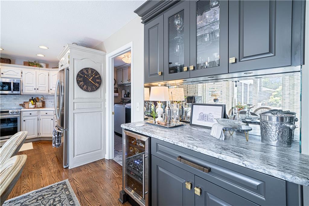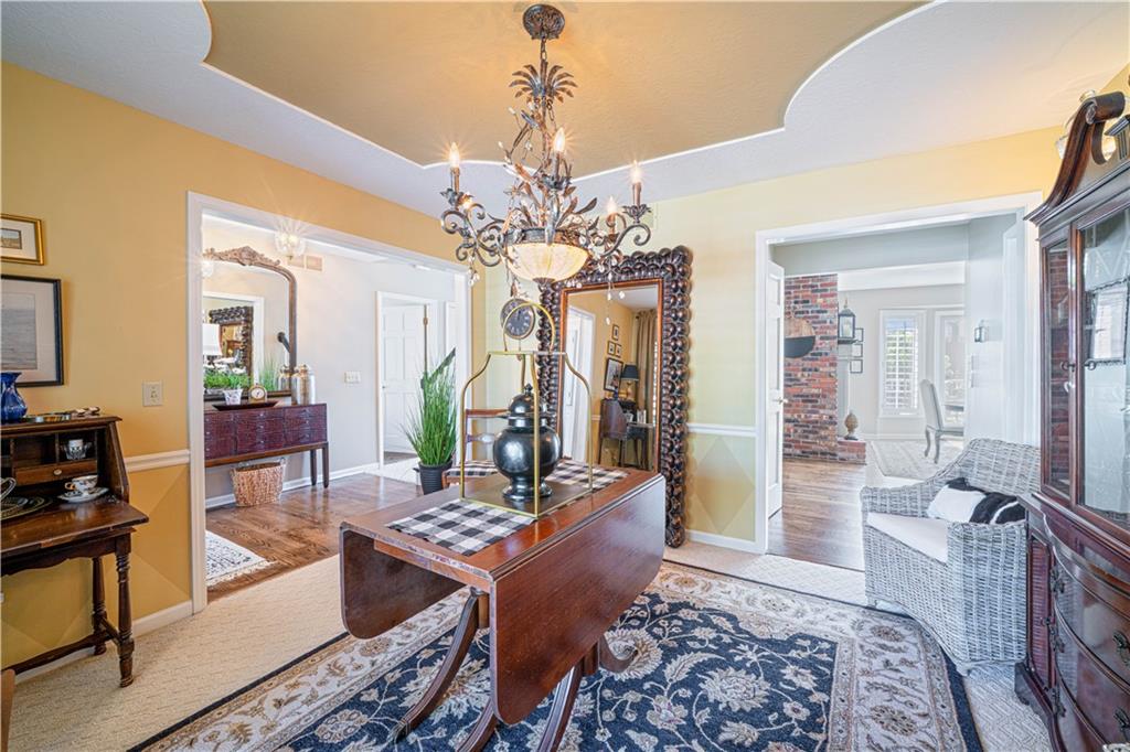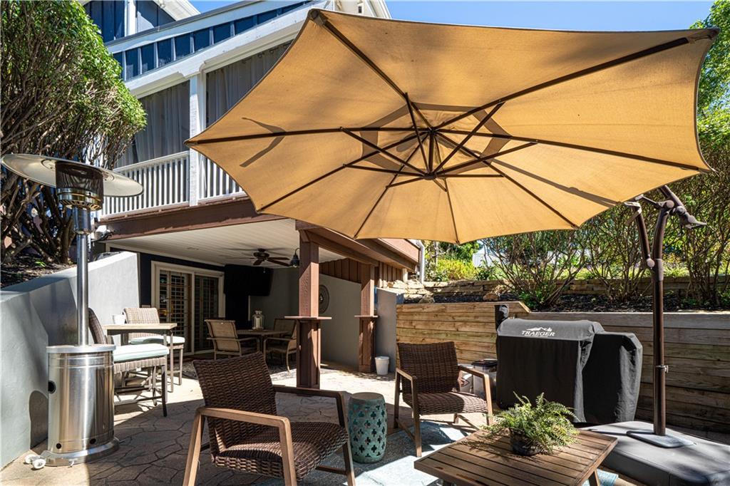 Welcome to this beautiful 5-bedroom, 3.5-bath home (4 conforming bedrooms plus a non-conforming in the basement), perfectly situated on a spacious corner lot that includes 2 lots, totaling .88 acres. From the moment you arrive, you’ll appreciate the thoughtful details, including elegant plantation shutters throughout and a see-through fireplace that adds warmth and charm to both living spaces. The main floor features a private master suite, complete with a luxurious bathroom highlighted by a color therapy jet tub—your own spa-like retreat designed for relaxation and wellness. Outdoors, the property feels like your own private haven. Meander through the vibrant perennial gardens that bloom year after year and follow the path to the tranquil waterfall—an inviting spot to gather with family and friends. The pavilion, set on its own 1/2-acre lot, is complete with a bar, treed backdrop, and ample seating, making it the perfect setting for entertaining, from lively summer cookouts to cozy fall evenings. Inside, the home offers comfort, style, and function. The kitchen opens to a 3-season room, where you can enjoy your morning coffee this fall while overlooking the backyard. A brand-new wine and coffee bar adds a modern touch, while the in-house Sonos system ensures rich, whole-home sound during gatherings. Rings are negotiable, adding even more convenience and peace of mind for the next owner. The walk-out basement is designed for relaxation and fun, featuring a built-in bar, generous entertaining space, and a non-conforming 5th bedroom—perfect for guests, a home office, gym, or hobby room. With direct access to the backyard, this level is an effortless extension of the home’s living areas. Upstairs, you’ll find large bedrooms, each with walk-in closets that provide both comfort and convenience. Thoughtfully designed and beautifully maintained, this home blends everyday functionality with special spaces for entertaining and enjoying life’s moments. Builder-Don Clark.