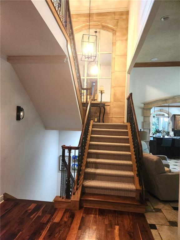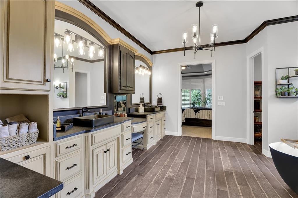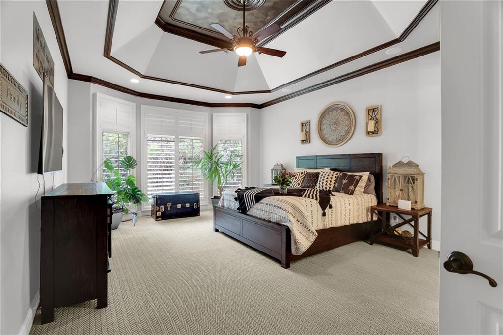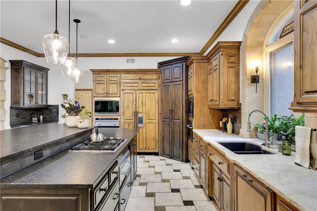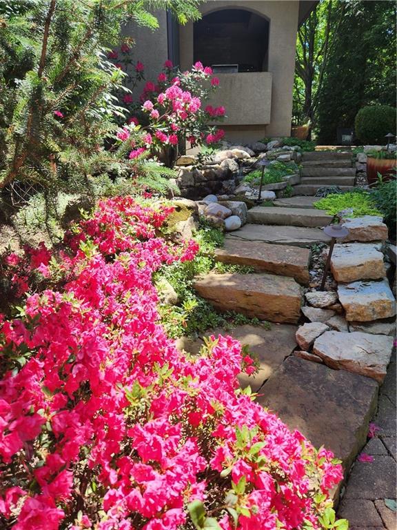If you're looking for a home with great indoor & outdoor entertaining spaces, look no further. This spacious home has numerous places to host large or small gatherings inside with fireplaces in living & family rooms, and office/parlor/den on both the upper & main levels as well as a large bar/game room in the lower garden level. Other rooms include 5 bedrooms, all with walk-in closets(4 with en suites) and a dedicated exercise room and that's just the inside! Outside on the Lanai is another gas fireplace, wet bar, bar refrigerator, built-in grill and a radiant heater that will keep you warm even in the cold days of winter. The waterfall walks you down from the upper level to the lower patio which includes another fireplace that is wood burning. The kitchen is equipped with a large pantry, a gas cooktop, 2 ovens, a cappuccino maker, a vegetable steamer and a warming drawer. There are two laundry options, one upstairs and the other in the master on the main level. The lower-level bath has a steam shower for after those hard workouts. Take the time to see this wonderful property with extensive landscaping on a 1/2 acre lot that gives you privacy you can appreciate in the highly desirable Highlands Creek neighborhood, you will not be disappointed!