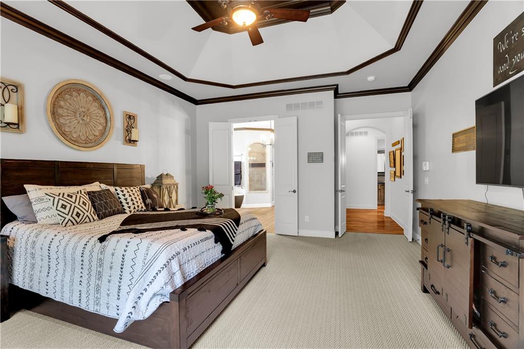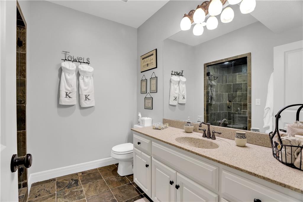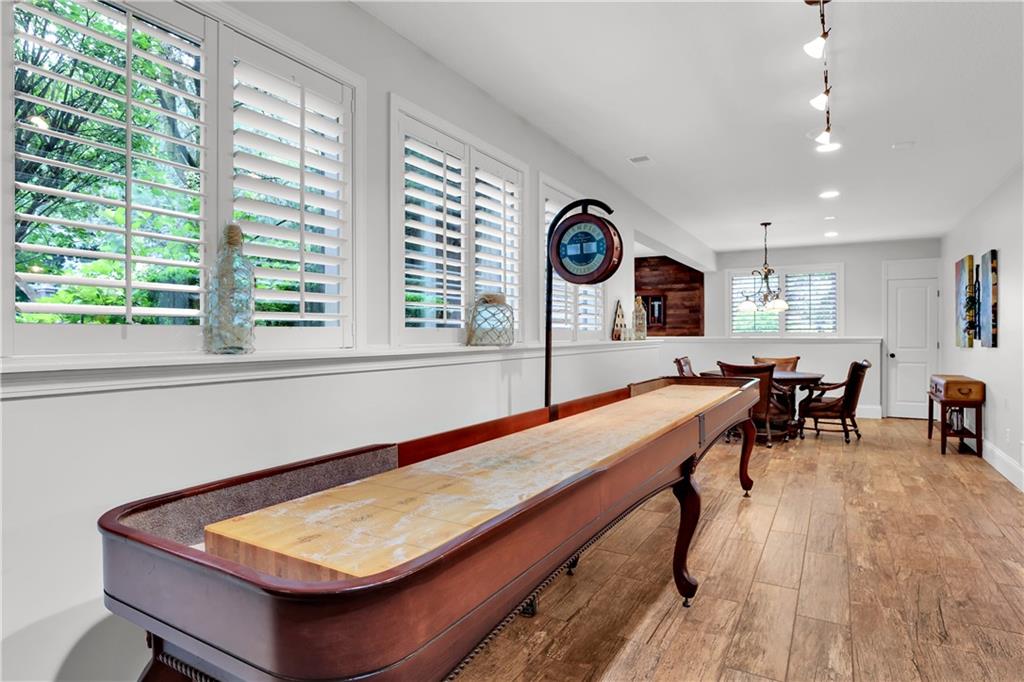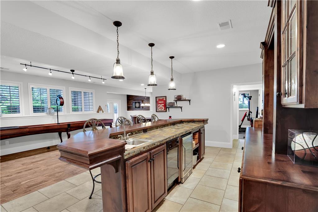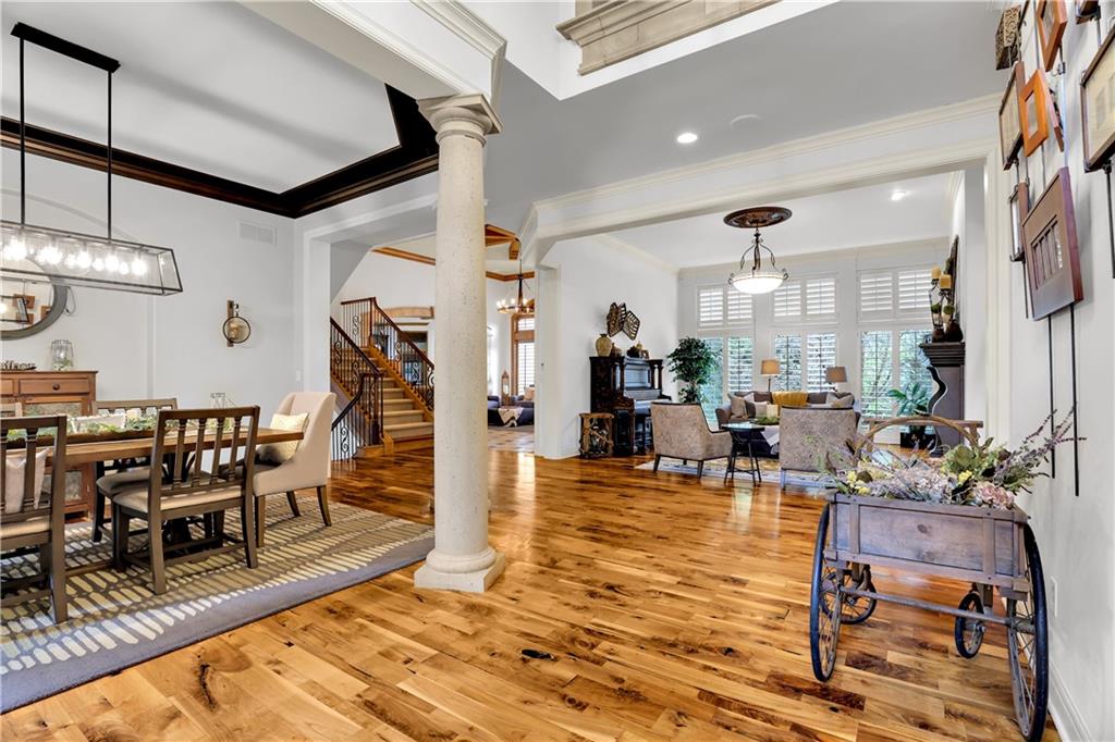 If you're looking for a home with great indoor & outdoor entertaining spaces, look no further. This spacious home has numerous places to host large or small gatherings inside with fireplaces in living & family rooms, and office/parlor/den on both the upper & main levels as well as a large bar/game room in the lower garden level. Other rooms include 5 bedrooms, all with walk-in closets(4 with en suites) and a dedicated exercise room and that's just the inside! Outside on the Lanai is another gas fireplace, wet bar, bar refrigerator, built-in grill and a radiant heater that will keep you warm even in the cold days of winter. The waterfall walks you down from the upper level to the lower patio which includes another fireplace that is wood burning. The kitchen is equipped with a large pantry, a gas cooktop, 2 ovens, a cappuccino maker, a vegetable steamer and a warming drawer. There are two laundry options, one upstairs and the other in the master on the main level. The lower-level bath has a steam shower for after those hard workouts. Take the time to see this wonderful property with extensive landscaping on a 1/2 acre lot that gives you privacy you can appreciate in the highly desirable Highlands Creek neighborhood, you will not be disappointed!