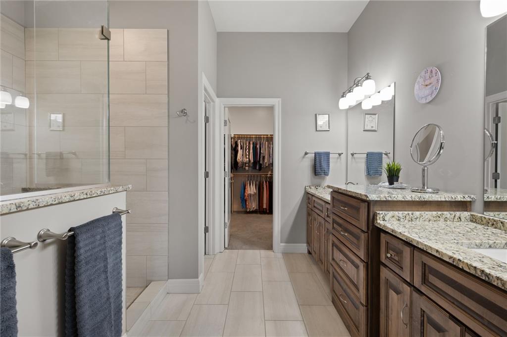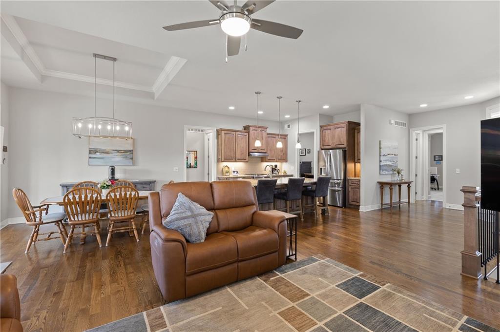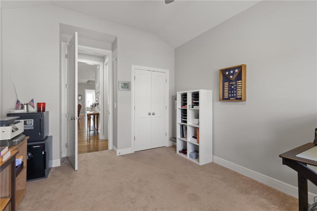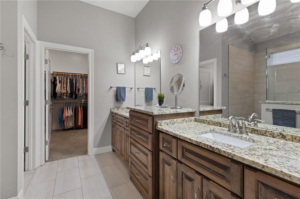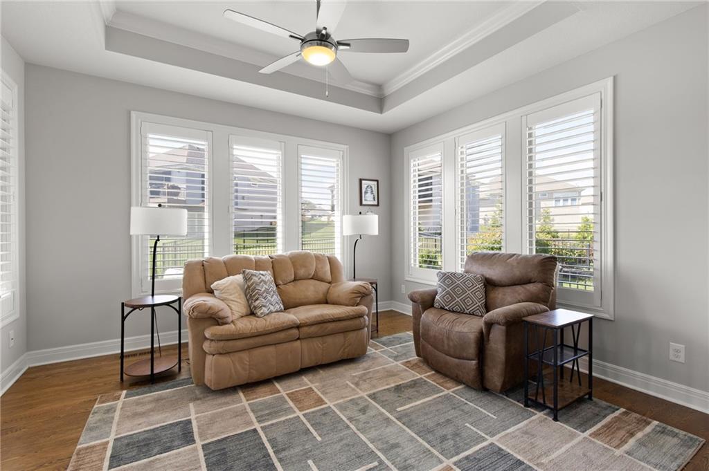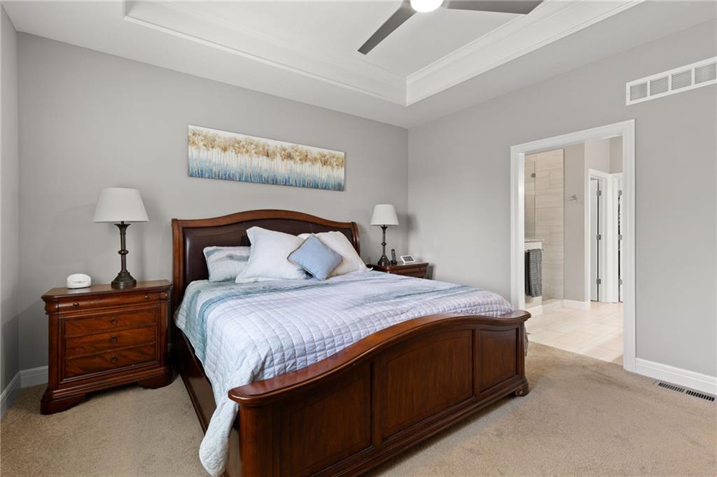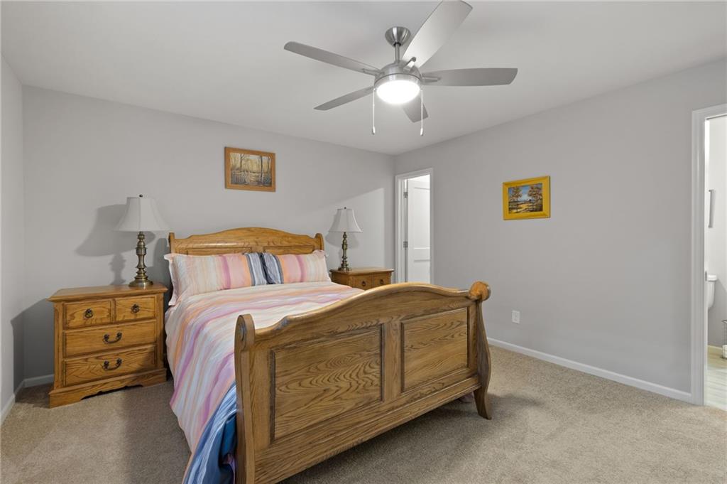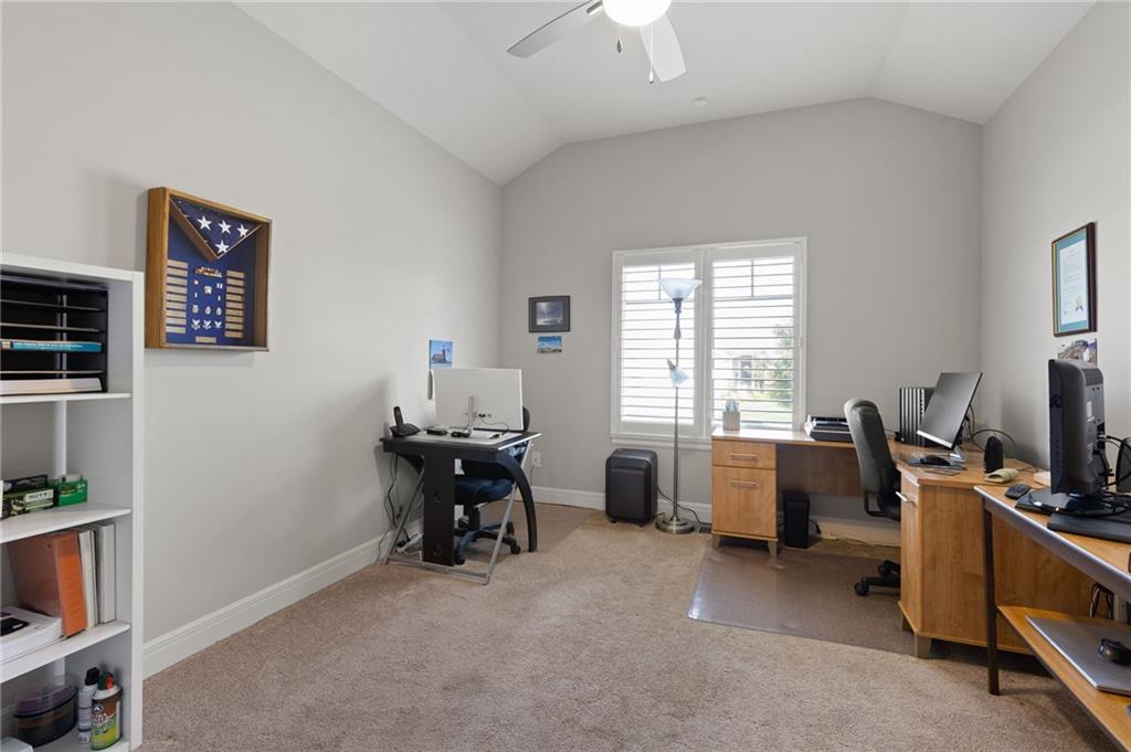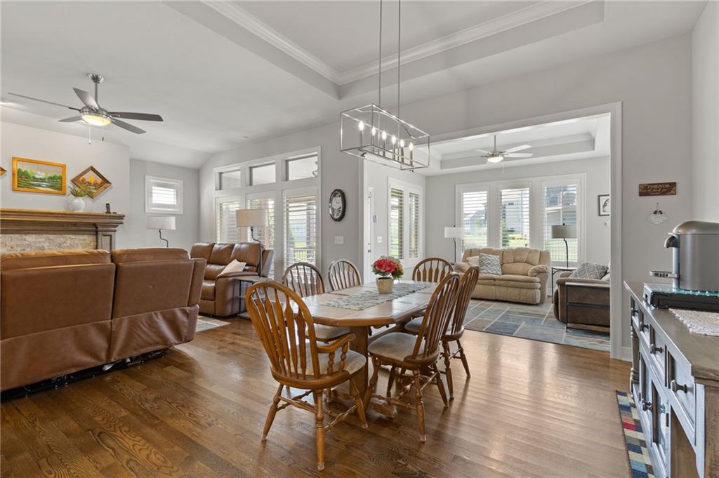 Nearly new patio villa in sought-after Solera Reserve offers maintenance-provided living in a friendly, walkable neighborhood with lush, green, manicured lawns and beautiful landscaping. The inviting stucco exterior with stone ledge accents and cedar shutters set the tone as you step onto the covered front porch and through the angled full glass storm door onto hardwood floors that extend through the hallway and main living areas. Plantation shutters provide timeless character throughout the main level. A vaulted second bedroom and nearby full bath with granite counters, tile flooring, and shower/tub combo are perfect for guests or a home office. The open concept great room features hardwoods, a gas fireplace with stone surround, and large windows overlooking the covered, screened-in deck. The kitchen is a showstopper with a granite island and breakfast bar, stainless appliances including gas stove and refrigerator, vent hood, coffee bar, under-cabinet lighting, and walk-in pantry, with direct access to the laundry room. The sunny breakfast area opens to a four-season sunroom that flows to the screened-in deck, ideal for entertaining or quiet evenings at home. The primary suite boasts a stepped ceiling, ceiling fan, plush carpet, and spa-like bath with granite counters and oversized Euro shower, plus an expansive walk-in closet connecting to the laundry. The finished lower level includes a spacious rec room with granite wet bar, egress window, and two bedrooms, each with egress windows, along with a full bath. Extras include washer/dryer, sprinkler system, security system, radon mitigation, sump pump with battery backup, Sun Setter awning, tankless water heater, whole house water filter, and Generac generator. Enjoy a resort-style lifestyle with community pool, clubhouse, lawn care, trimming, snow removal, and sprinkler winterization included.