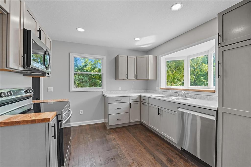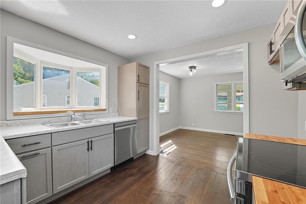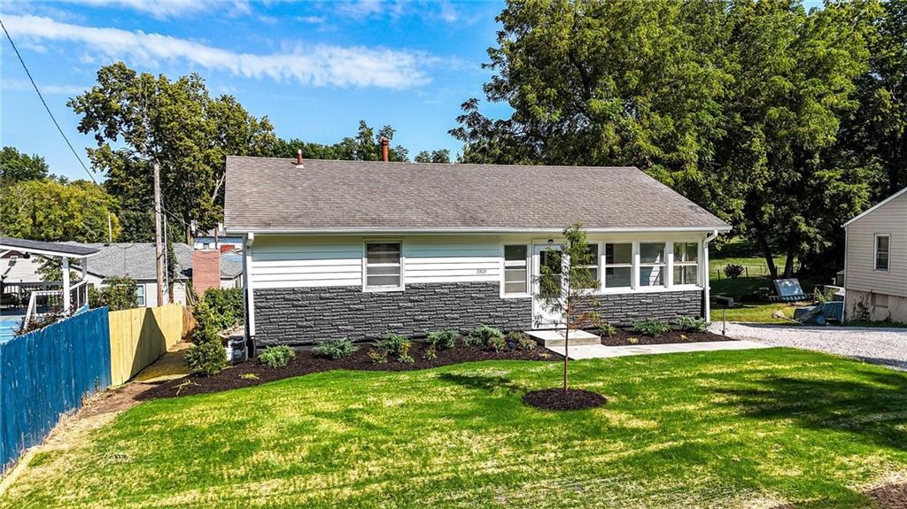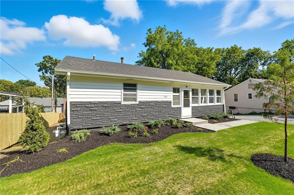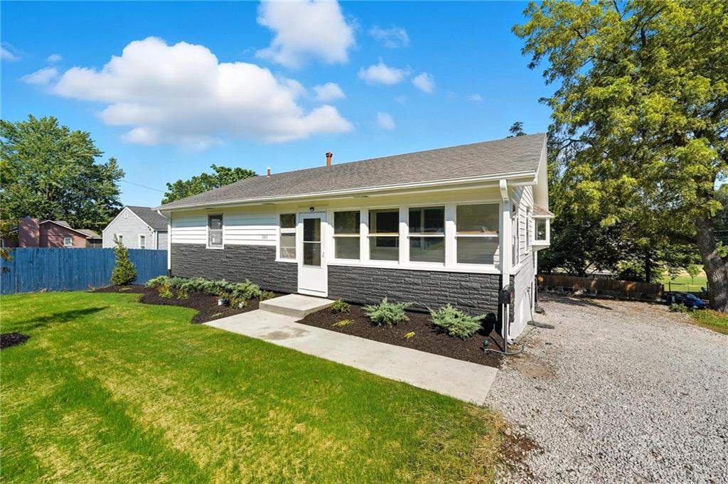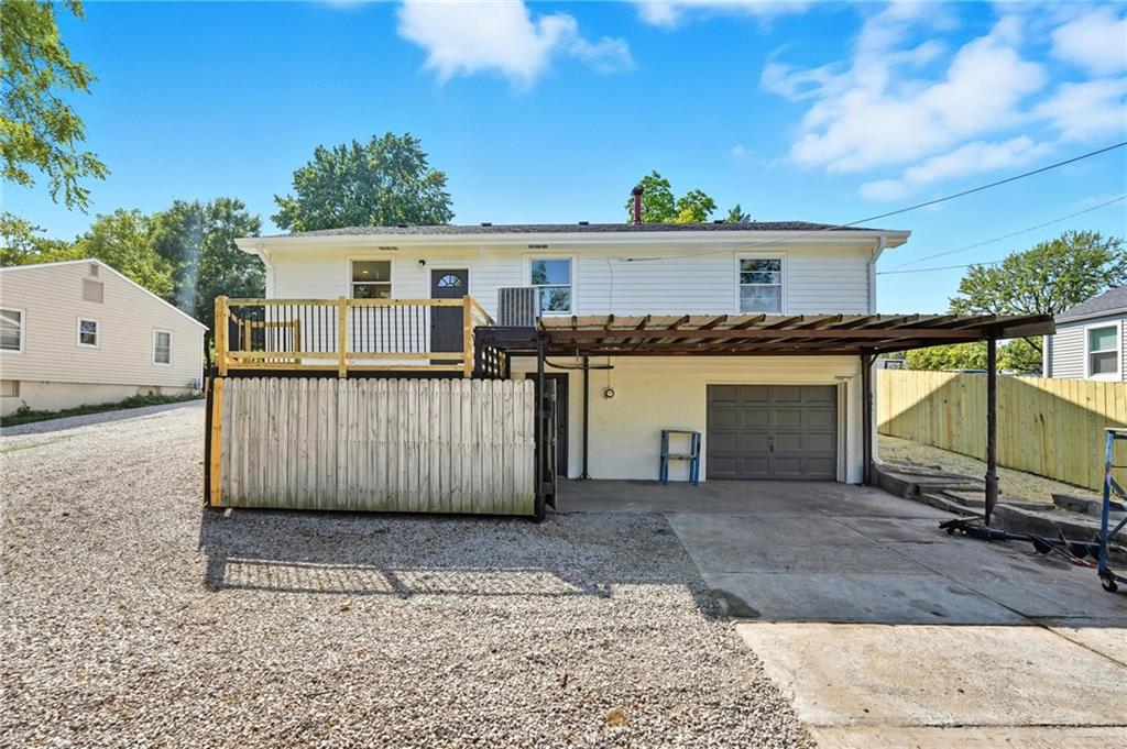Oh my goodness. This one has been redone from top to bottom and you WILL be impressed. Everything is new and has been done with great quality workmanship. The house is super cute from the outside with an enclosed porch on the front that could double as extra living space or a great place to just hang out!! The kitchen was gutted and has new cabinets, new appliances, new countertops, and it is super cute with windows for extra light. The main level has 3 bedrooms and 1 full bath, and of course that was gutted and brand new as well! The lower level had never been finished before, but the seller went in and added an egress window and a full bathroom to allow for an extra bedroom or living room extra entertaining space. The lower level is a walk out and has a rear entry garage. The unfinished area of the basement opens into the garage so that you have room for a workshop or easily a second car and motorcycle etc could fit in there. There is also an entrance from the outside that leads to the laundry room / mudroom with some storage. Having the rear entry garage is nice and allows for lots of parking if needed. There is a new updated deck on the back of the house and under the deck there is a covered area for extra storage too.(basically another whole carport area) You are going to want to see this one, it is a great home with so much to offer! **Up the street from Nativity School and close access to Royals and Chiefs Stadiums. Great neighborhood!