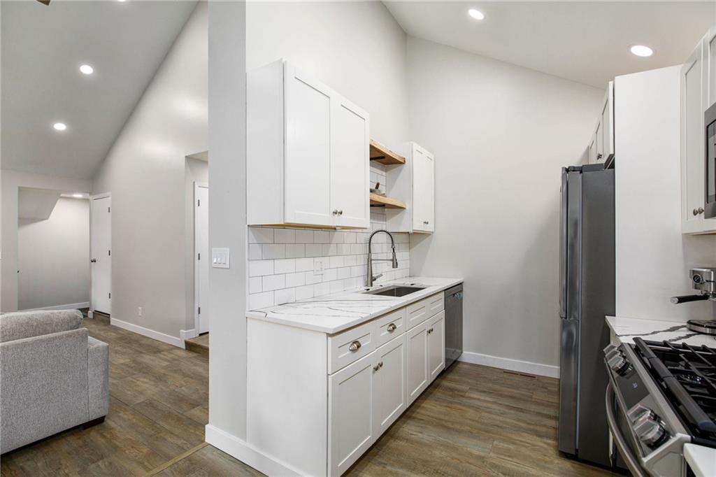 Enjoy the ease of one-level living in this beautifully updated home! The open floor plan of this end-unit townhome flows seamlessly. Updates include: new interior paint, flooring, lighting, windows, kitchen and bathroom complete remodels. You will be impressed when you walk into the gorgeous living room that features soaring ceilings, recessed lighting, updated fireplace focal point, and new flooring. Step right into the sunny kitchen and eating space. The kitchen features beautiful cabinetry, updated tile, counters, and new appliances. The primary bedroom is the perfect place to relax at the end of the day, and the primary bathroom is beautifully remodeled with a step in tiled shower, brand new vanity, and upgraded lighting that offers various color and dimming options. The additional two bedrooms are located on the main floor and offer fresh paint and new flooring. The second full bathroom is impressive with a new tiled shower, new vanity, and special lighting. A partially finished basement extends your options with flexible space for hobbies, working from home, or entertaining, while still providing generous unfinished areas for storage. Outside, the newer landscaping is well-planned and maintained, creating inviting curb appeal and a peaceful setting. Enjoy meals outside on the enclosed patio with a brand new fence. The home is part of a maintenance-provided community, allowing you to spend less time on upkeep and more time enjoying your home and neighborhood. Its location offers excellent access to shopping, dining, parks, and major highways, making it easy to stay connected to everything you need. Schedule your appointment today so you don’t miss out on this wonderful home!