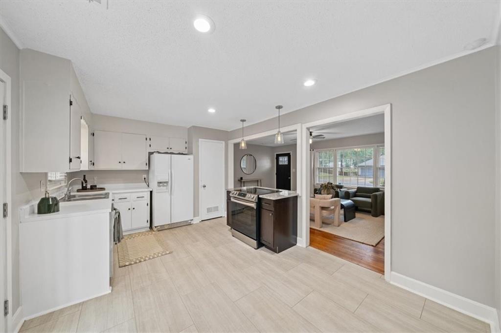 Move-in ready in Shawnee! This all-brick ranch sits on a quiet cul-de-sac with a large, treed lot and fenced backyard. Inside, you’ll find an open-concept layout with fresh paint and added can lighting. The spacious primary suite features a large walk-in closet, laundry closet, and full bath addition. Updates include: new high-efficiency HVAC, new garage door & opener, and partially new privacy fence. Kitchen comes fully equipped with a new range, dishwasher, disposal, plus fridge, washer & dryer—all stay! Relax on the deck overlooking the backyard and enjoy a desirable neighborhood with large lots. North property line extends approximately 6 feet past the privacy fence.