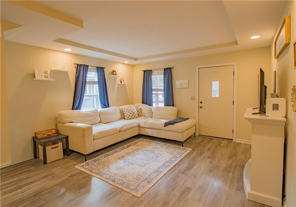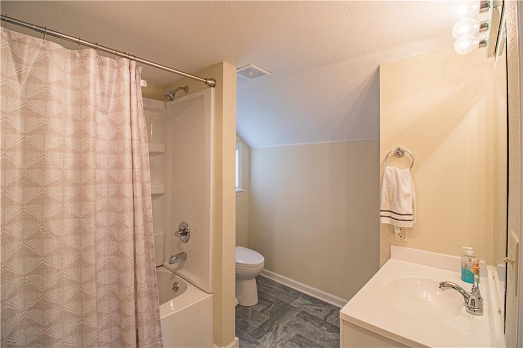 Welcome to this beautifully updated 1.5 story home located in an adorable and quiet neighborhood. This home was completely renovated in 2022 giving it a clean and modern look. From the exterior of the home you will notice the newer roof (2022) and inviting covered front porch waiting to be decorated for the holidays. Your family will love the updated touches inside the home including the beautiful LVP flooring throughout, recessed lighting and vaulted ceiling in the spacious living room. The large primary bedroom is equipped with a walk-in closet. The large laundry room is located on the main level for added convenience. You will love the updated kitchen cabinets, countertops, and matching stainless steel appliances. The upstairs provides a large third bedroom, full bathroom, and walk in closet. There is a partial basement perfect for added storage and storms. Major updates to this home include new roof, electrical wiring, plumbing, HVAC, and gravel in the driveway all completed in 2022. This is the ultimate move in ready home waiting for its new owners!
