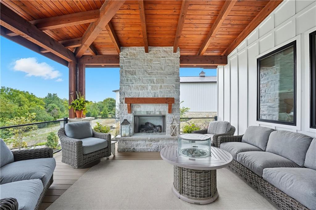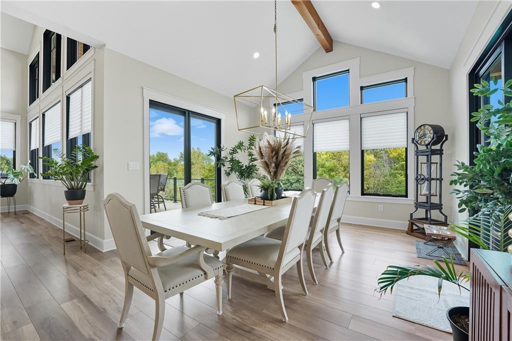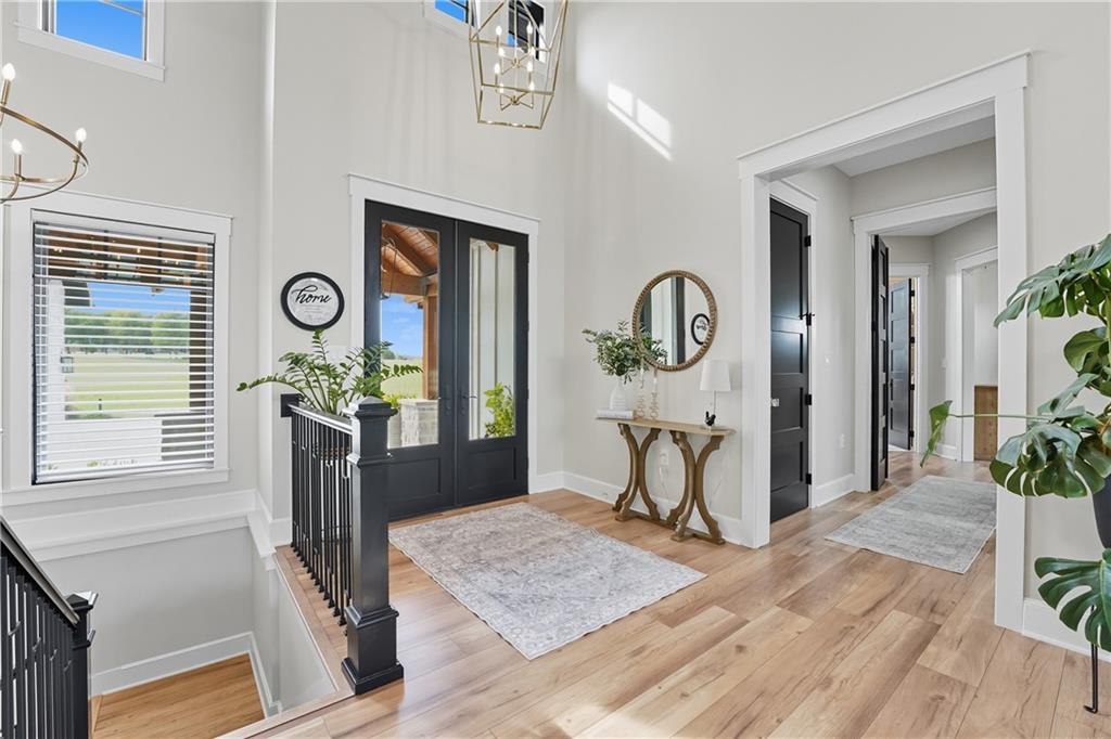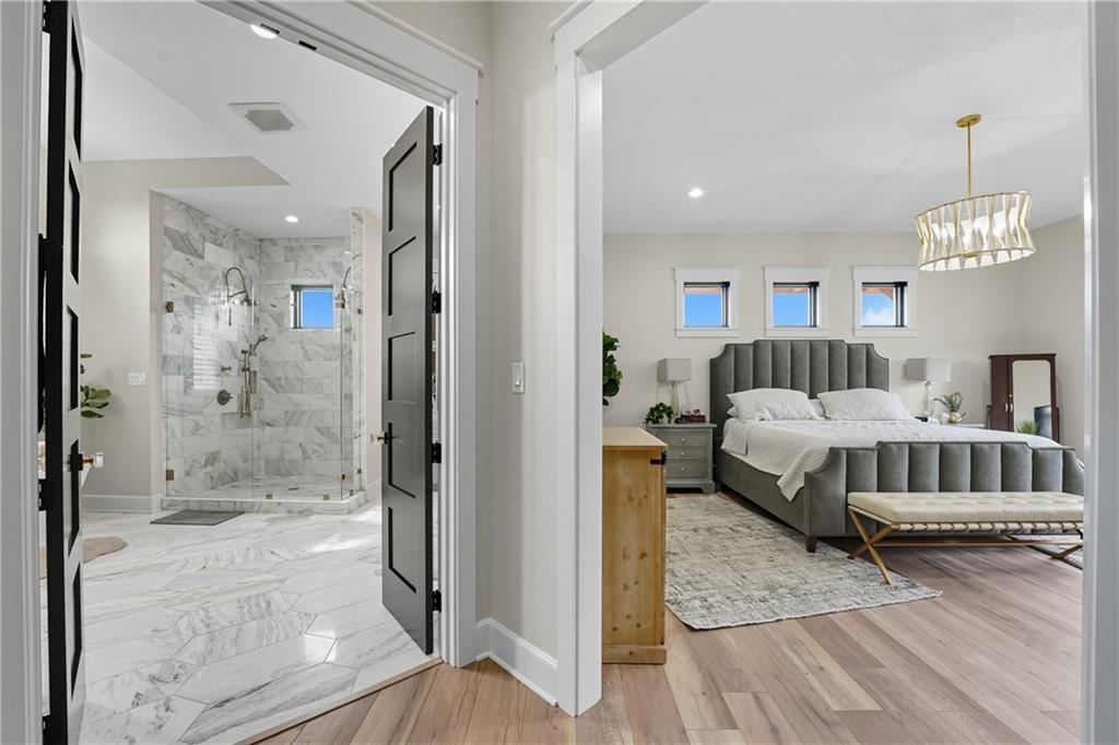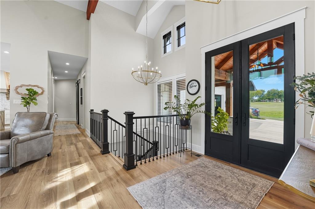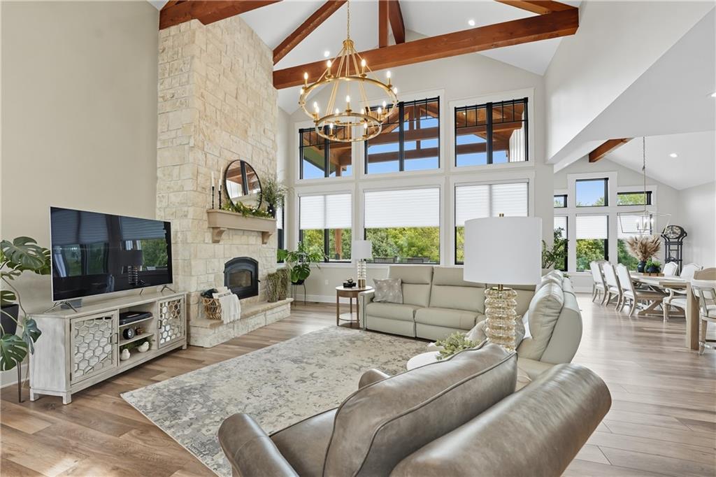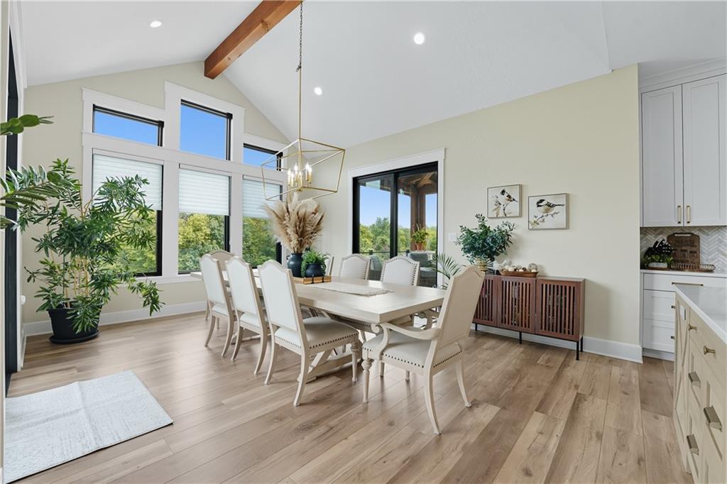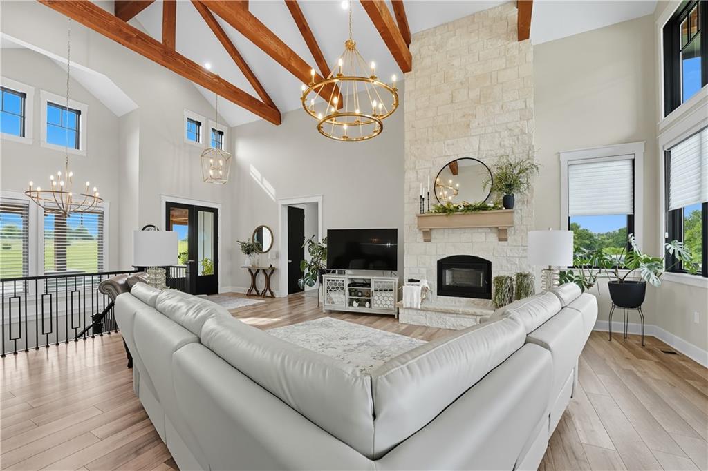Custom-built retreat with soaring ceilings, wood beams, & tons of windows offering natural light throughout. Backyard oasis w/heated inground pool, waterfalls, fire bowls, firepit, covered deck & patio, & iron fence. Open main floor living w/floor to ceiling fireplace, custom cabinetry, oversize center island, walk-in pantry, high end finishes & built-ins through out, designated office, spacious laundry/mud room, stunning primary suite, & 2nd bedroom. Walk-out lower level with excavated garage, storage room w/exterior door, wet bar, 3 bedrooms, Rec Room, & 2nd laundry. 50x50 metal outbuilding with 3 doors(1 oversized for semi), 1/2 bath, geothermal heat/cool & spray foam insulation. 2 geothermal systems, whole house generator, sprinkler system, underground propane tank, and extensive landscaping w/concrete curb complete this one-of-a-kind home. All bedrooms with walk-in closets and private bath access. Paved drive/parking for business, semi, RV, trailers, etc.