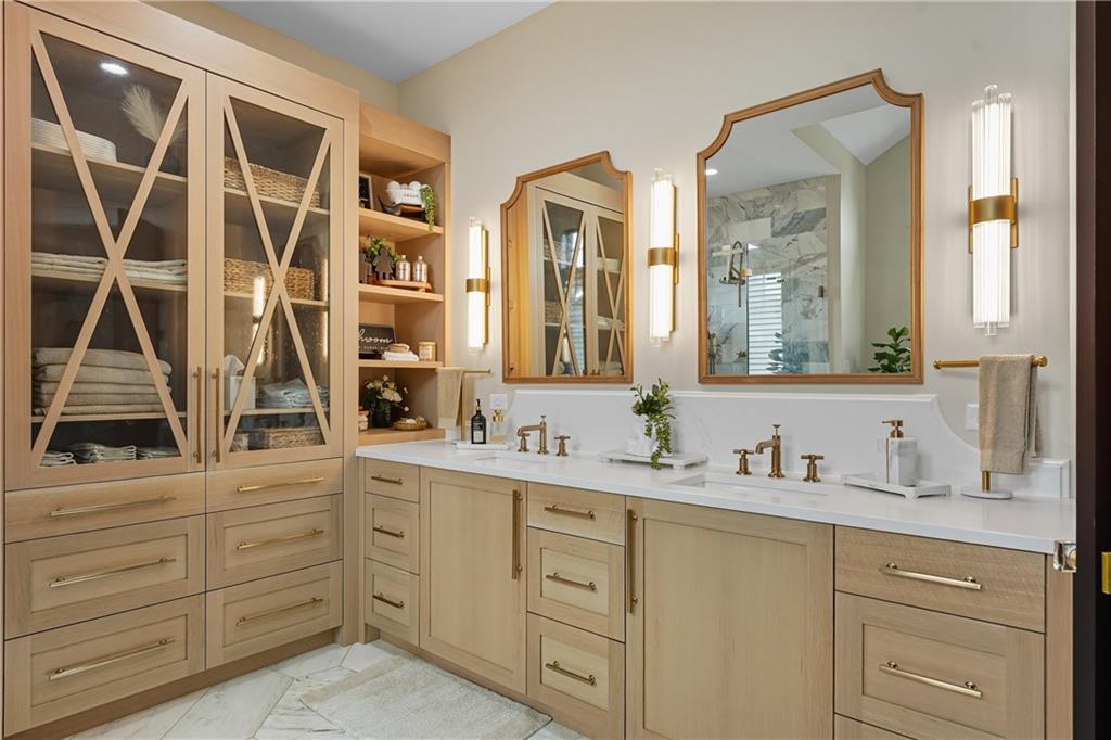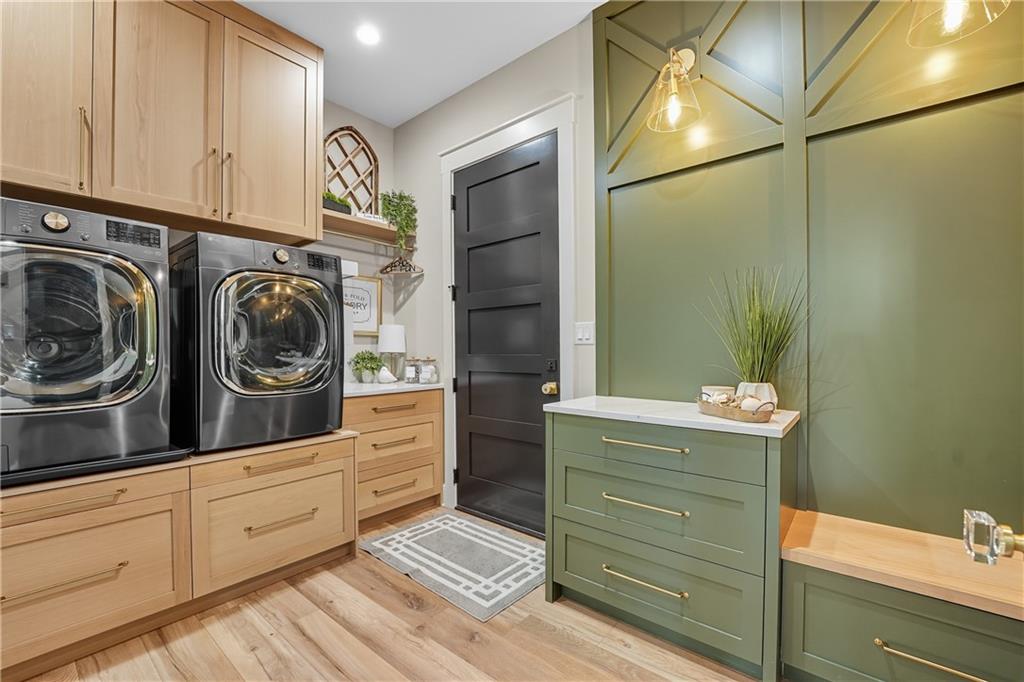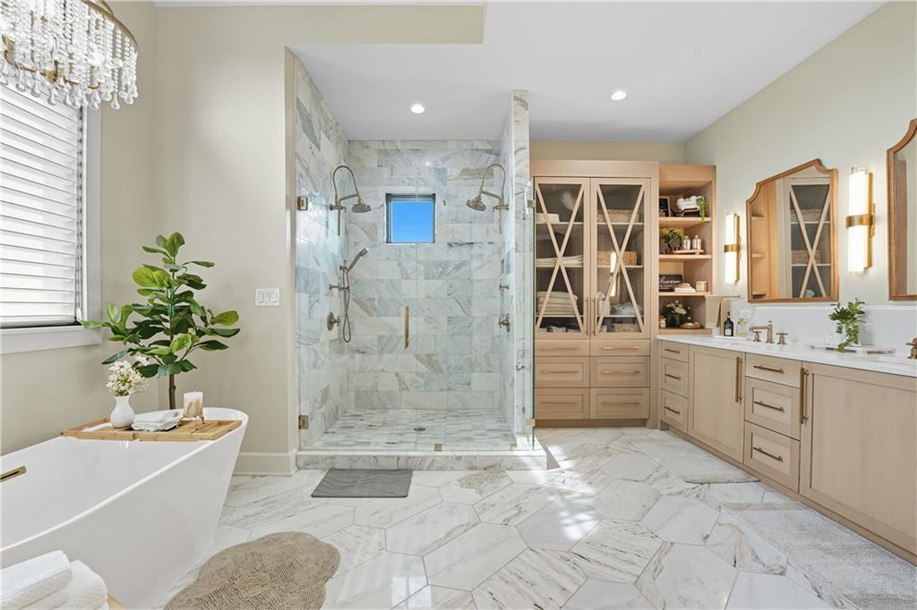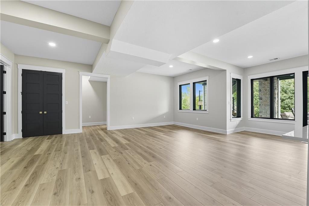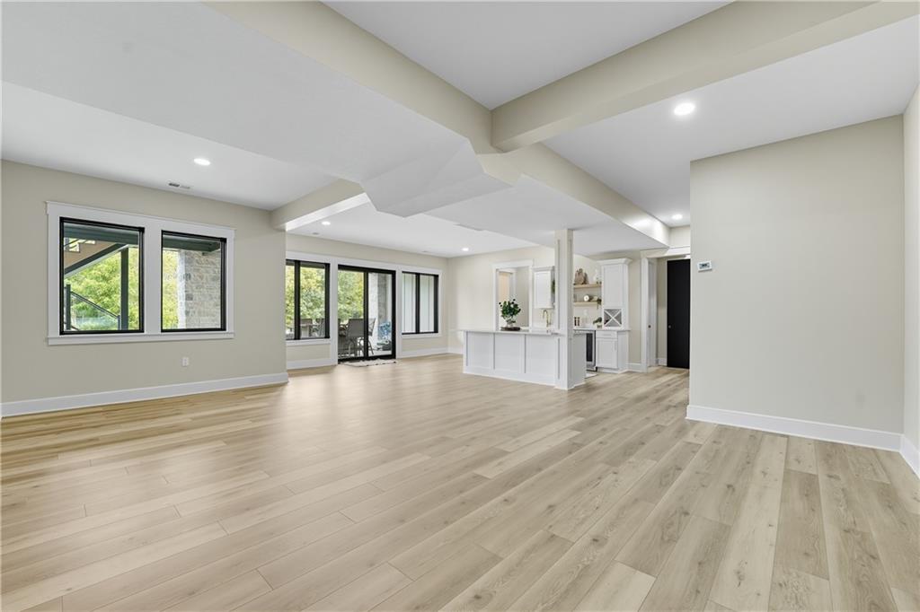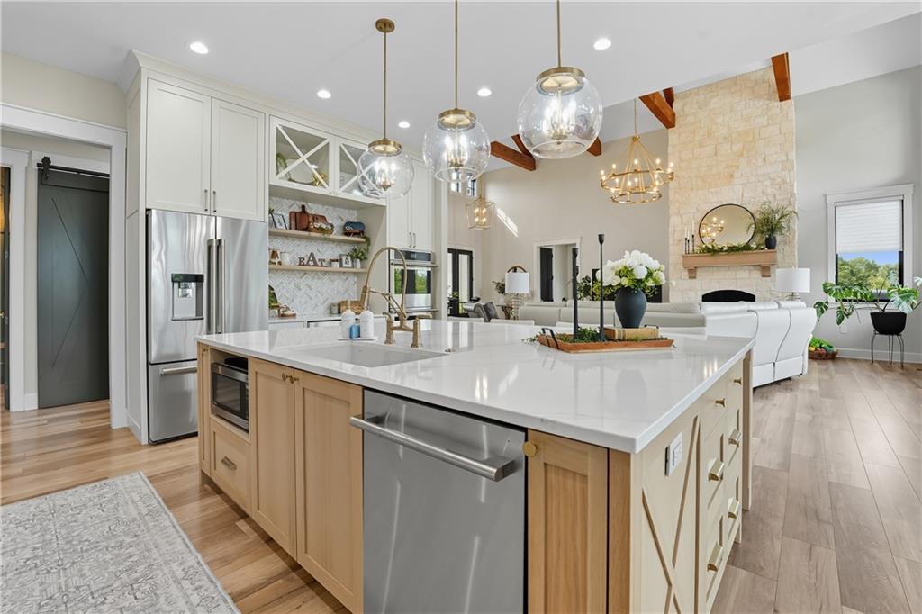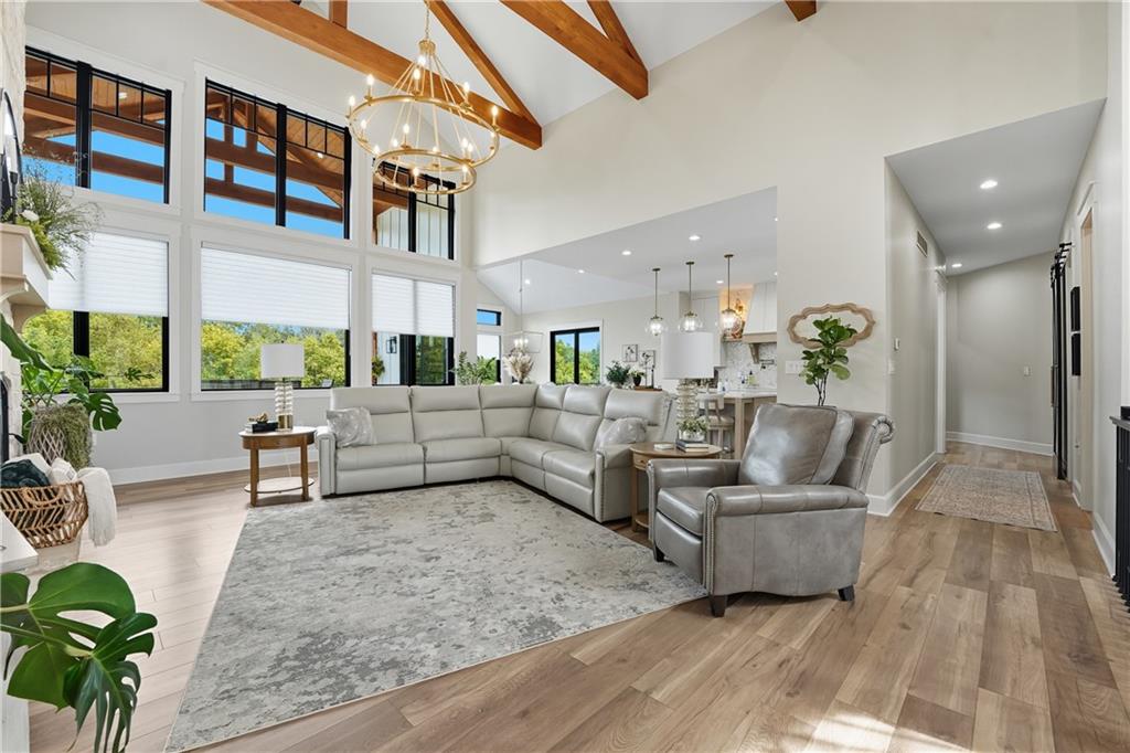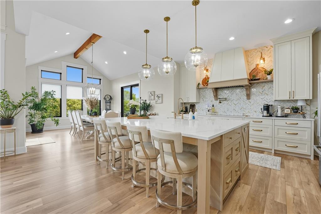 Custom-built retreat with soaring ceilings, wood beams, & tons of windows offering natural light throughout. Backyard oasis w/heated inground pool, waterfalls, fire bowls, firepit, covered deck & patio, & iron fence. Open main floor living w/floor to ceiling fireplace, custom cabinetry, oversize center island, walk-in pantry, high end finishes & built-ins through out, designated office, spacious laundry/mud room, stunning primary suite, & 2nd bedroom. Walk-out lower level with excavated garage, storage room w/exterior door, wet bar, 3 bedrooms, Rec Room, & 2nd laundry. 50x50 metal outbuilding with 3 doors(1 oversized for semi), 1/2 bath, geothermal heat/cool & spray foam insulation. 2 geothermal systems, whole house generator, sprinkler system, underground propane tank, and extensive landscaping w/concrete curb complete this one-of-a-kind home. All bedrooms with walk-in closets and private bath access. Paved drive/parking for business, semi, RV, trailers, etc.
