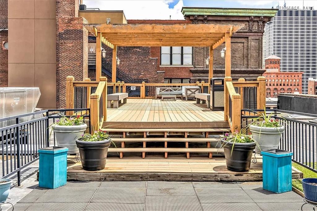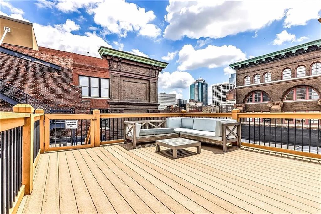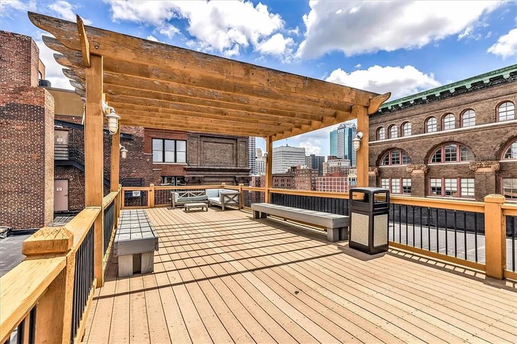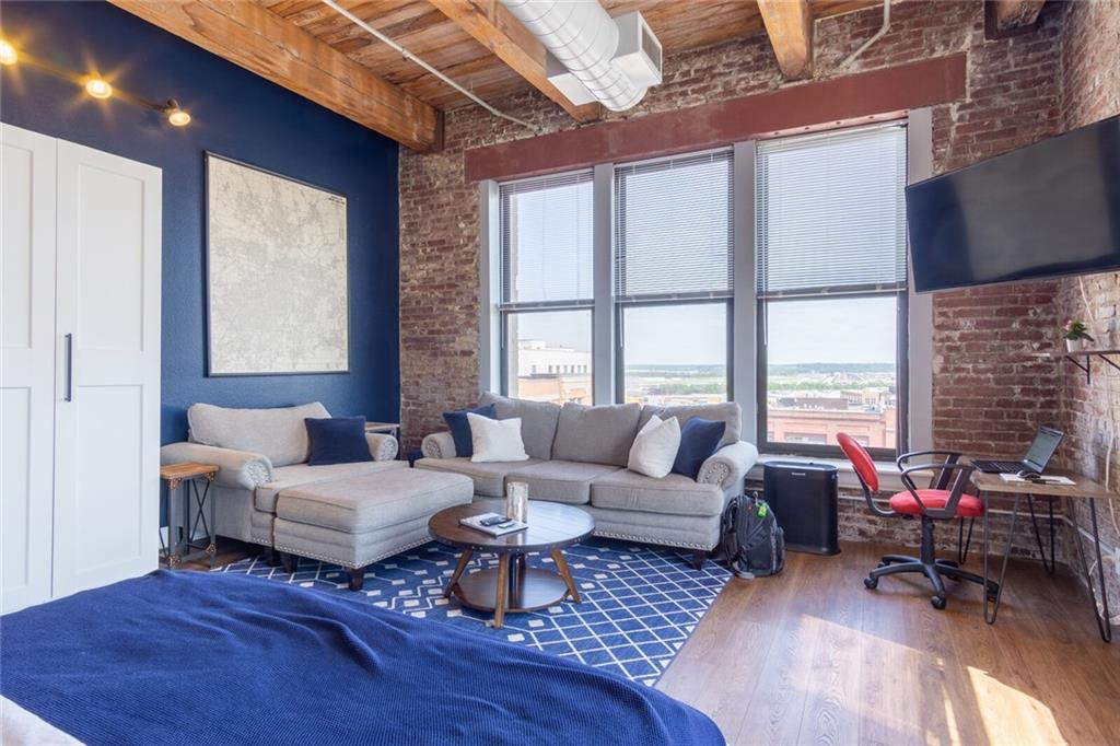 Bright corner energy, skyline views, and serious style make this studio simply impossible to resist. Plus, it comes complete with furnishings, making it rental-ready from day one. Oversized windows fill the space with natural light, highlighting a mix of industrial edge and cozy comfort. Wood floors, exposed brick, open ductwork, and a tongue-and-groove ceiling adds depth and character, built-ins provide practicality, and a window seat offers a quiet spot for morning coffee or a good book. The tucked-away kitchen includes all the essentials, ample cabinet space, and room for a small eat-in area. A generously sized bathroom and in-unit laundry add everyday convenience. Soho Lofts sits in the historic Garment District, putting dining, bars, shops, and entertainment right at your doorstep. Residents also enjoy a rooftop deck with panoramic skyline views, a fitness center, sauna, yoga room, and a club room for gathering with friends. The River Market, Power and Light, and the Crossroads are just a quick stroll or streetcar ride away. Garage parking is available for lease at an additional cost. Whether you’re searching for a smart investment (think low HOA with 1 month minimum rental), a downtown retreat, or your first loft, this cutie is full of possibilities.