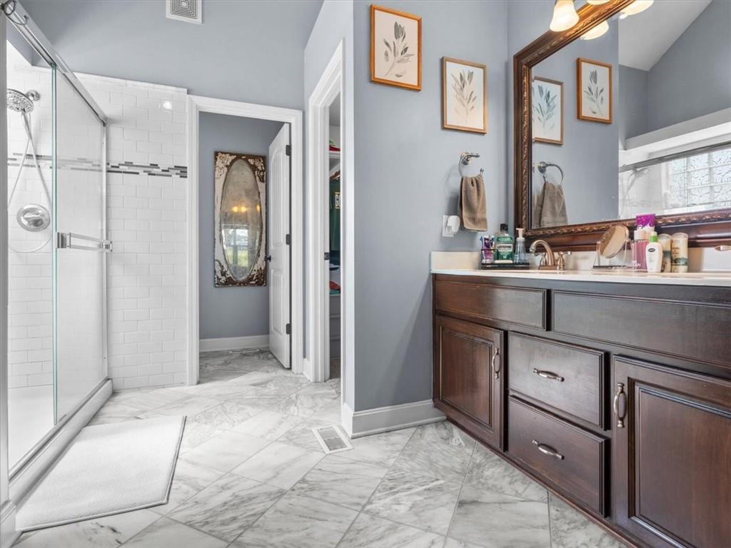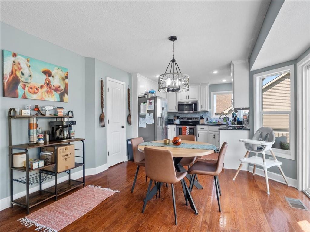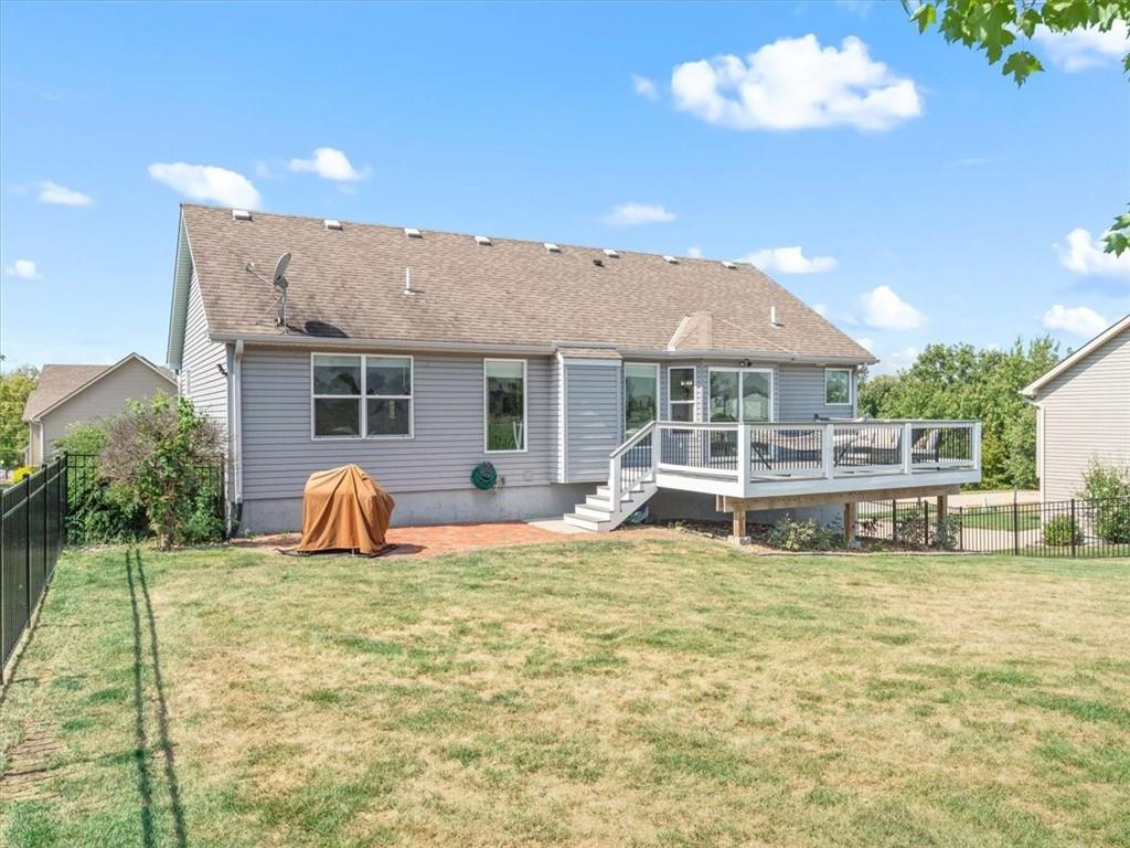 This 3-bedroom, 3-bath home sits on a peaceful cul-de-sac, just minutes from shopping, dining, and highways. The main floor offers a bright family room with fireplace, an updated kitchen with white cabinets, under-cabinet lighting, and beautiful counters, plus the convenience of main floor laundry. Two bedrooms share a full bath, while the spacious primary suite includes its own bath and walk-in closet. The finished lower level adds a second family room, full bath, and walk-out access to the oversized two car garage. Perfect for entertaining, home office space, or movie nights. Enjoy the outdoors with a newer deck, patio, fenced backyard, and fresh landscaping. Recent updates include a new heat pump, interior paint, storm door, updated lighting, hardwood floors, carpet, and a hot water heater tune-up.