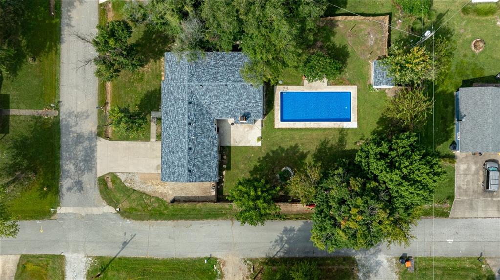 This move in ready, three bedroom, two bath, open floor plan ranch style home has two living spaces, with one on each side of the kitchen. The family room has a large, wood burning fireplace with insert and hearth that looks out over a large, privacy fenced backyard with a 36 x 16 foot in ground pool with a new liner, filter and pump, all under warranty. Both bathrooms have been upgraded and there are ceiling fans in all rooms. The laundry room and pantry are conveniently located between the kitchen and double garage. There is additional parking on the right side of the house, which sits on a large corner lot on a cul-de-sac type street with no through traffic. The house is conveniently located within 5 minutes from Wal-Mart, Home Depot, and Dillons. Both the house and pool shed have had a new roof installed within the last 30 days. This is a wonderful family home with a floor plan that provides some privacy for all.