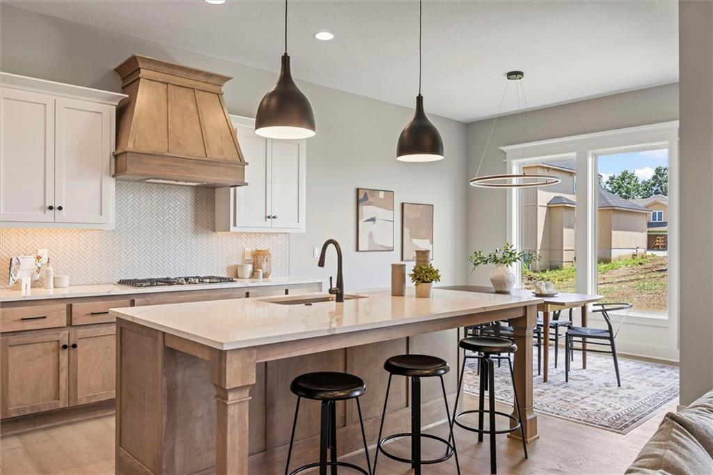 Welcome to the Ryder Expanded by Lamendola Custom Homes located on Lot 64! Eight foot tall double doors welcome you to this beautiful 1.5 story home with 5 bedrooms and 3.5 bathrooms. The first floor has a wonderful primary bedroom with a large ensuite bathroom and closet with built in drawers, an additional bedroom and/or office, a laundry room with a sink and storage plus a great kitchen with a walk-in pantry. The great room has convenient dry bar with floating shelves to make entertaining a breeze. Upstairs you will find a loft for added living space, 2 bedrooms with a Jack-and-Jill bathroom plus a third bedroom and ensuite bathroom. So much to love and a great place to call home!! Taxes are estimated. Close to schools, highways, shops and restaurants! Models Open Daily, 11 am – 5pm, and Sunday, 12-5pm. Visit the sales office at 12411 W 183rd Terrace, Overland Park. THIS HOME IS ESTIMATED TO BE COMPLETED IN THE SPRING OF 2026.