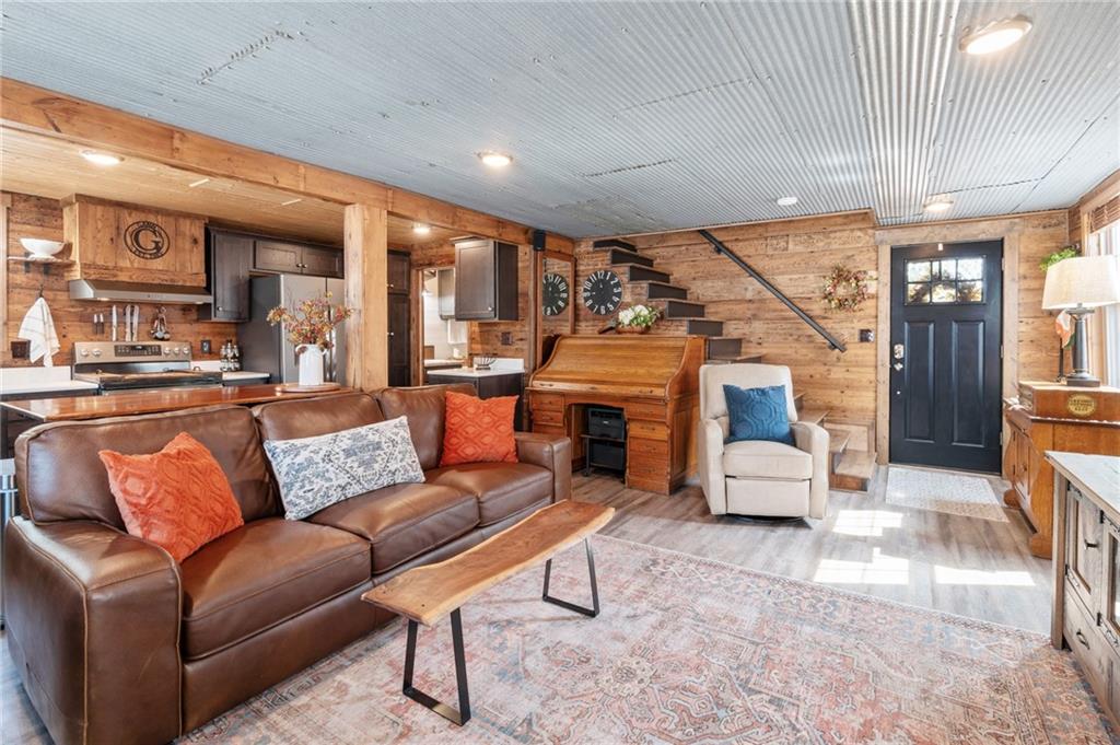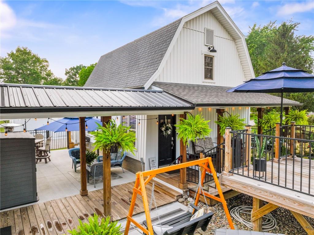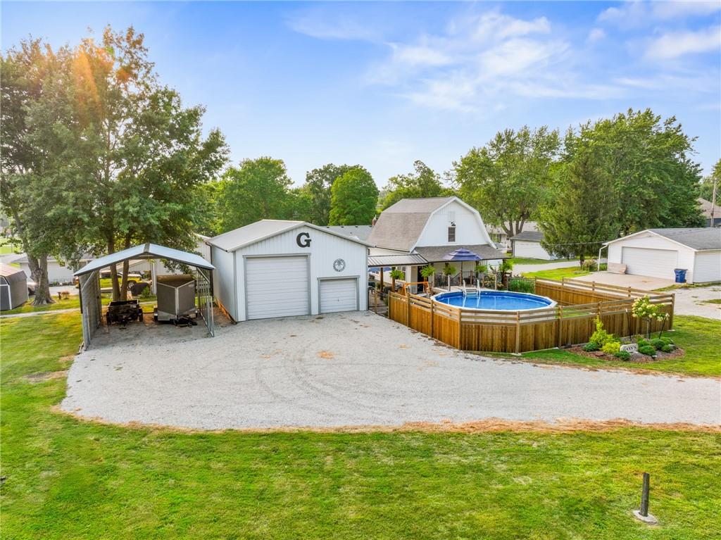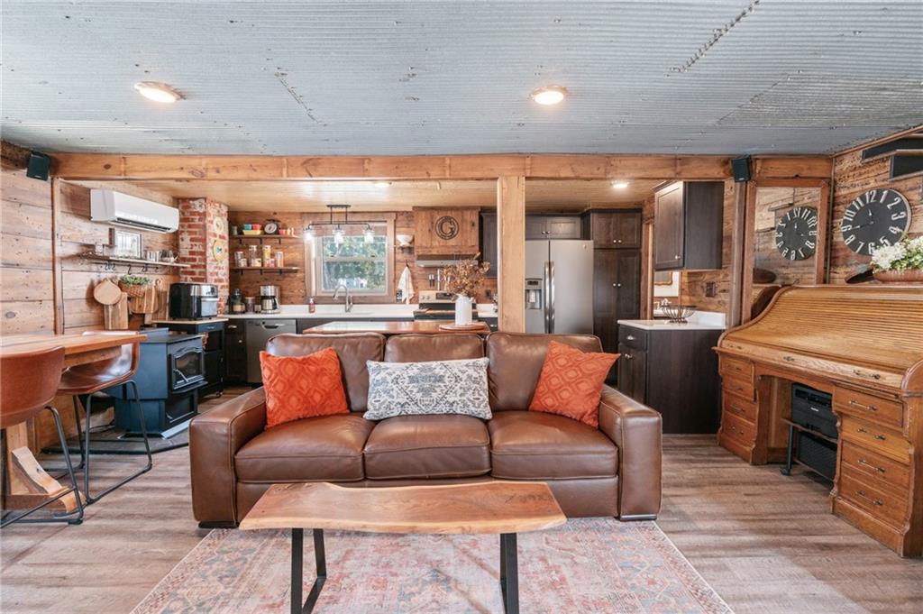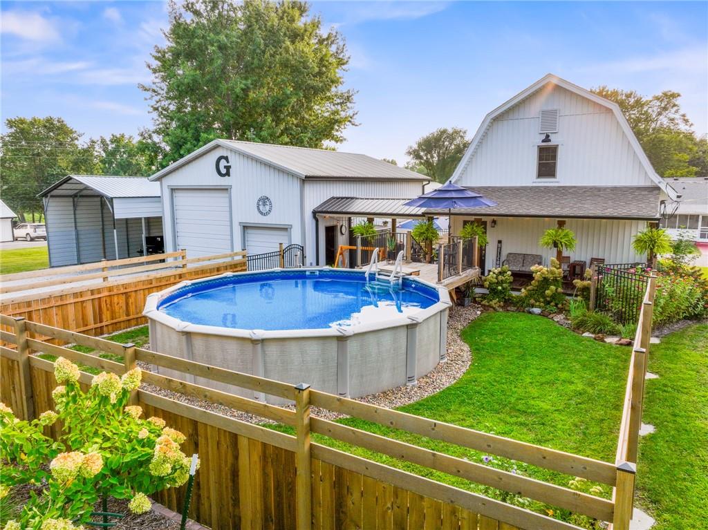 Rustic Charm Meets Modern Comfort - Once a 1930’s barn, this unique home has been lovingly transformed into a cozy retreat full of character. Step inside to find a warm, rustic interior with stylish touches throughout. The loft bedroom feels tucked away and inviting, while the open main level offers a welcoming kitchen with custom cabinets w/pullout shelves, Cambria quartz countertops, making it a great space to gather. The bedroom closet is cedar lined, the windows are NEW and tilt in for easy cleaning and the flooring is high quality, beautiful and durable! A pellet stove and mini-split HVAC keep things comfortable in every season, and the convenience of full laundry makes daily living easy. Outdoors is where this property really shines! Splash into summer fun with your own above-ground pool, surrounded by a custom deck and privacy fencing. The private patio area connecting the house and garage is perfect for dining alfresco or sipping your morning coffee! There’s also a 36x27 outbuilding with an 11x27 finished room—climate controlled and perfect for a studio, office, guest room or hobby spot—plus plenty of space for cars, projects, or toys. The 20x30 RV port protects your RV, ATV, boats, or extra vehicles with the protection they deserve. All of this is set on a spacious lot, there’s room to garden, relax, or host friends and family under the open sky. This is a place where charm, comfort, and lifestyle come together beautifully.