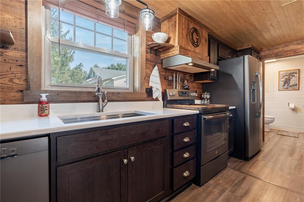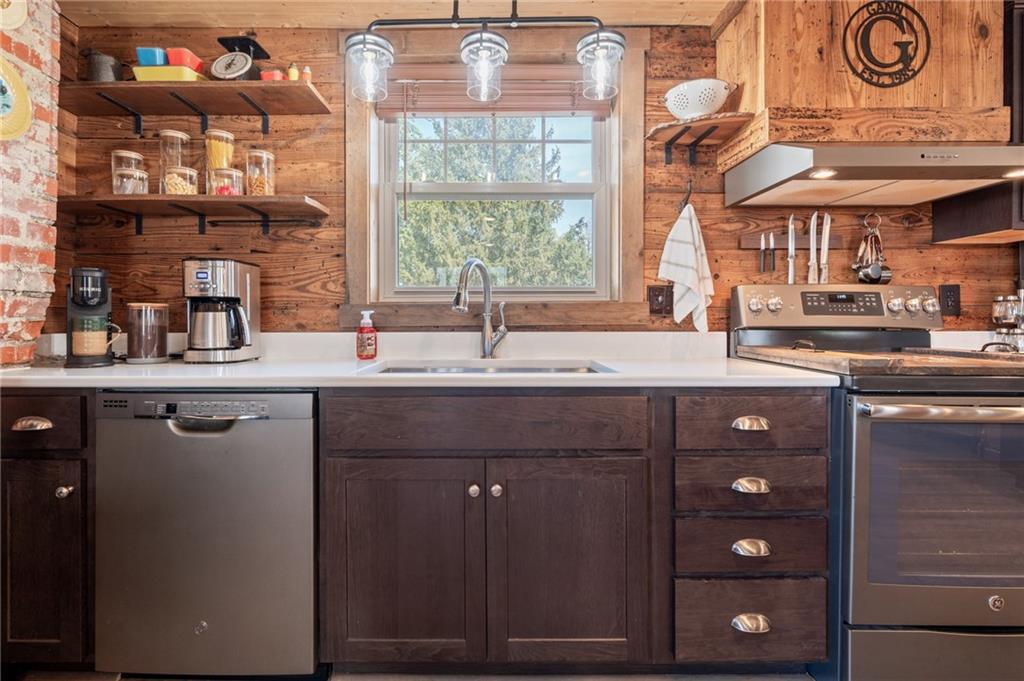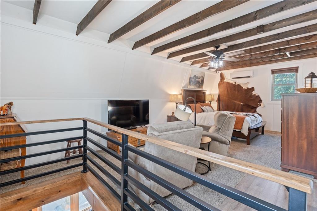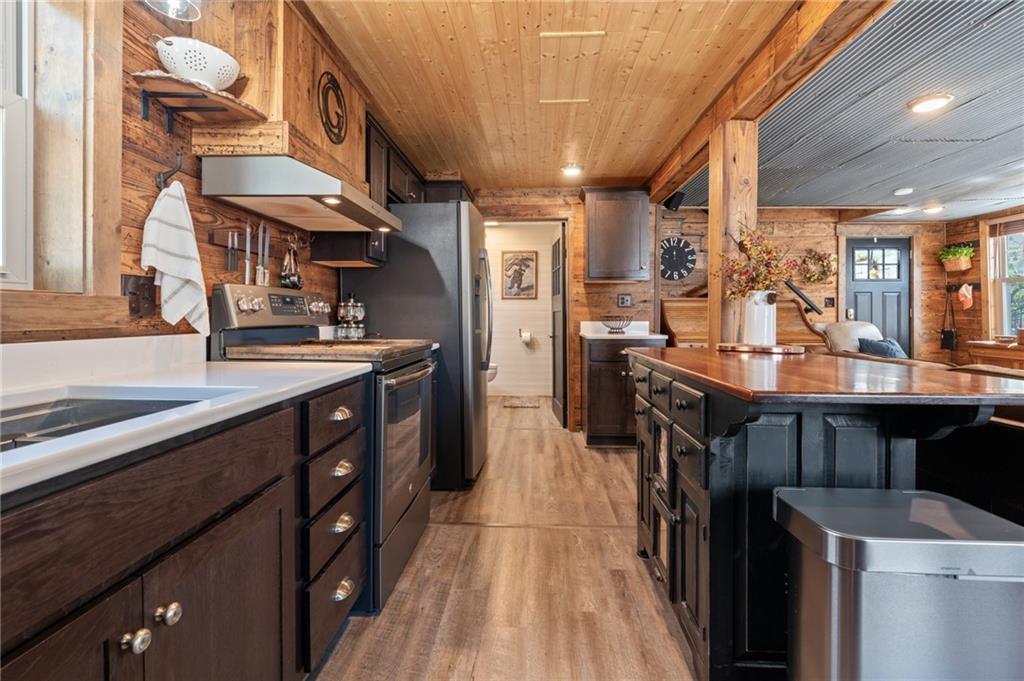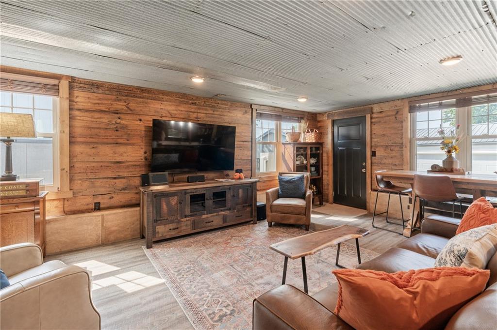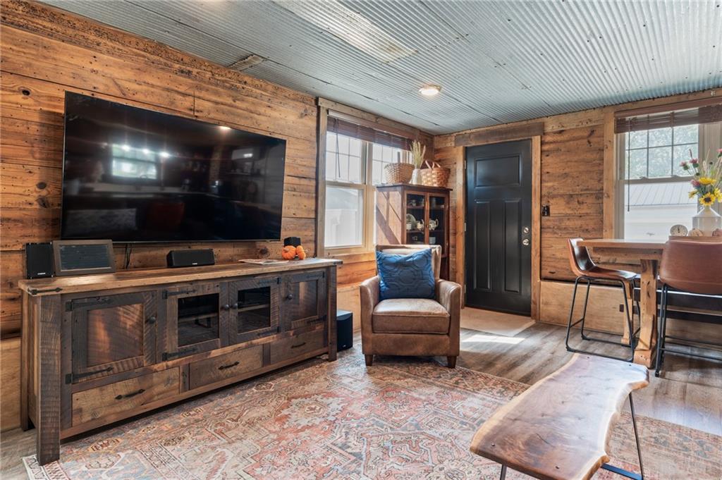 Rustic Charm Meets Modern Comfort - Once a 1930’s barn, this unique home has been lovingly transformed into a cozy retreat full of character. Step inside to find a warm, rustic interior with stylish touches throughout. The loft bedroom feels tucked away and inviting, while the open main level offers a welcoming kitchen with custom cabinets w/pullout shelves, Cambria quartz countertops, making it a great space to gather. The bedroom closet is cedar lined, the windows are NEW and tilt in for easy cleaning and the flooring is high quality, beautiful and durable! A pellet stove and mini-split HVAC keep things comfortable in every season, and the convenience of full laundry makes daily living easy. Outdoors is where this property really shines! Splash into summer fun with your own above-ground pool, surrounded by a custom deck and privacy fencing. The private patio area connecting the house and garage is perfect for dining alfresco or sipping your morning coffee! There’s also a 36x27 outbuilding with an 11x27 finished room—climate controlled and perfect for a studio, office, guest room or hobby spot—plus plenty of space for cars, projects, or toys. The 20x30 RV port protects your RV, ATV, boats, or extra vehicles with the protection they deserve. All of this is set on a spacious lot, there’s room to garden, relax, or host friends and family under the open sky. This is a place where charm, comfort, and lifestyle come together beautifully.