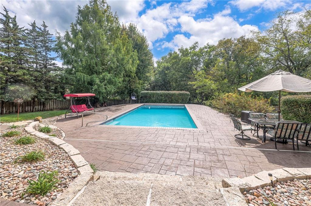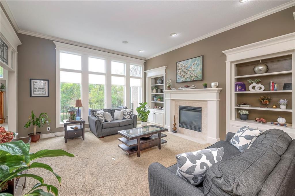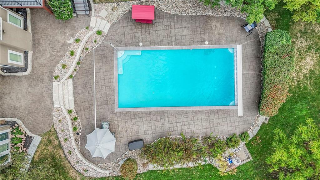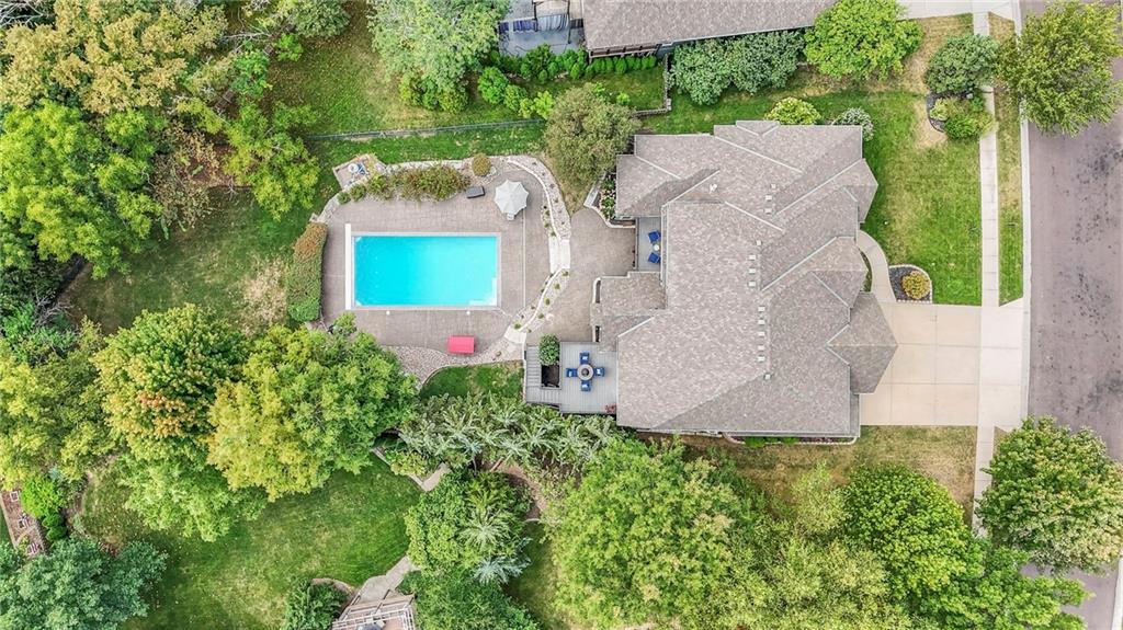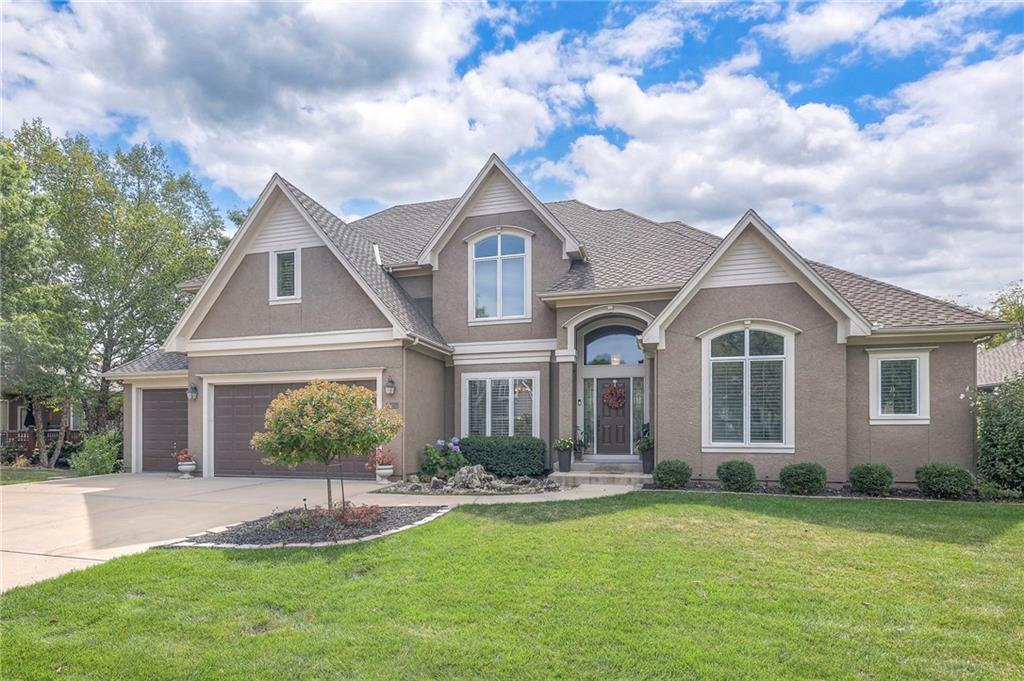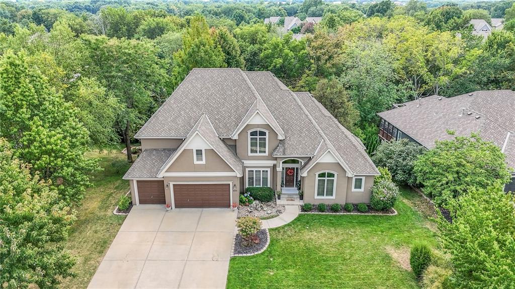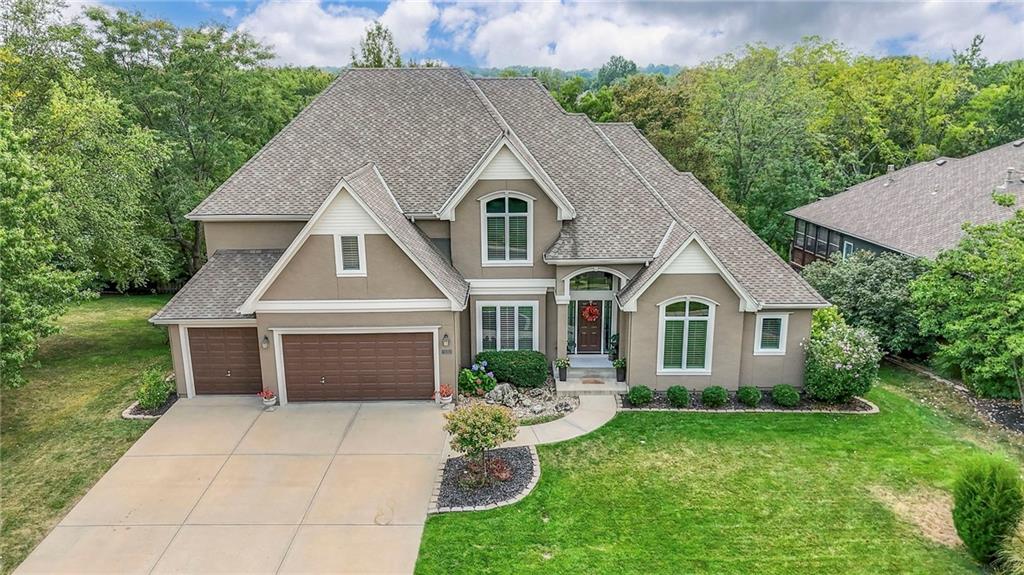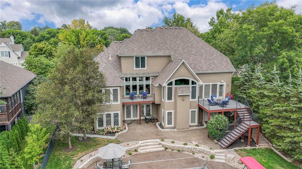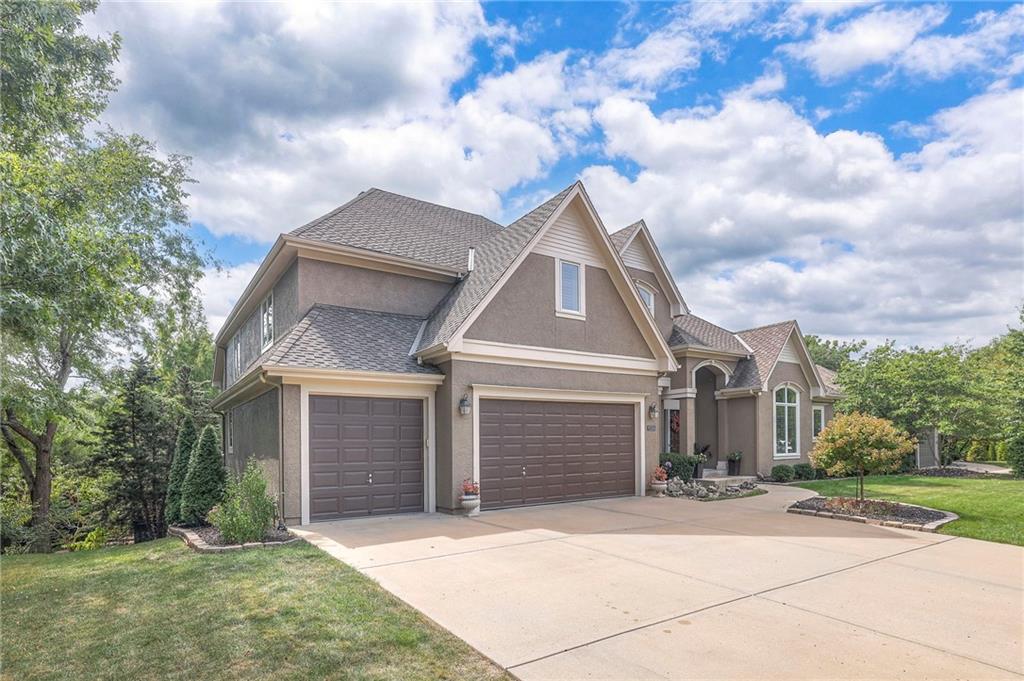 Welcome to this stunning 1.5-story home offering over 5,800 square feet of living space in a fantastic Overland Park location. The inviting entry opens to a formal dining room and home office, setting the tone for the amazing space throughout. The living room is warm and welcoming with vaulted ceilings, a cozy fireplace, and built-ins. The kitchen is truly the heart of the home, featuring an expansive island, double ovens, two sinks, a walk-in pantry, and generous countertop space. Just off the kitchen, a hearth room with its own fireplace and built-ins provides the perfect spot to gather. Step outside to a low-maintenance composite deck overlooking the private, treed backyard. The main-level primary suite is a retreat all its own, with a private balcony, spa-like ensuite bath featuring a walk-in shower and soaking tub, and a huge walk-in closet. A convenient laundry room rounds out the main floor. Upstairs, you’ll find four spacious bedrooms, each with access to bathrooms and large closets. The finished walk-out basement is designed for entertaining, featuring a large rec room, a wet bar, and a separate space perfect for a pool table. A non-conforming sixth bedroom and abundant storage provide additional flexibility. Step outside to the backyard oasis, complete with a beautiful swimming pool, expansive patio, green space, and mature trees for privacy. This home is the complete package, spacious, functional, and perfect for both everyday living and entertaining.