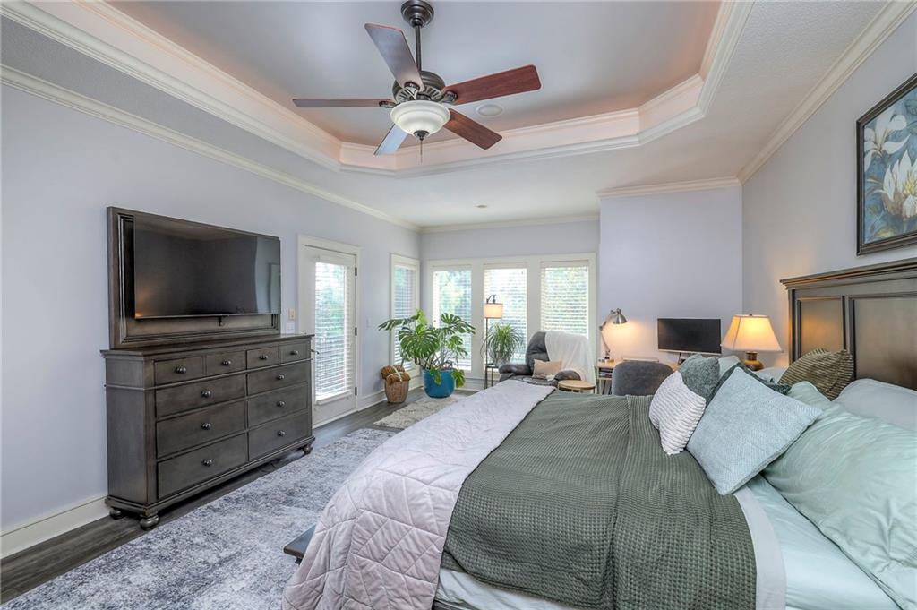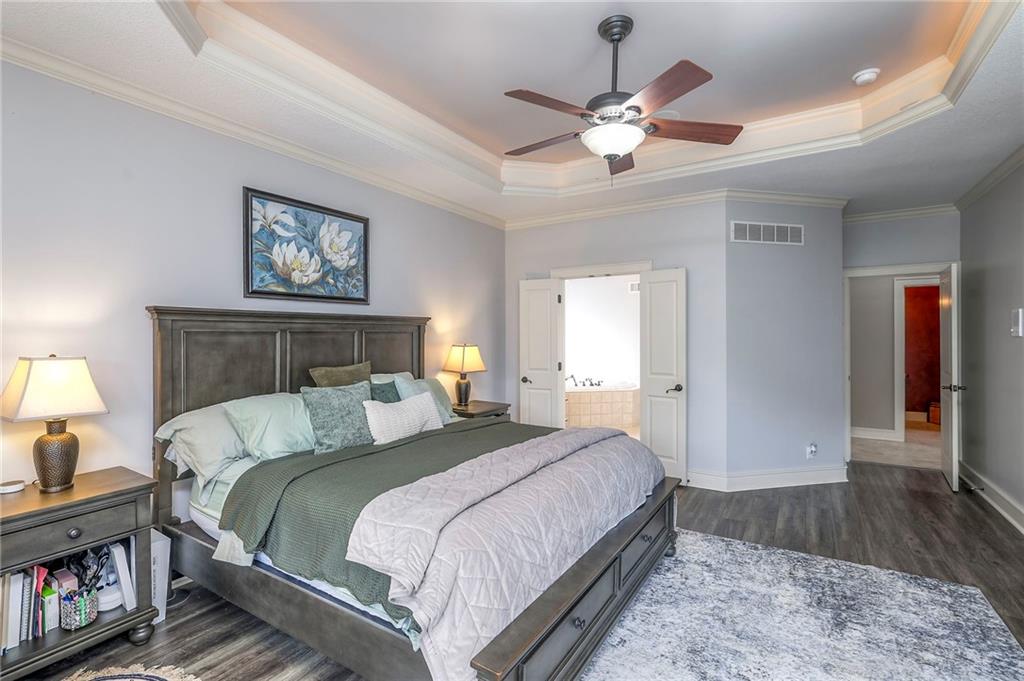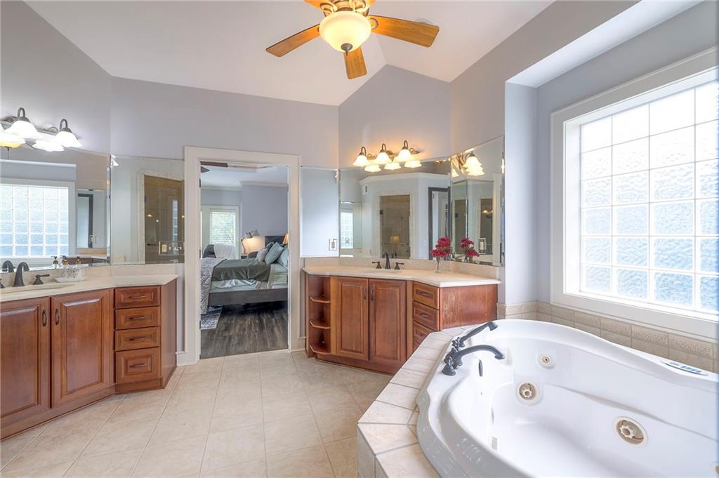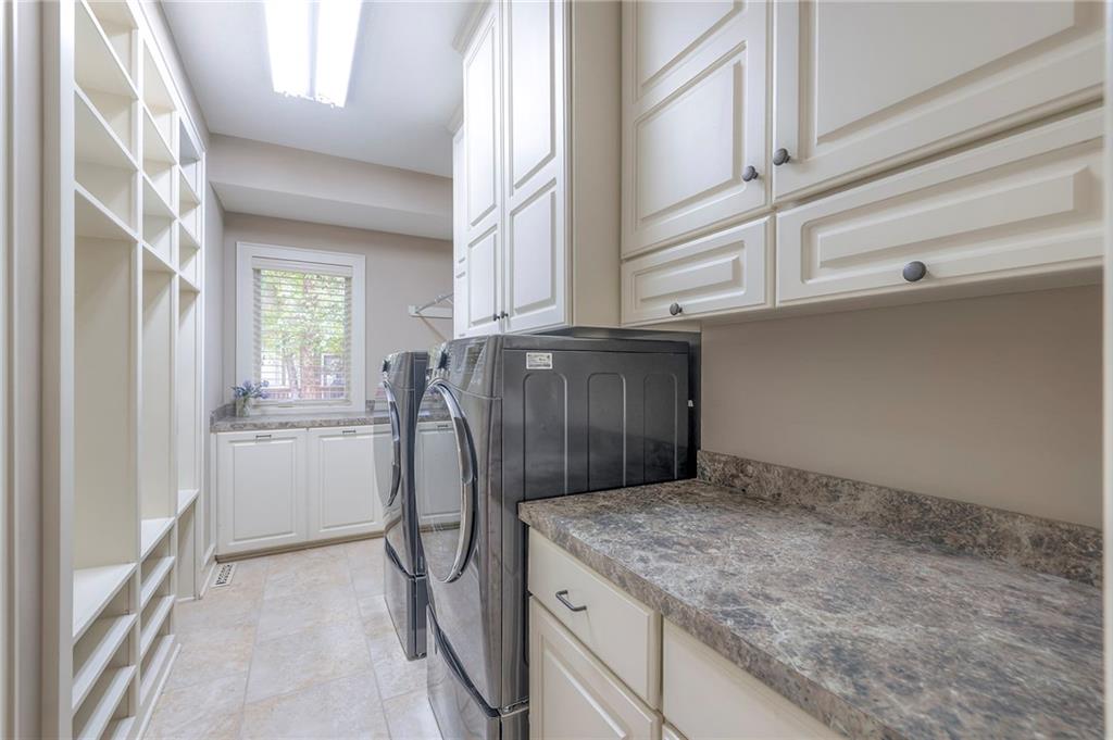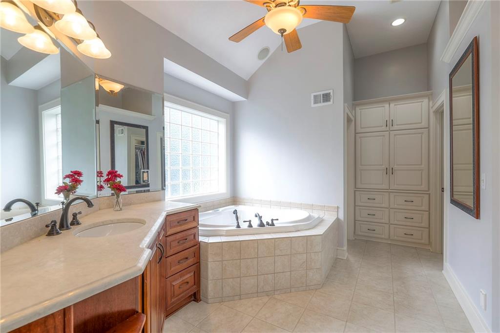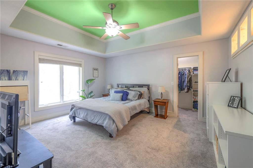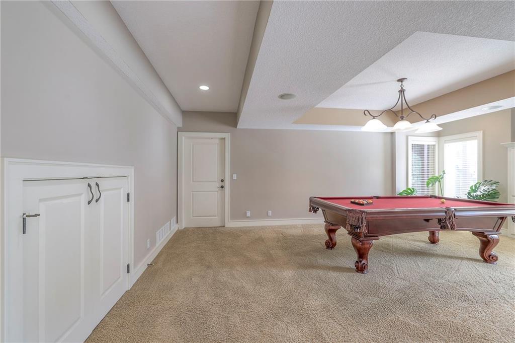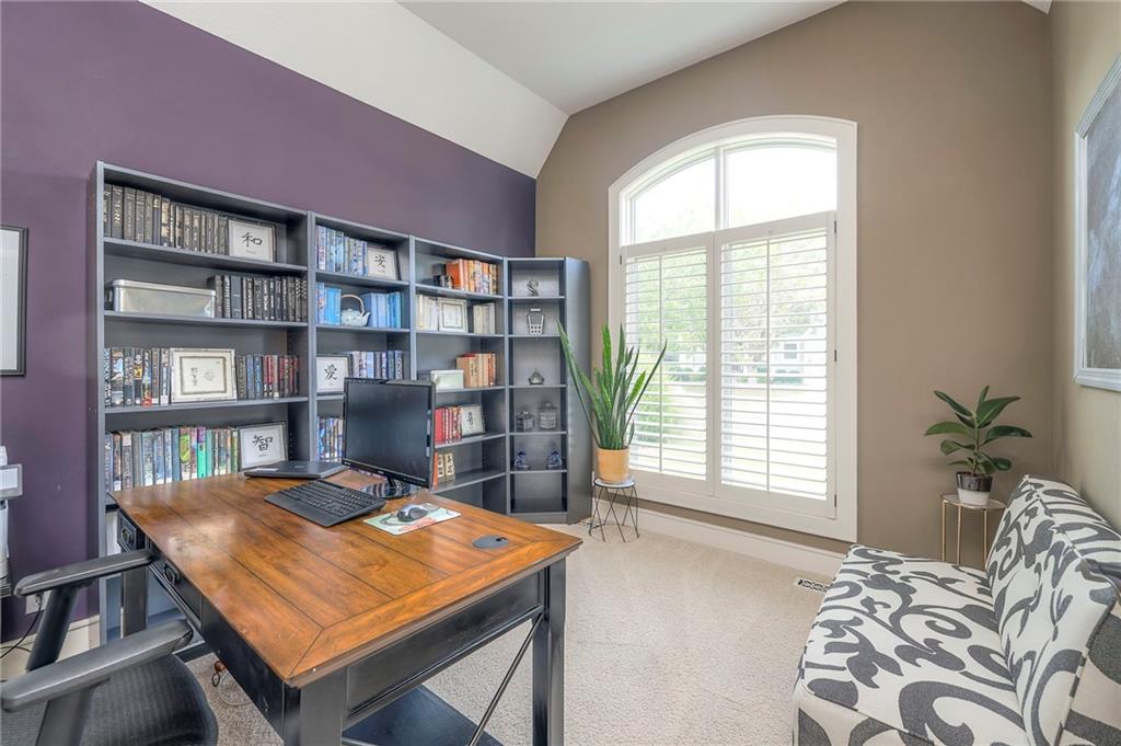 Welcome to this stunning 1.5-story home offering over 5,800 square feet of living space in a fantastic Overland Park location. The inviting entry opens to a formal dining room and home office, setting the tone for the amazing space throughout. The living room is warm and welcoming with vaulted ceilings, a cozy fireplace, and built-ins. The kitchen is truly the heart of the home, featuring an expansive island, double ovens, two sinks, a walk-in pantry, and generous countertop space. Just off the kitchen, a hearth room with its own fireplace and built-ins provides the perfect spot to gather. Step outside to a low-maintenance composite deck overlooking the private, treed backyard. The main-level primary suite is a retreat all its own, with a private balcony, spa-like ensuite bath featuring a walk-in shower and soaking tub, and a huge walk-in closet. A convenient laundry room rounds out the main floor. Upstairs, you’ll find four spacious bedrooms, each with access to bathrooms and large closets. The finished walk-out basement is designed for entertaining, featuring a large rec room, a wet bar, and a separate space perfect for a pool table. A non-conforming sixth bedroom and abundant storage provide additional flexibility. Step outside to the backyard oasis, complete with a beautiful swimming pool, expansive patio, green space, and mature trees for privacy. This home is the complete package, spacious, functional, and perfect for both everyday living and entertaining.