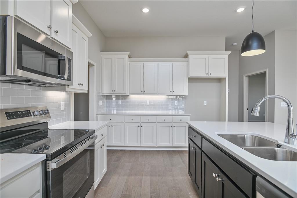 Move-in Ready Maintenance Provided Ranch Villa! This stunning home features an open floor plan with 10’ ceilings, hardwood floors, and a light-filled living room with stone fireplace. The gourmet kitchen includes stainless steel appliances, custom cabinetry, under-cabinet lighting, and a walk-in pantry, plus a main-level mudroom and built-in desk area. The primary suite offers a walk-in closet and beautifully tiled bath. The lower level adds a spacious rec room with dry bar, two additional bedrooms, and a full bath—totaling four bedrooms. Lawn care, snow removal, and exterior maintenance (including roof) are all included.