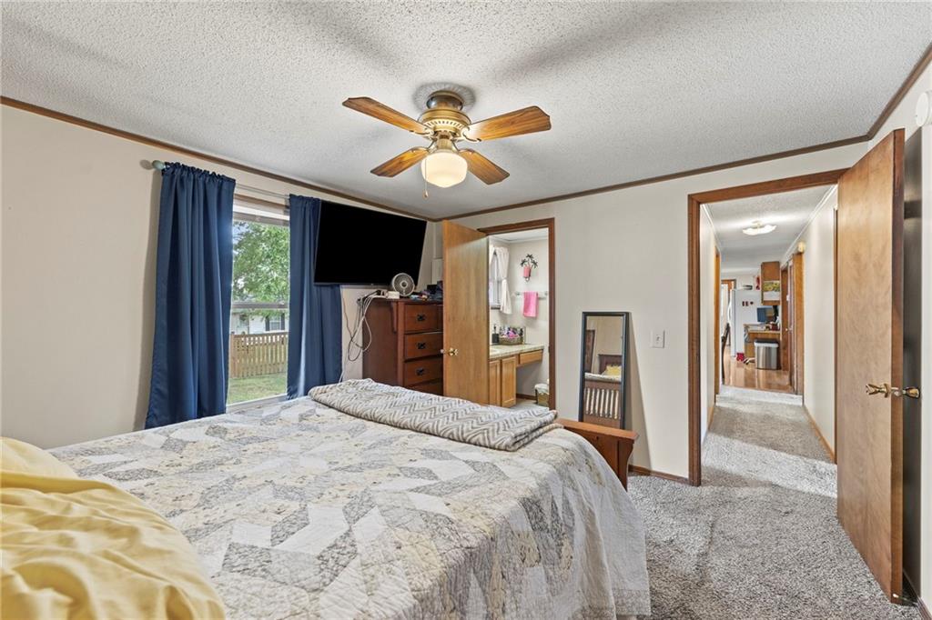 DARLING RANCH WITH TONS OF UPDATES! Move right in and enjoy peace of mind with NEW maintenance-free siding, shutters, deck, water heater and garage door! Light and bright interior flows beautifully while newer windows bring in plenty of natural light. Kitchen features stained cabinets and adjacent dining area has access to the deck—perfect for summer BBQs and outdoor gatherings. Primary suite has walk-in cedar closet and private bath including walk-in shower. Updated main bath shines with a quartz countertop and tile floor. An oversized detached single-car garage offers great storage or workshop space. All of this on a spacious, fenced lot—ideal for pets, play, gardening or simply relaxing outdoors. Great location just minutes to parks, local shops, dining with quick major highway access. WELCOME HOME!