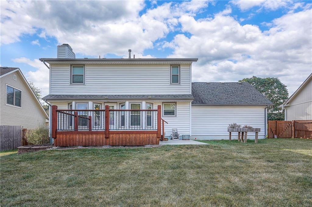 Traditional 2-story in sought after Brooks Farm with 3 bedrooms and 2 full + 1 half bath. Formal living room and great room with fireplace & bay windows, both with hardwood floors. Kitchen has painted cabinets & bay window and opens to dining room. Kitchen appliances were replaced in 2022 and all stay. Large master bedroom with ensuite & 2 closets. Trex deck is 3 years old and overlooks fenced backyard. Large unfinished basement with built-in shelves, large cedar closet and work table with overhead light. Amazing location is close to restaurants, shopping, lakes, and highway access. Walking distance to awarding winning Lee's Summit elementary & middle schools!