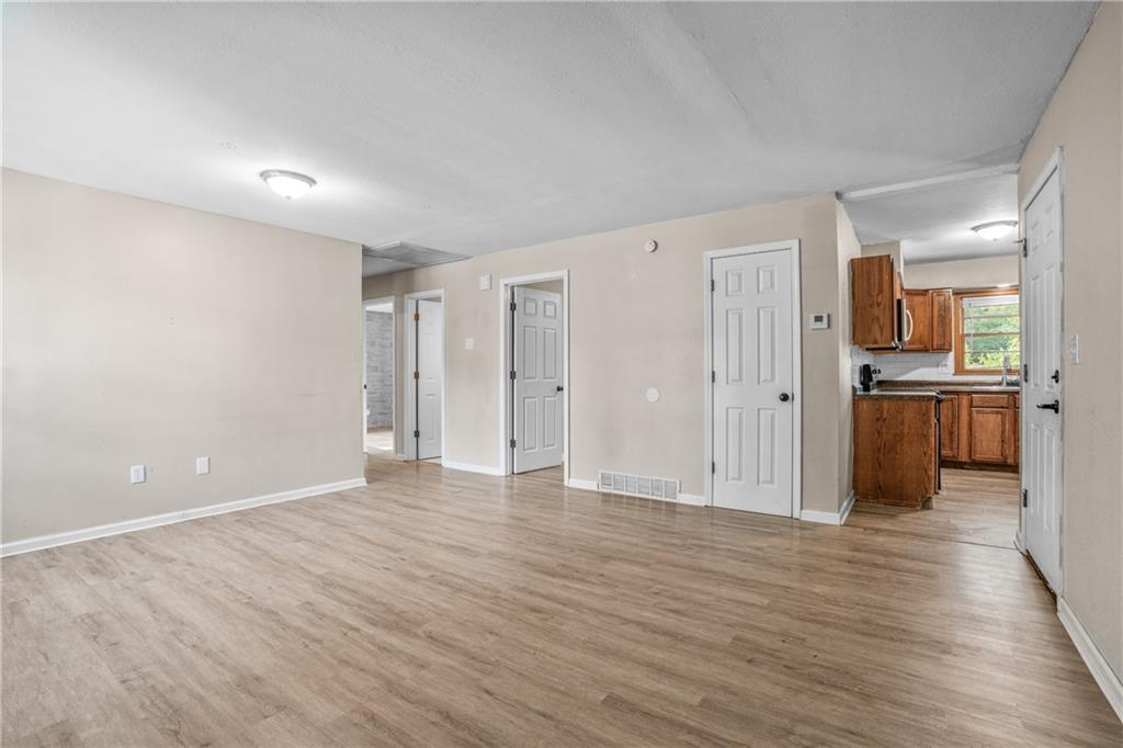 Investment Opportunity in the heart of Belton! This hard-to find Ranch home offers 3-bedrooms, 3-bathrooms with an open floor plan featuring LVT flooring throughout the main level. The spacious kitchen offers ample cabinet space and a walk-in pantry, opening to a dining room that leads to the back deck. The main-level primary suite includes an updated bathroom. The partially finished basement includes a large rec area, a non-conforming 4th bedroom, a full bath, and a storage area. The front of the home is all brick with a welcoming front porch. Enjoy a spacious, treed, and fenced backyard with a play set that stays.