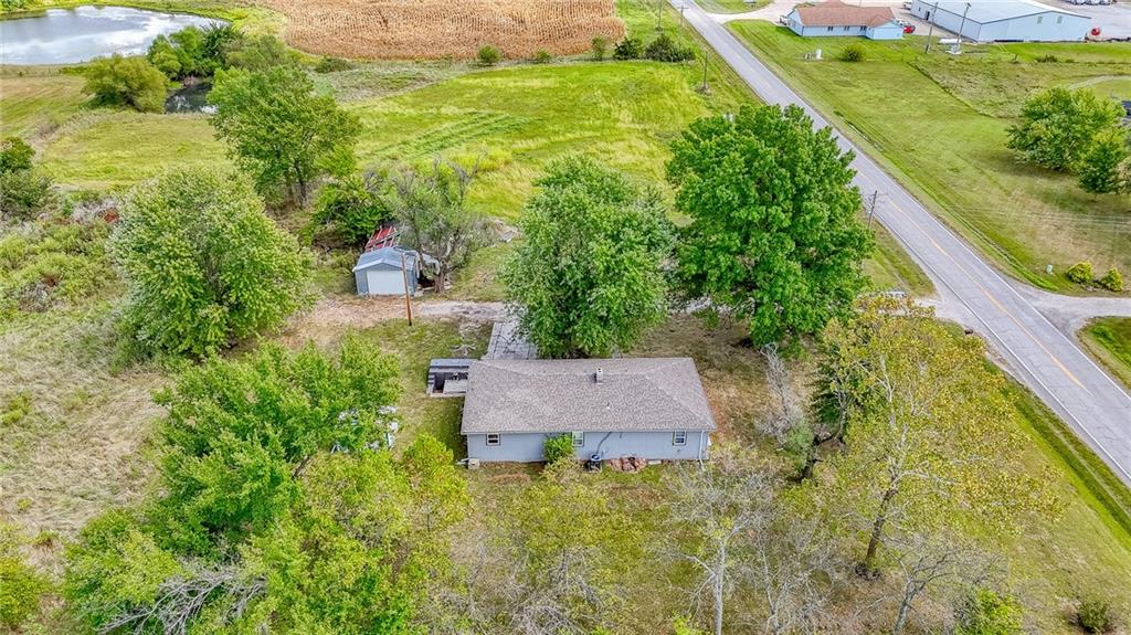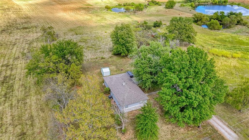 This charming 3 bedroom, 1 bath home is move-in ready and beautifully updated throughout. Fully remodeled in 2022, it features new kitchen cabinets, granite countertops, and a stylish tiled bathroom, along with a new roof, windows, heating, and cooling system for worry-free living. Situated on 3.8 acres of blacktop frontage, this property offers the perfect blend of comfort and country living. Enjoy the peaceful setting with a small pond, mature trees, and the added safety of a storm shelter—all just 7 minutes from town! Don’t miss out on this rare find with modern upgrades and room to roam.
