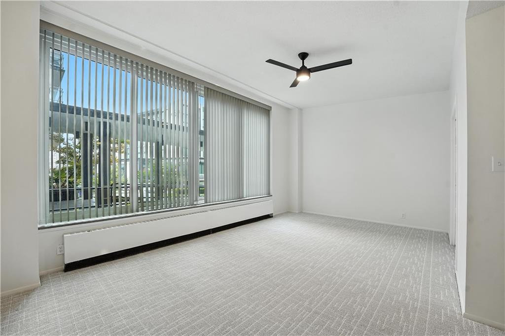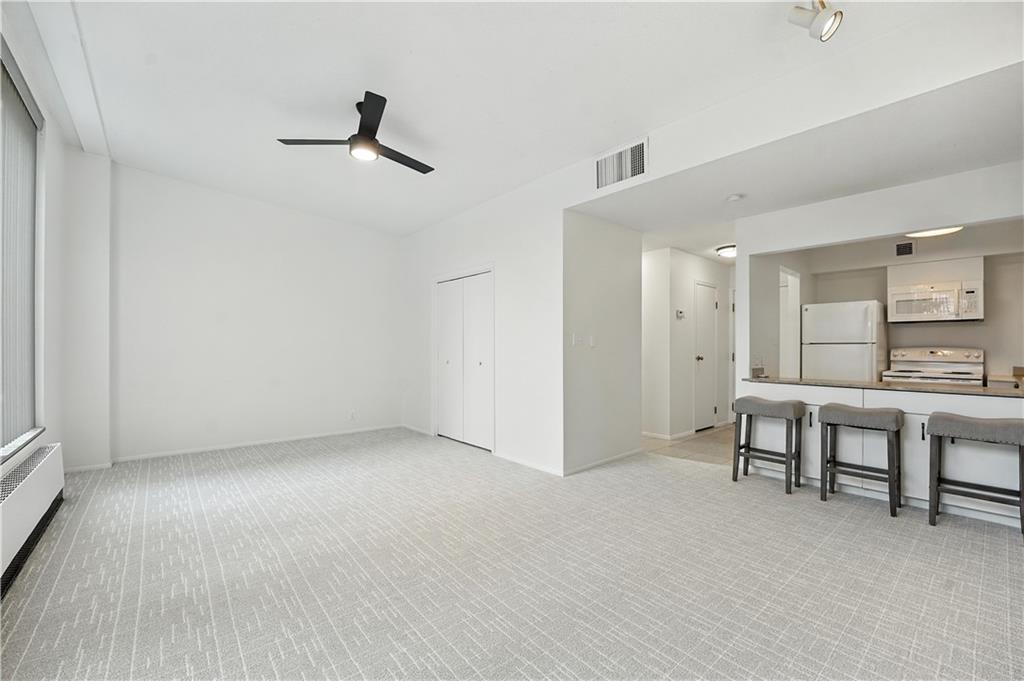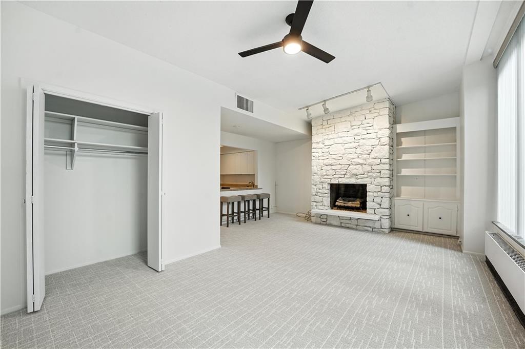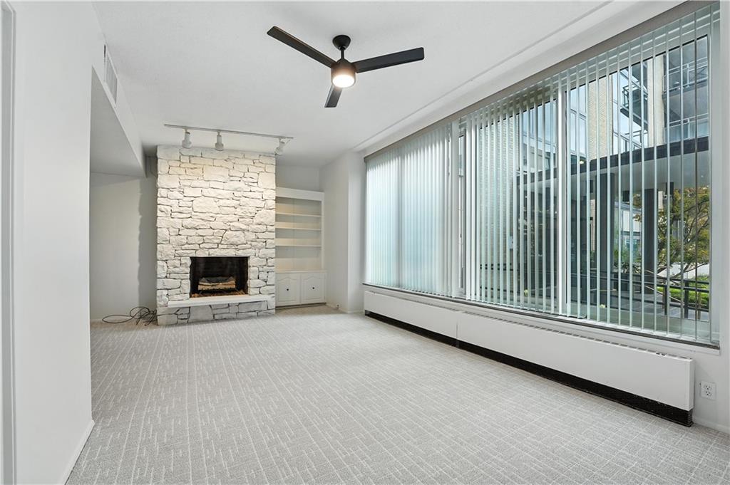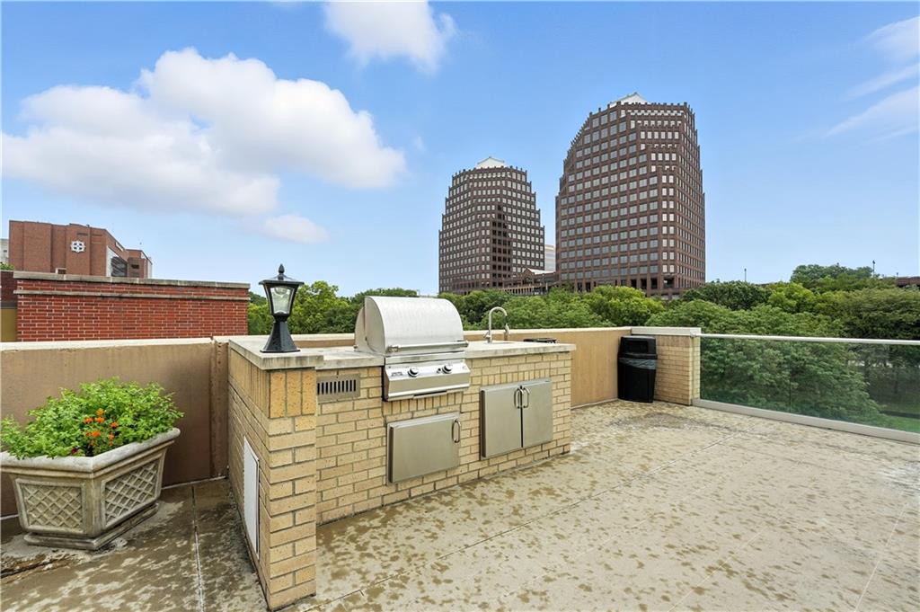 Live in the Heart of the Plaza! This is one of the only condos in the building with vaulted 9 ft tall ceilings. It offers a rare opportunity to move right in and start enjoying all that Kansas City has to offer just steps from shopping, dining, parks, and the upcoming streetcar extension. Brand new carpet runs throughout the unit, complemented by tiled kitchen floors and backsplash, a dishwasher, refrigerator, microwave, and oven/range. The spacious studio features large windows that fill the room with natural light and has all new light fixtures from Wilson Lighting throughout. The oversized front closet will fit all your coats with plenty of space to double as a pantry. The HOA fees are one of the lowest in the building and INCLUDES HEATING AND COOLING, water, in HOA fees and has a secured garage space and dedicated storage. The building has undergone multi-million dollar renovations, including a stunning lobby, updated exterior, and refreshed common areas all monitored by a friendly 24/7 front desk staff. Residents enjoy two community lounges, a fitness center, large laundry facility with new machines, and a rooftop deck overlooking Mill Creek Park. Just one block from Mill Creek Park and St. Luke's Hospital, this unbeatable location offers a vibrant, low-maintenance lifestyle in the heart of KC. The parking assessment has been PAID IN FULL.