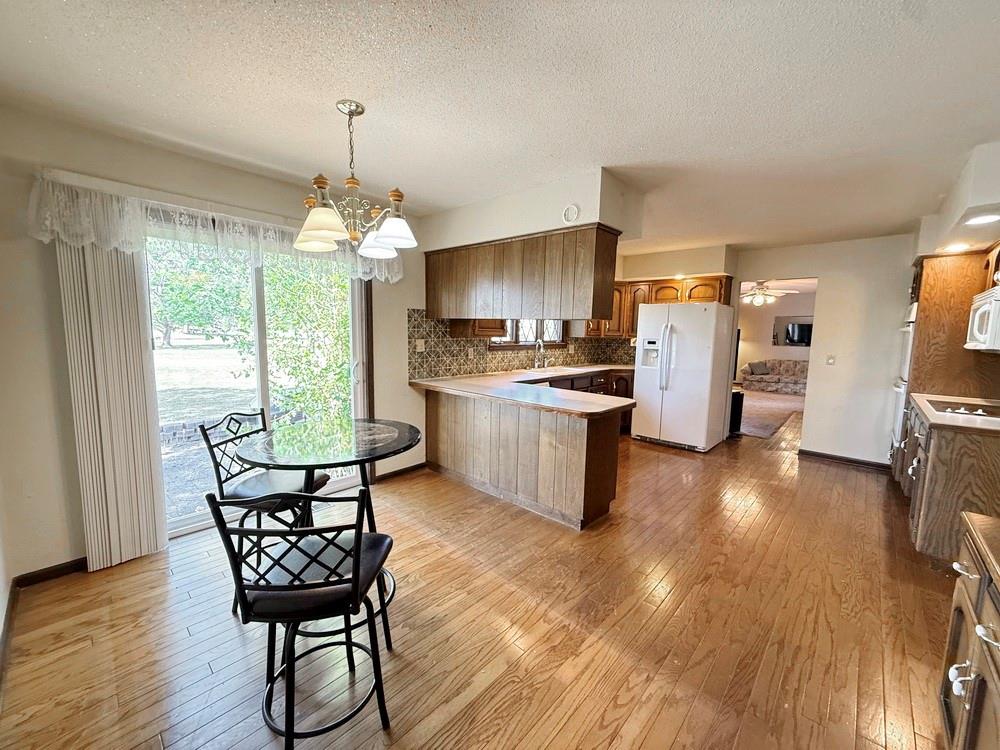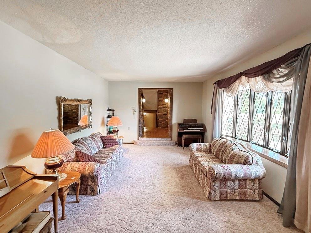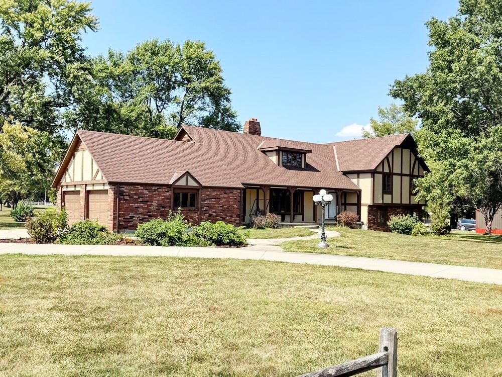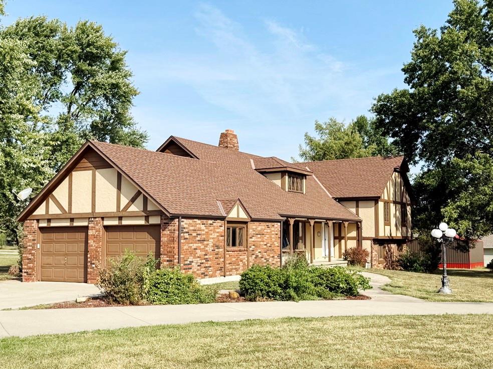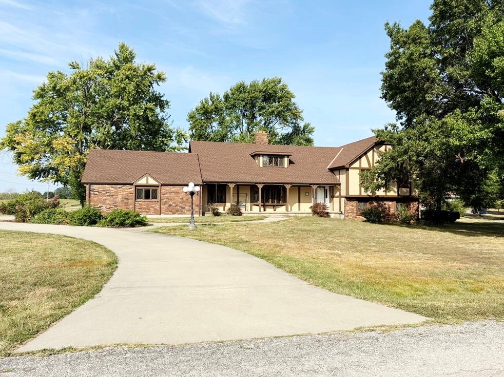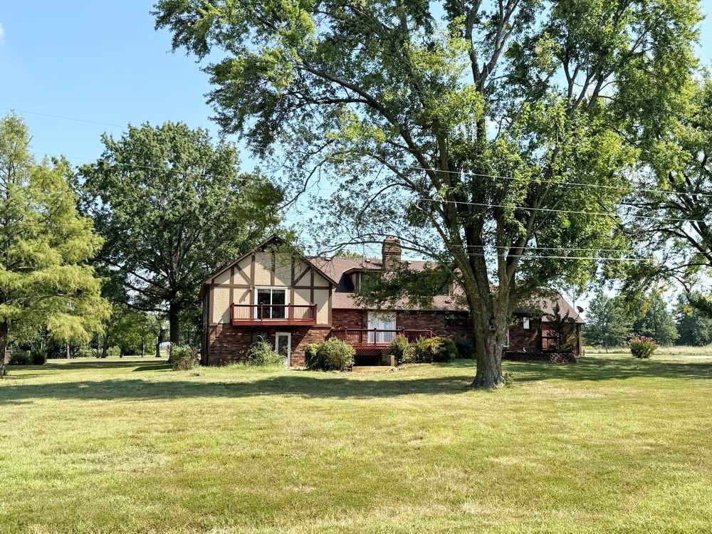 Spacious Tudor-Style Home on 1.6 Acres – Just Outside of Town Need Space---Look no further!!! This 6-bedroom, 3.5-bath Tudor home offers nearly 4,000 sq. ft. of finished living space plus 1,160 sq ft of unfinished basement. The separation of floors provides bigger rooms and better privacy for occupants. The home offers, not 1, not 2, not 3, but FOUR separate living rooms including the large rec room with small kitchenette on the lower level. The kitchen, with appliances included, features an eat-in breakfast space in addition to the formal dining area. These rooms provide the opportunity to spread out and host large gatherings of family or friends. The master suite showcases a high, cathedral ceiling with beams, 2 closets (one walk-in), a private balcony, and ensuite bath. Additional bedrooms are all generously sized, offering comfort and flexibility for guests, hobbies, or work-from-home office space. The full, unfinished, walk-out basement provides great storage & shelter. A 2-car attached garage & paved circle drive make egress and ingress easy and convenient. Set on 1.6 acres along a paved road, the property has a large yard with mature landscaping. It is located just outside of the city limits, allowing the homeowner to enjoy the peace of country-style living while being just minutes from the conveniences of town. While the home is move-in ready, it also offers an opportunity for updates to make it your own. With its size, layout, and location just outside of town, this 1-owner home is full of potential and ready for its next chapter. Call soon to schedule a showing on this unique property.