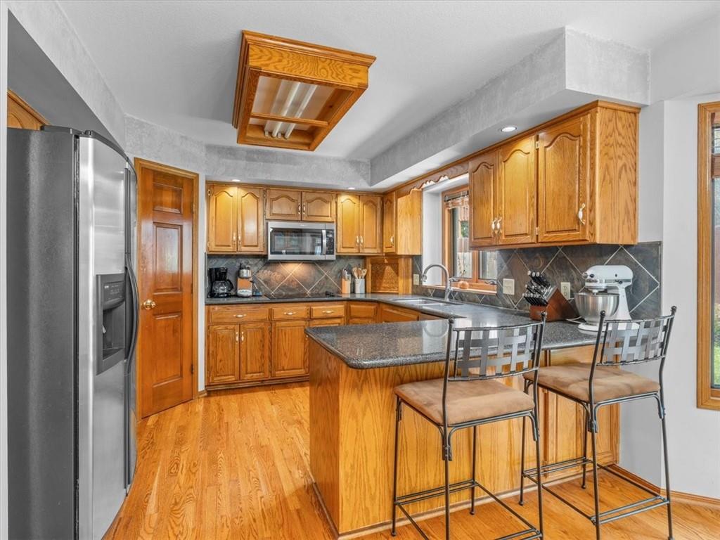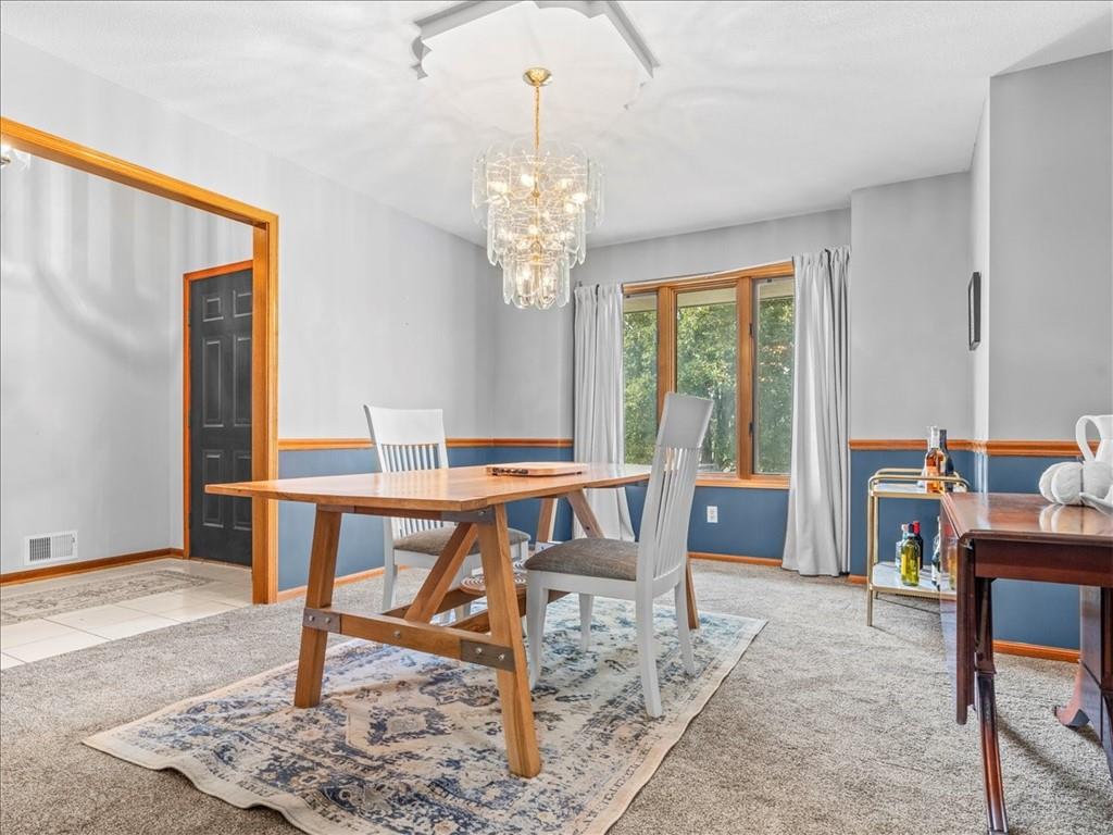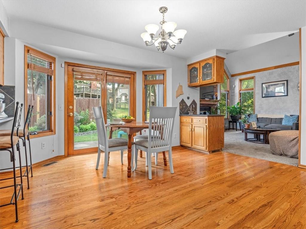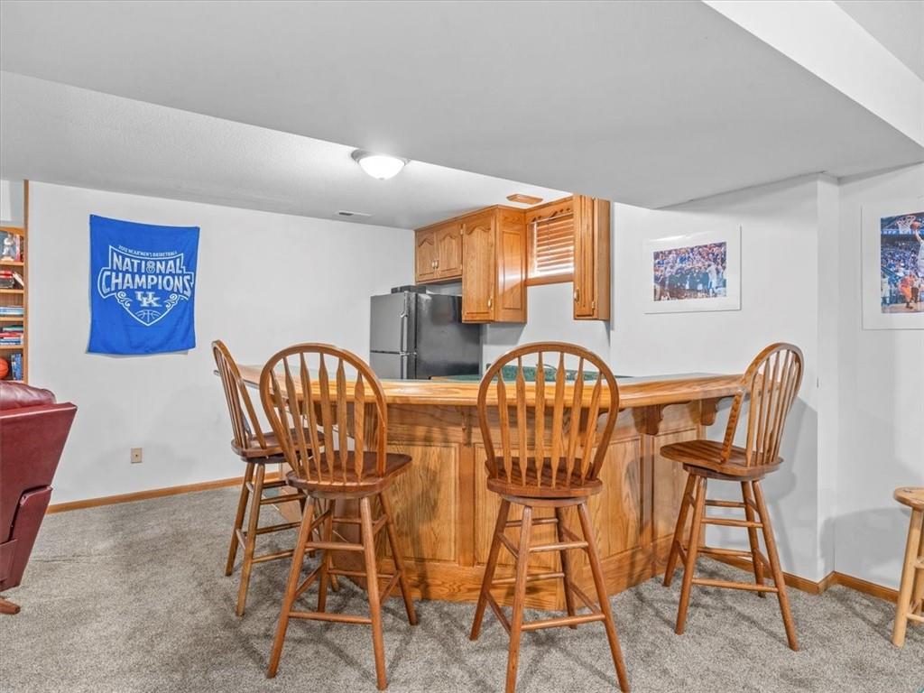 This beautifully maintained 1.5-story home offers an abundance of space and flexibility in a sought after neighborhood. The main floor boasts a warm living room with a brick fireplace, a formal dining room, and a spacious kitchen with a breakfast area. You’ll love the oversized primary suite with a tray ceiling, a spa-like bathroom, plus the convenience of main-floor laundry, a half bath, and a 2 car garage. Upstairs, find three comfortable bedrooms and a full bath, while the finished basement is made for fun - featuring a large rec room, full bath, wet bar, and a non-conforming bedroom or exercise room, along with plenty of storage. A brand new roof, security system, and all electric living finish off the amazing features of this home. With multiple living areas and thoughtful details throughout, this home is perfect for both entertaining and everyday living.