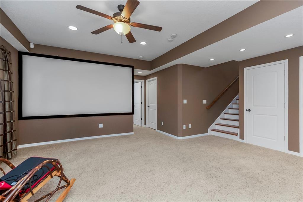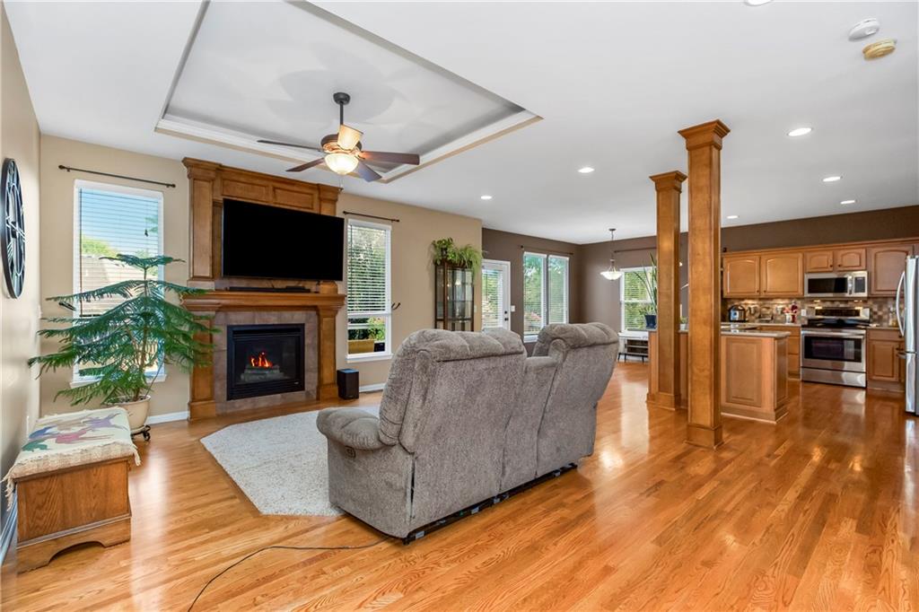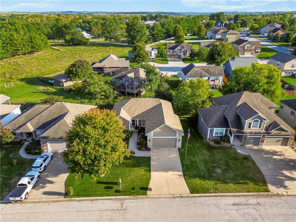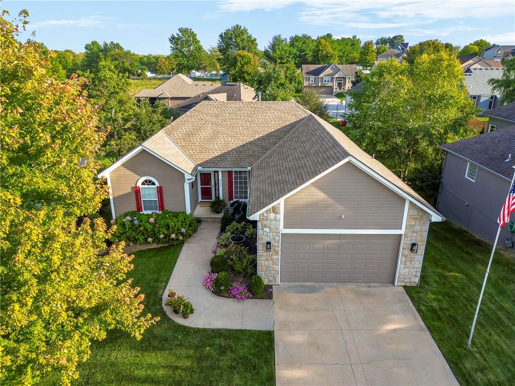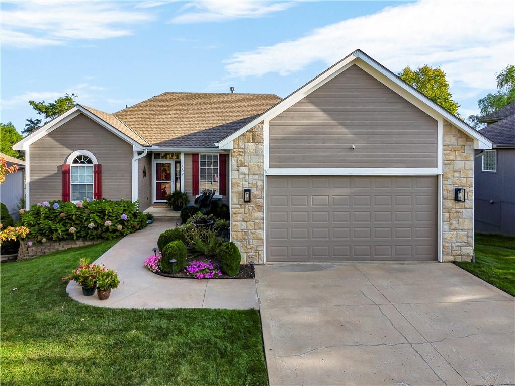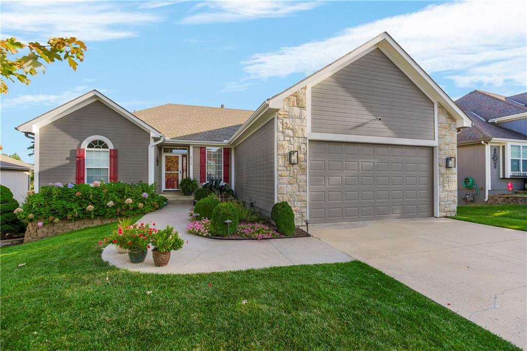 ALL main level living in the coveted Rosewood Hills Subdivision in Grain Valley! This beautiful and functional floor plan features an open concept kitchen and great room area that’s warm and inviting. Cozy up to the fireplace and enjoy the ambiance with simply a flip of a switch on chilly nights. Don’t like lugging laundry up and down the stairs? You’re in luck as the laundry room is on the main level just right off the kitchen for convenience! The sizeable primary bedroom features a walk in closet that will surely accommodate your needs and also has a built in desk or make up vanity. The two additional bedrooms are in the basement along with a full bathroom with custom tiled shower. The basement also features a non-conforming 4th bedroom to utilize as an office, flex space, OR additional bonus living space. Enjoy entertaining? The lower level features a media room with a projector to watch movies with family and friends. Step out to the custom stamped concrete patio to the peaceful and landscaped backyard for BBQ’s. You don't want to miss out on this pristine and well kept home! ALL major expenses have been taken care of: NEW roof 2020, HVAC 2020, hot water heater 2020, new deck installed in 2020 and stained in 2023, and gutters installed in 2022. A $5,000 seller concession is available with an acceptable offer to utilize as you wish= closing costs, loan rate buy down, price reduction, or carpet allowance= YOU choose what's best for YOU! Come BUY today!