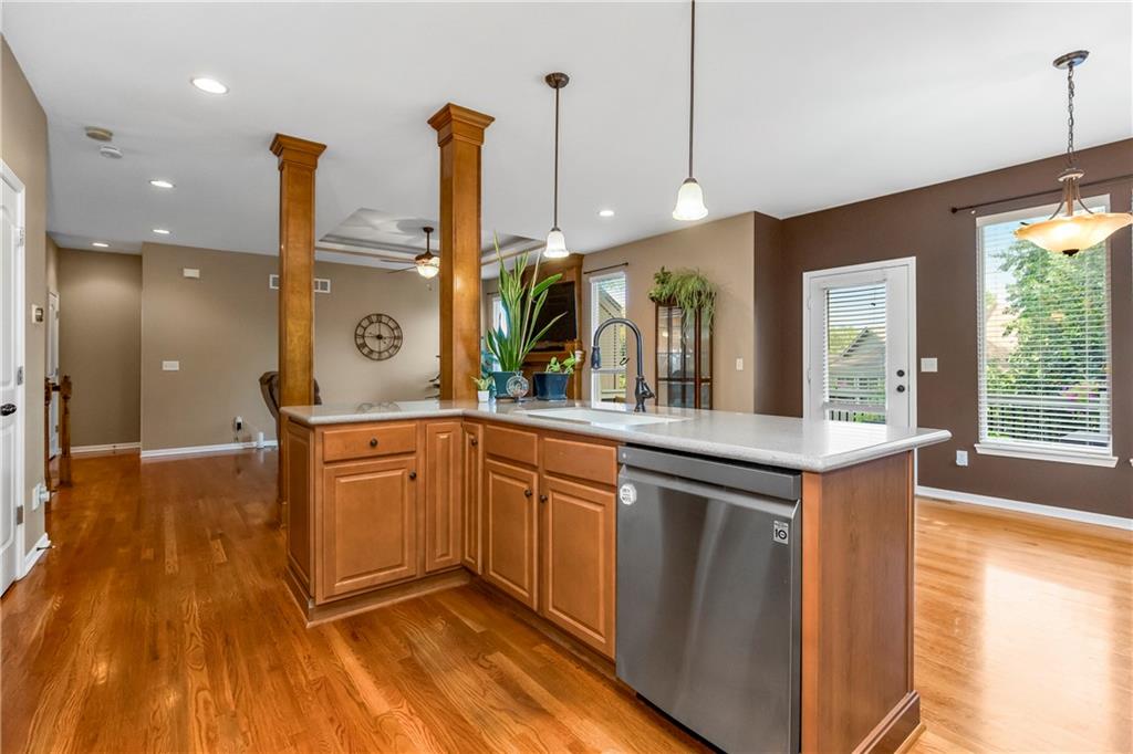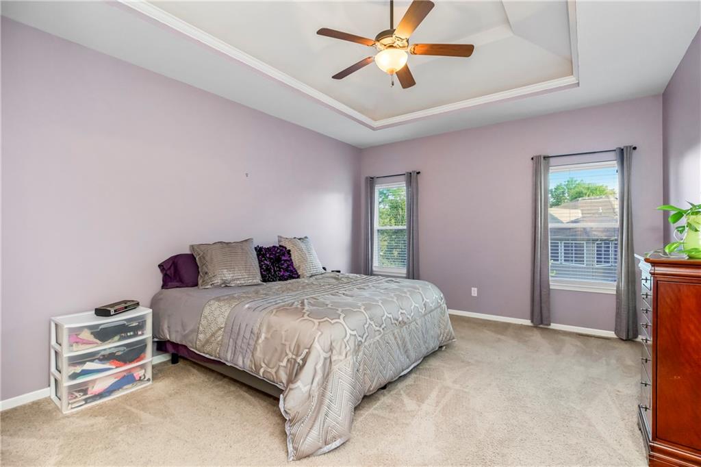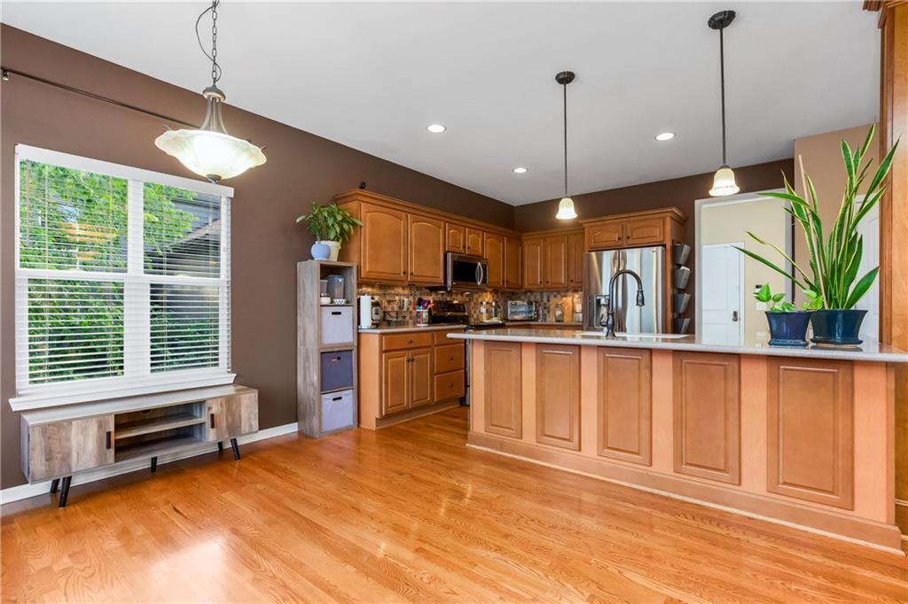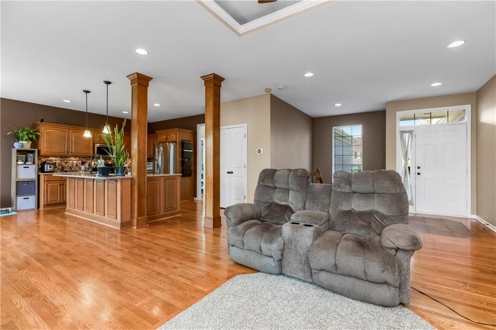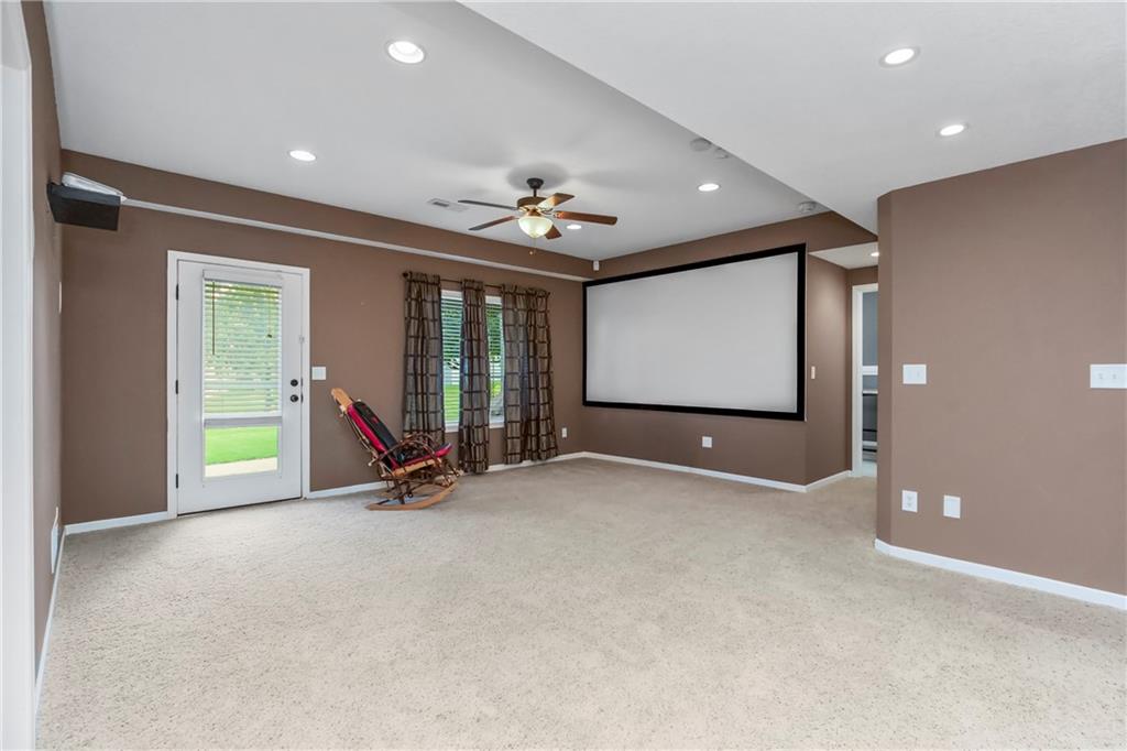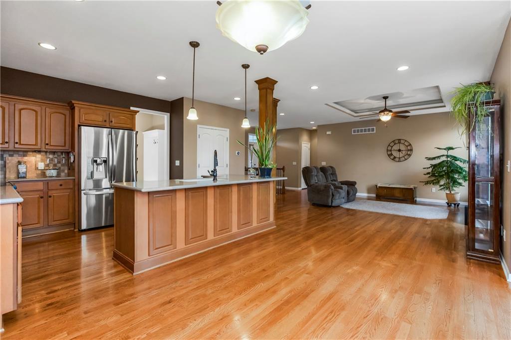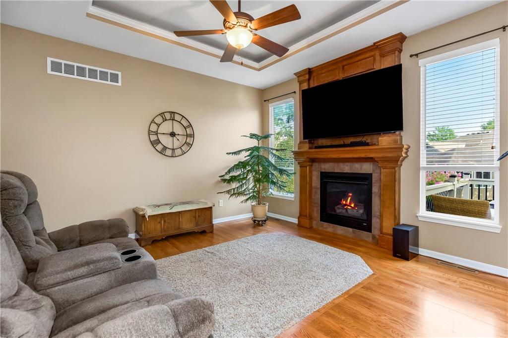 ALL main level living in the coveted Rosewood Hills Subdivision in Grain Valley! This beautiful and functional floor plan features an open concept kitchen and great room area that’s warm and inviting. Cozy up to the fireplace and enjoy the ambiance with simply a flip of a switch on chilly nights. Don’t like lugging laundry up and down the stairs? You’re in luck as the laundry room is on the main level just right off the kitchen for convenience! The sizeable primary bedroom features a walk in closet that will surely accommodate your needs and also has a built in desk or make up vanity. The two additional bedrooms are in the basement along with a full bathroom with custom tiled shower. The basement also features a non-conforming 4th bedroom to utilize as an office, flex space, OR additional bonus living space. Enjoy entertaining? The lower level features a media room with a projector to watch movies with family and friends. Step out to the custom stamped concrete patio to the peaceful and landscaped backyard for BBQ’s. You don't want to miss out on this pristine and well kept home! ALL major expenses have been taken care of: NEW roof 2020, HVAC 2020, hot water heater 2020, new deck installed in 2020 and stained in 2023, and gutters installed in 2022. A $5,000 seller concession is available with an acceptable offer to utilize as you wish= closing costs, loan rate buy down, price reduction, or carpet allowance= YOU choose what's best for YOU! Come BUY today!