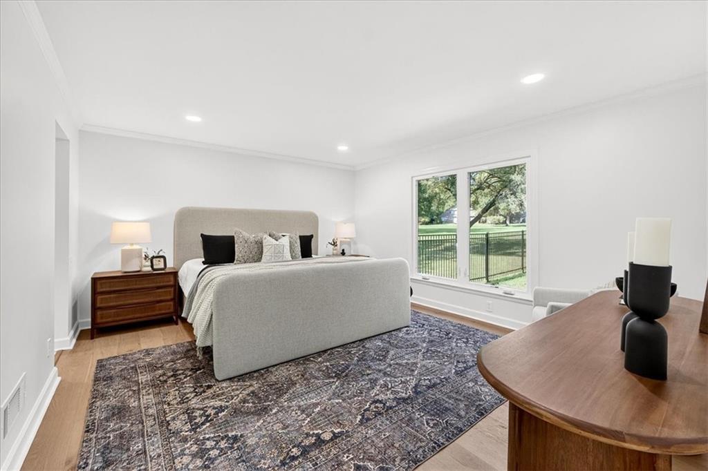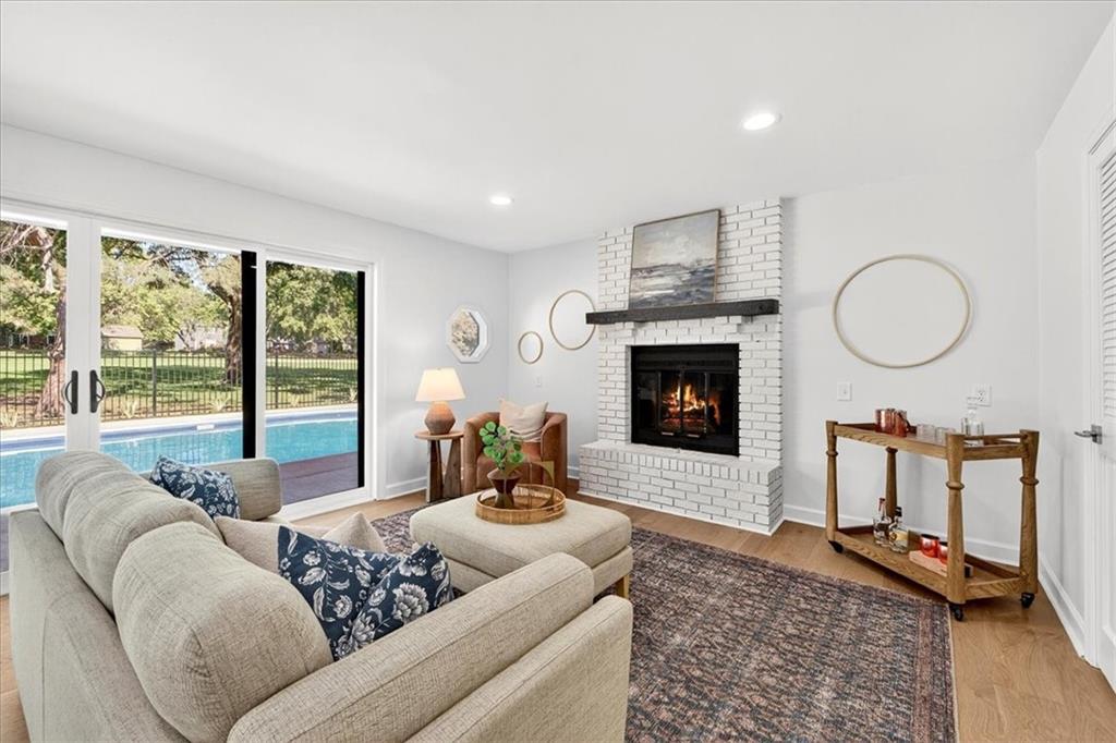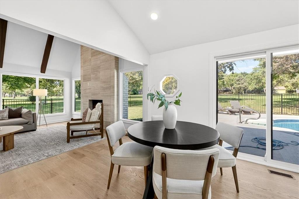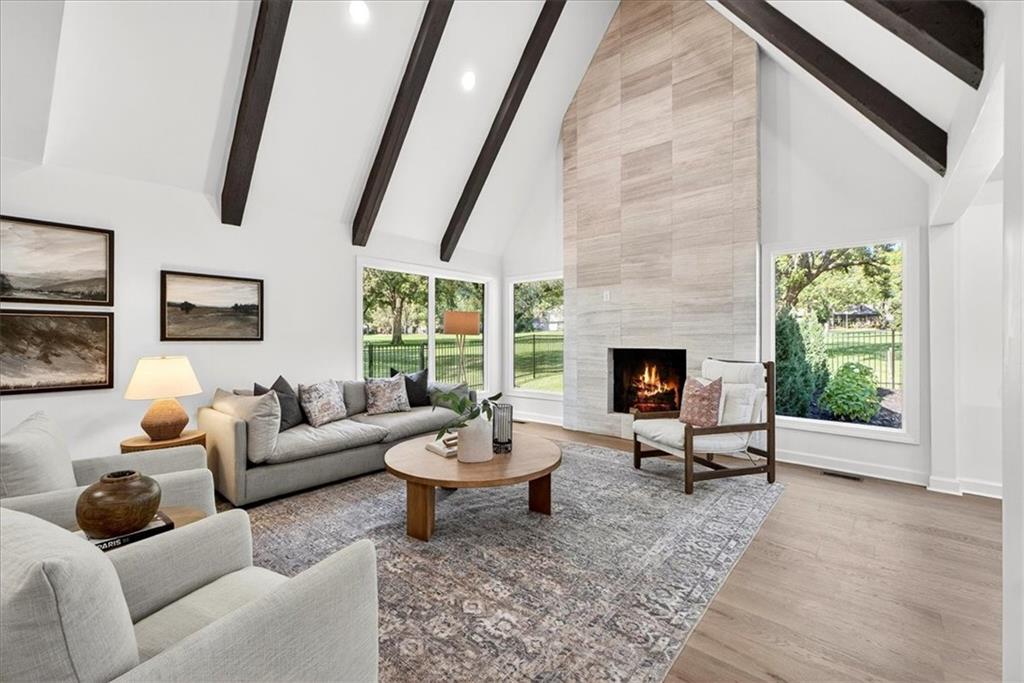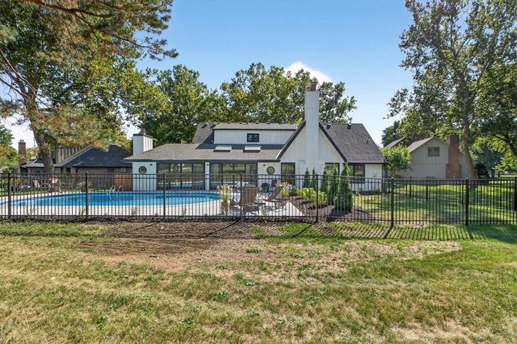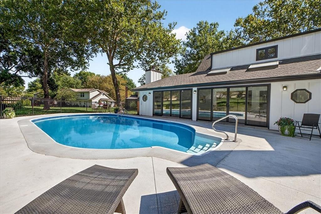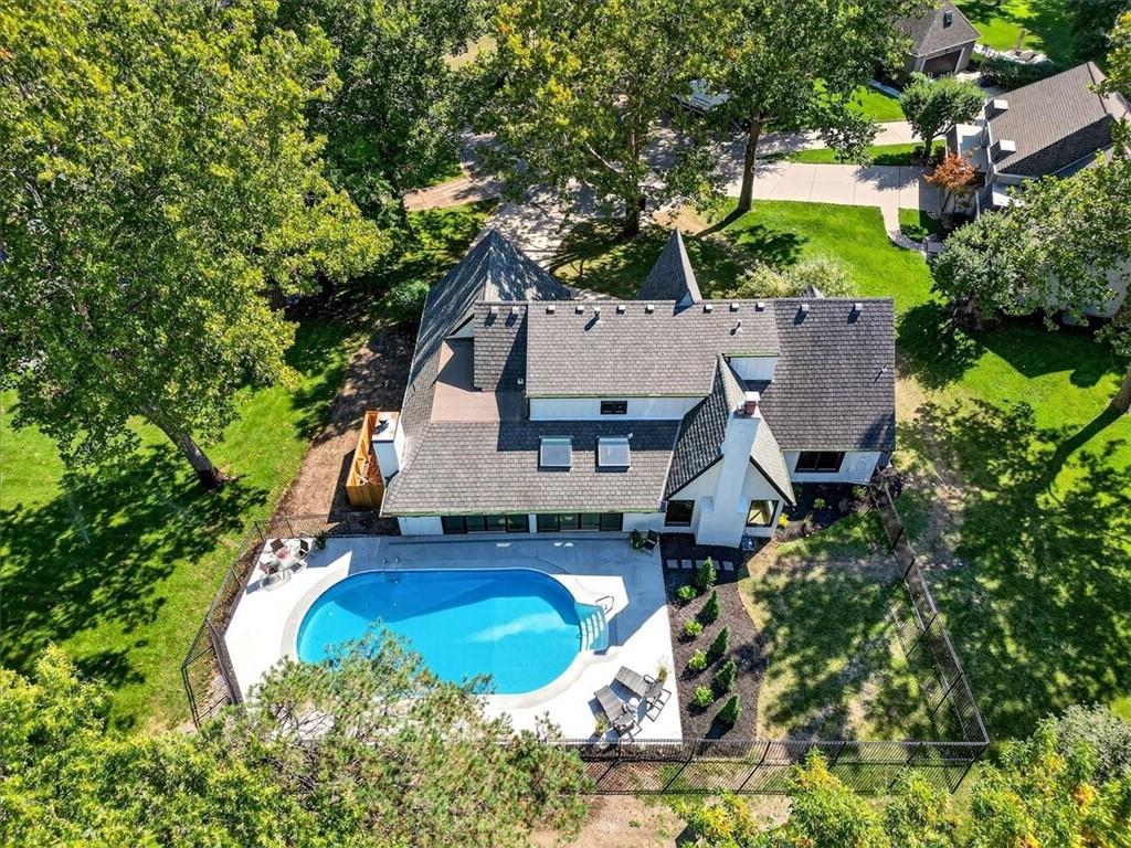 Hidden away on one of Leawood South's most coveted and private cul-de-sacs, this fully renovated residence with a sparkling pool sits on what is truly one of the best streets in the neighborhood. Perfectly positioned on the 9th hole of the Country Club of Leawood, this 4-bedroom, 3.5-bath home offers an unmatched combination of privacy, elegance, and resort-style living. Every detail has been elevated with designer finishes and modern upgrades, including brand-new windows, HVAC, and water heater. The main level features soaring ceilings, a dramatic floor-to-ceiling chiseled marble fireplace, and dual 7 foot sliding doors that frame spectacular golf course views while opening seamlessly to the pool and patio. A modern kitchen with custom cabinetry and a spacious mudroom with built-ins bring both sophistication and convenience. The primary suite captures peaceful views and features a spa-like marble walk-in shower and an expansive walk-in closet. The finished lower level extends the home's living space with a cozy fireplace-warmed rec room, a 5th non-conforming bedroom, exercise room, bonus room, and full bath. Outdoors, the newly poured concrete patio, refreshed landscaping, and sparkling pool create a private retreat overlooking manicured fairways ideal for both entertaining and serene relaxation. Located within the award-winning Blue Valley School District and minutes from upscale shopping and dining, this Leawood South masterpiece offers a rare opportunity to own a hidden gem on the golf course's most desirable street.