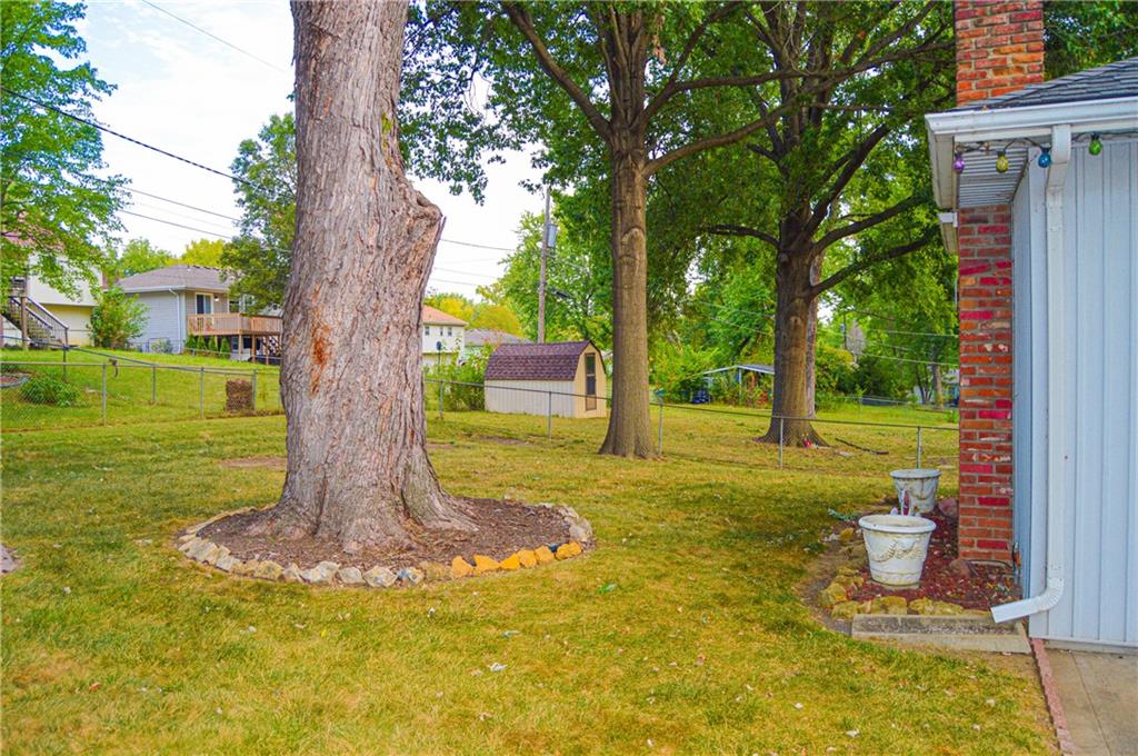 PRICE HAS BEEN REDUCED!!!! for this well maintained raised ranch home that is located just off N. Oak Trafficway close to many shopping and eatery locations. 3BR's and 2Baths with an exceptional great room with fireplace. And, solid wood bookcases on both sides. The kitchen features plenty of cabinets and an eat-in area. There is a separate dining area and large living room. Downstairs there is plenty of storage and work areas. The 2 car garage is very spacious with a number of built in cabinets. The back yard is fully fenced, giving you a great area for your children and pets to safely play, and beautiful trees with lots of shade and a serene swing for two!! The neighborhood is very quiet and friendly.
