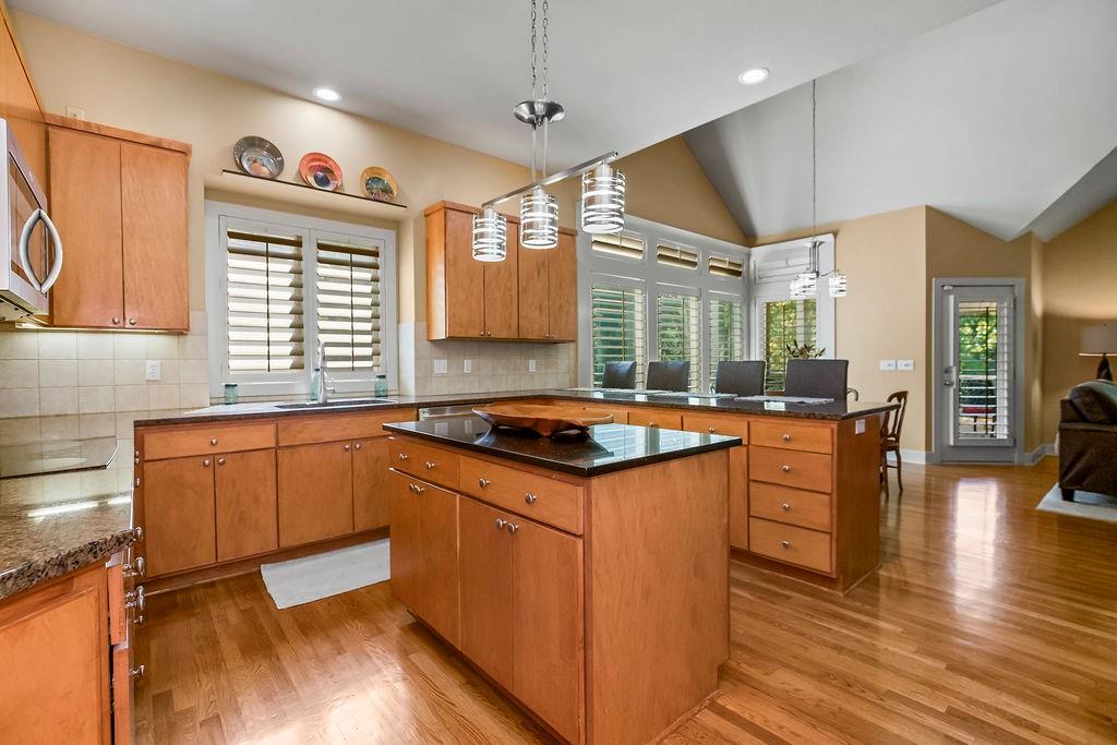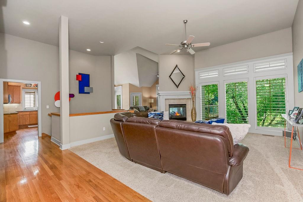 Nestled in the desirable Embassy Park neighborhood, this stunning 3-bedroom, 2.1-bathroom home is a true gem in the Park Hill School District. Located on a peaceful, quiet street, the home offers a perfect blend of privacy and convenience, with easy access to nearby amenities. Designed with a popular reverse floor plan, the main level features spacious living areas including an office with French doors, a half bath, and a large, open-concept kitchen. The chef's kitchen boasts an island, granite countertops, a pantry, and ample cabinet space—ideal for both cooking and entertaining. Adjacent to the kitchen is a cozy hearth room, perfect for relaxing, as well as a spacious living room that offers plenty of room for family gatherings. Plantation shutters are featured throughout the home, adding both style and functionality. The large, private master suite is also on the main level, offering a peaceful retreat with a generous layout and great closet space. From the dining area, step out onto a large covered Trex deck, ideal for enjoying quiet mornings or evenings, overlooking a serene, treed greenspace—creating a peaceful and tranquil outdoor living experience. Downstairs, the finished walk-out lower level offers an expansive entertaining area complete with a wet bar, two additional guest bedrooms, and a full bathroom. There's also an abundance of storage space to accommodate all of your needs. With plantation shutters, tons of storage, a spacious layout, and a prime location that backs to greenspace, this home is truly one you won’t want to miss.