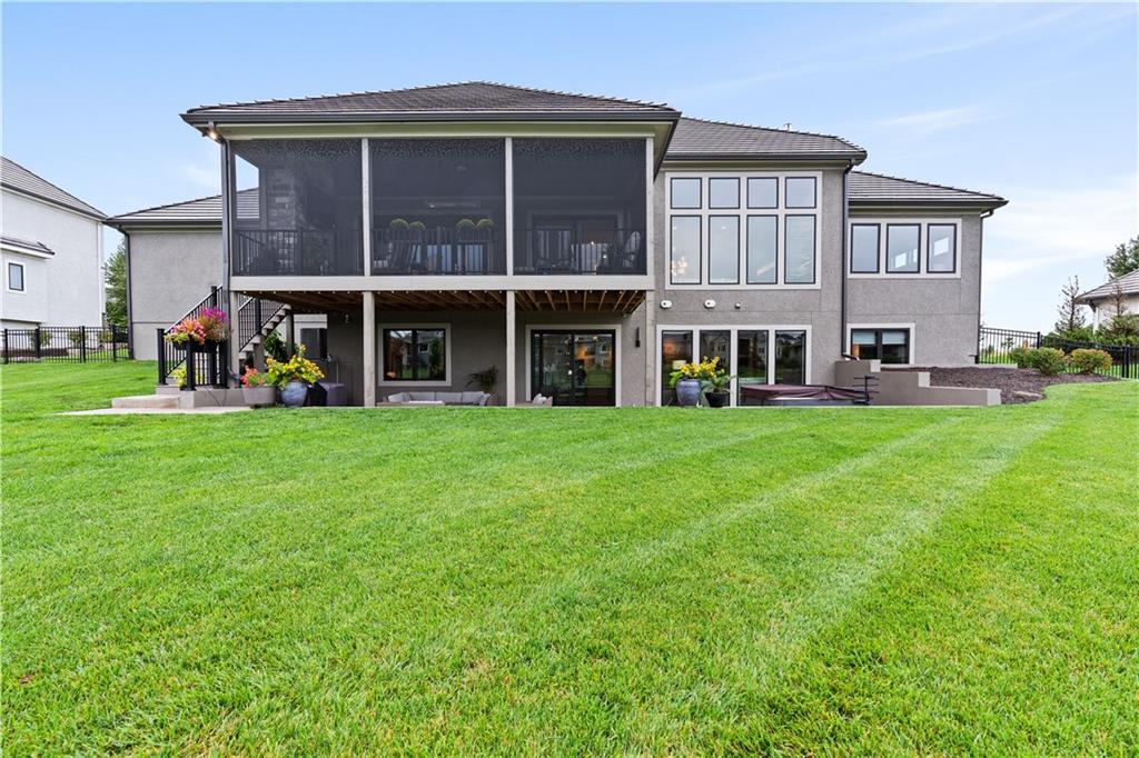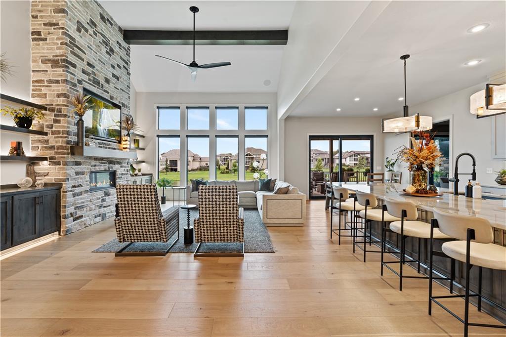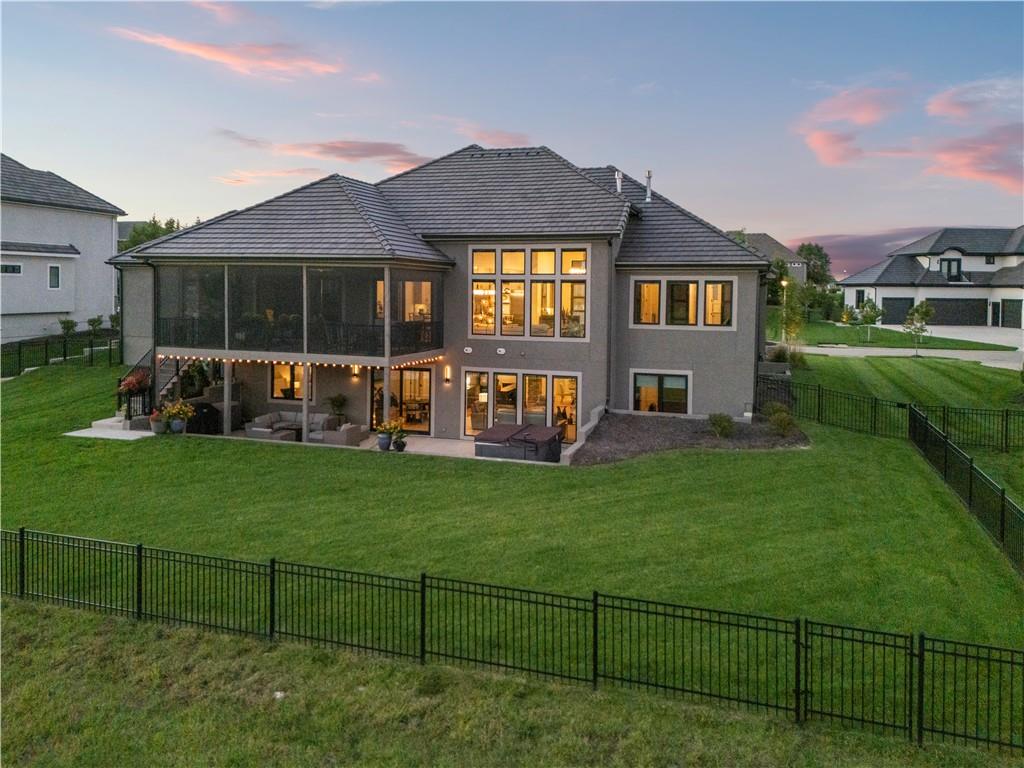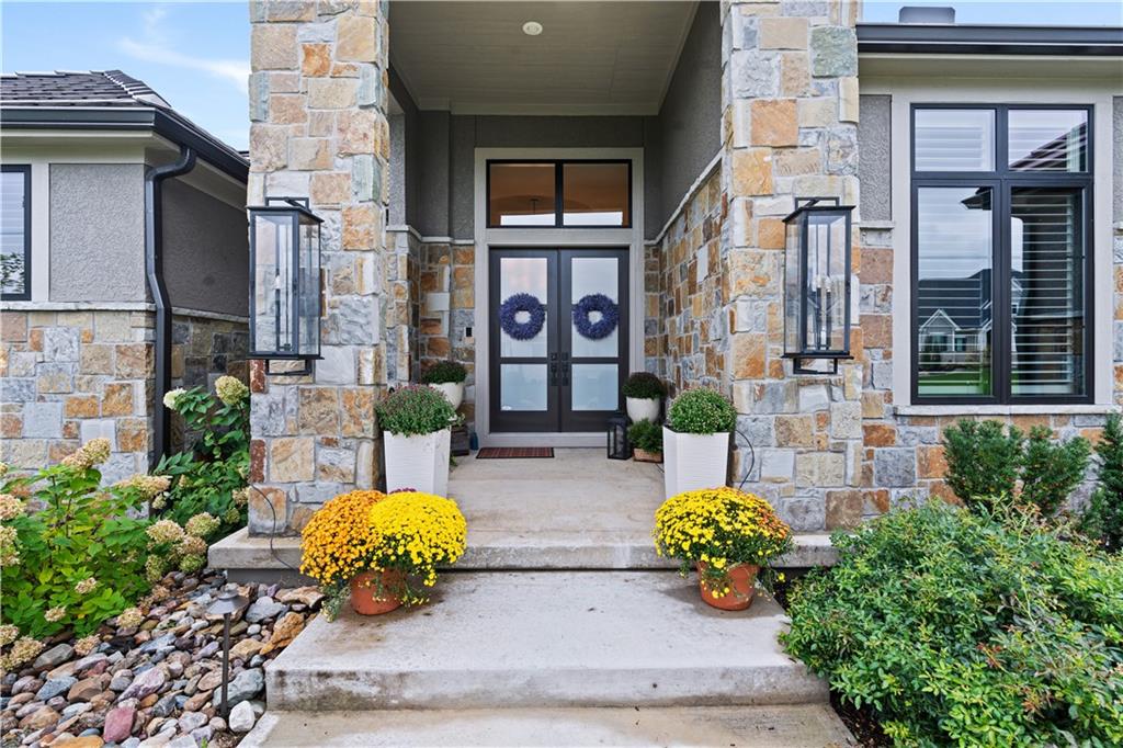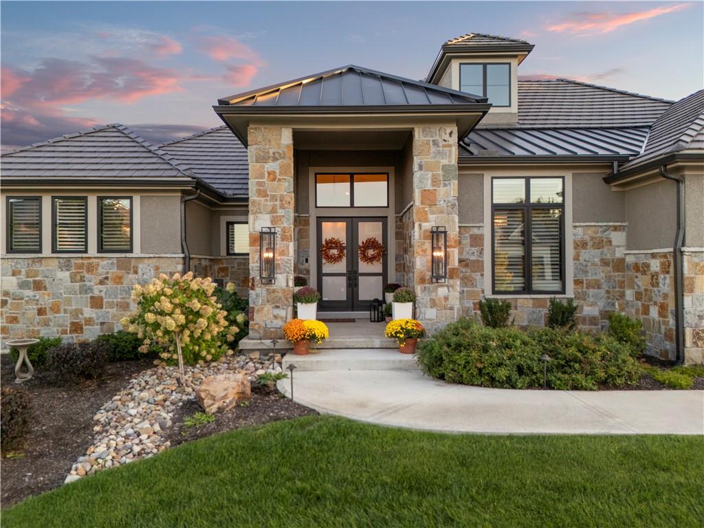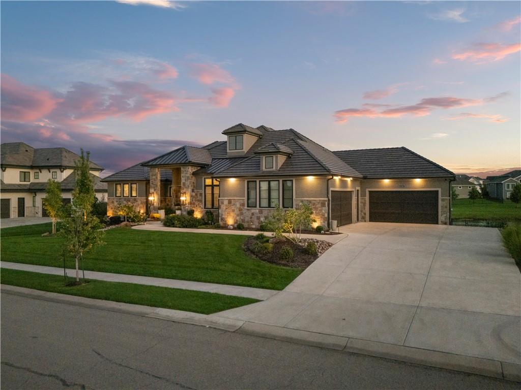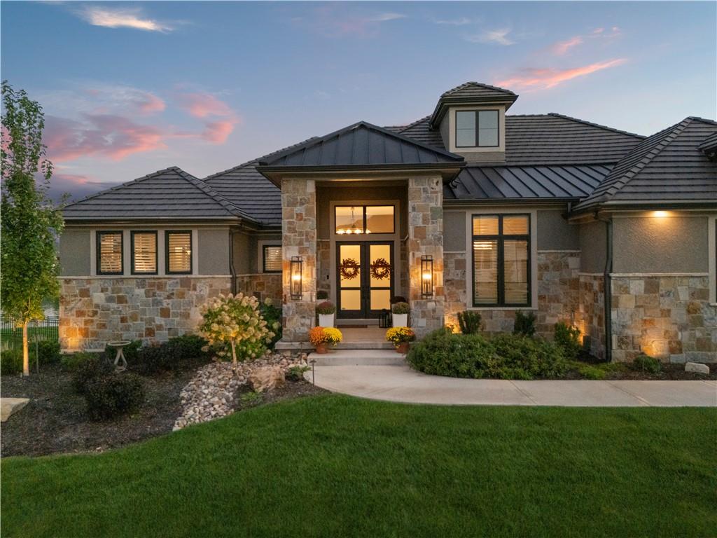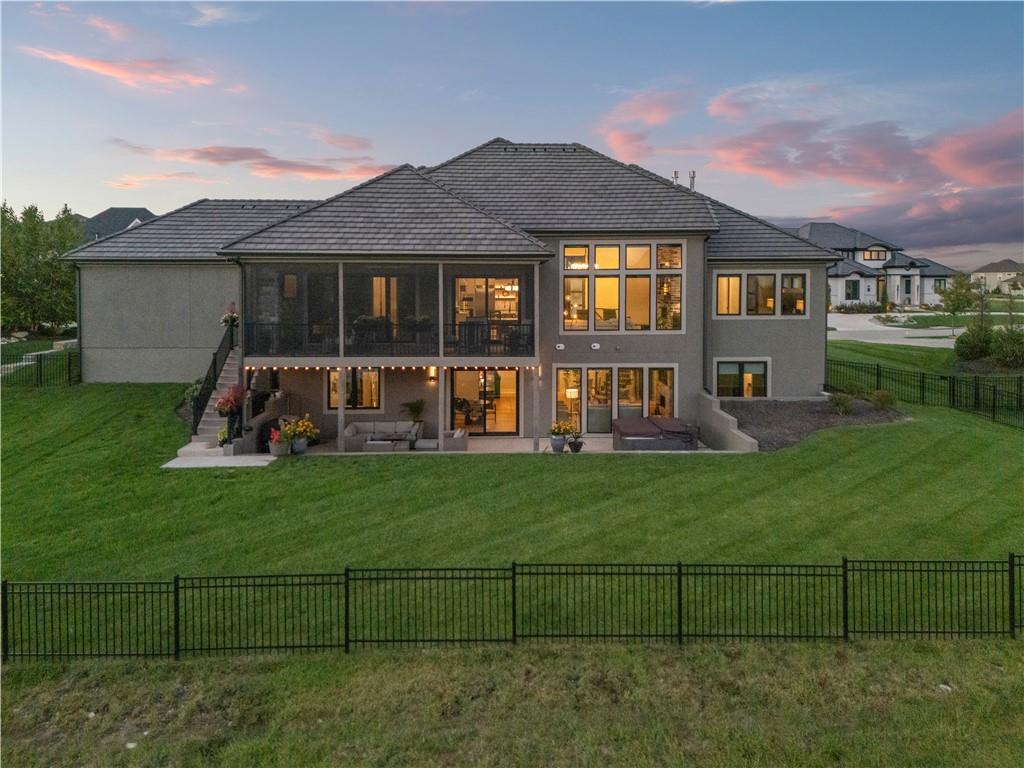 Poised within the prestigious Blue Valley School District, this award-winning Don Julian custom estate embodies the pinnacle of luxury living. Overlooking serene waters and dancing fountains, the residence offers a rare harmony of architectural excellence and natural beauty. The tranquil setting is best savored from the expansive main-level heated covered deck that connects the stunning four-seasons room. Every detail within reflects masterful craftsmanship and thoughtful design. With architectural LED lighting both interior and exterior, highlights the home's contemporary elegance. On the main level, the entrance meets you with glowing hardwoods that flow throughout both levels. The gourmet kitchen, appointed with Wolf appliances and luxurious finishes, anchors the open-concept living area—ideal for both intimate gatherings and grand entertaining. In the great room, remote-controlled window treatments reveal breathtaking lake views framed by cascading fountains.A graceful staircase leads to the lower level, designed as a private retreat and entertainment haven. Here, three ensuite bedrooms with walk-in closets complement an elegant wet bar, family recreation space, and a private music room—perfectly suited to transform into a wine cellar or recording studio.The unfinished space below the suspended garage offers endless possibilities like a home theater. Basement walkout access extends the living experience outdoors connecting to the patio and water views. Advanced home technology with a dedicated network hub with LUXUL gigabit switches, a PANAMAX MR4000 system, pre-wired for security system and in-ceiling Sonos speakers that encompasses the home in sound on both levels and the master bedroom.Enjoy year round energy efficiency with upgraded insulation and two laundry rooms for time efficiency. Blending timeless sophistication with modern innovation, this remarkable estate is more than a home—it is a statement of artistry and lifestyle in Terrybrook Farms