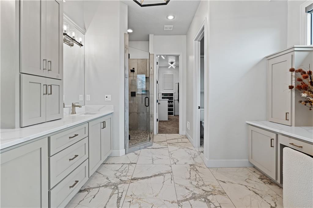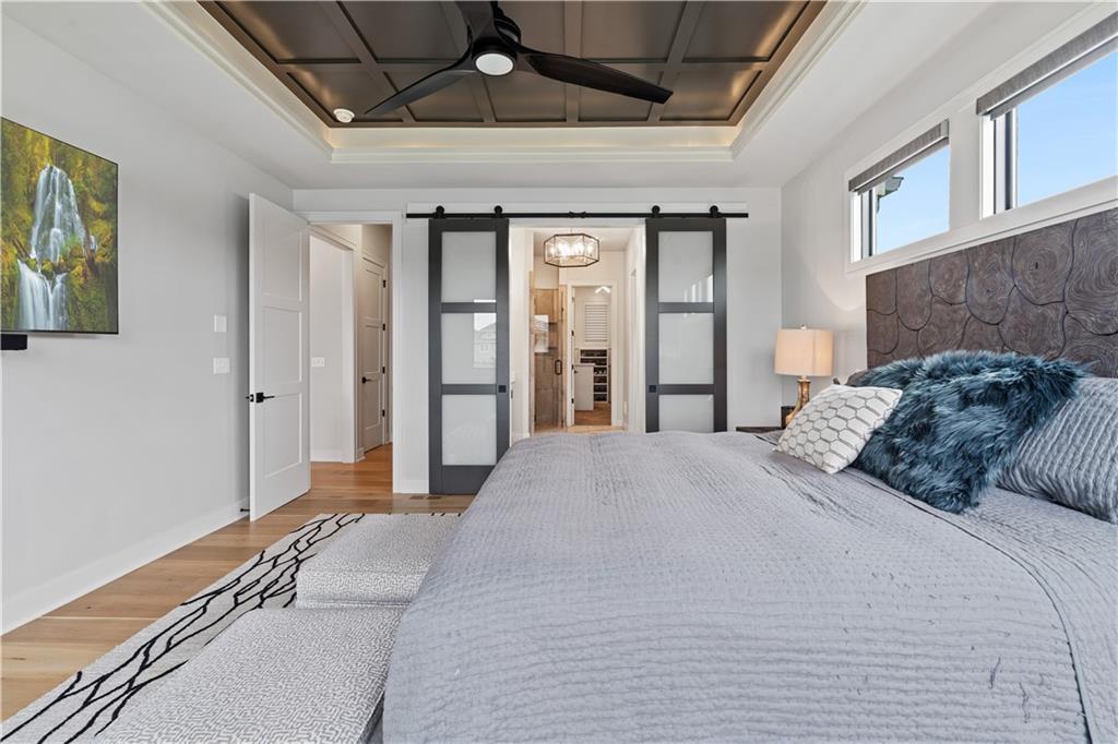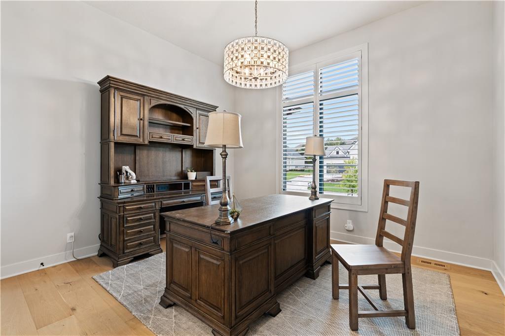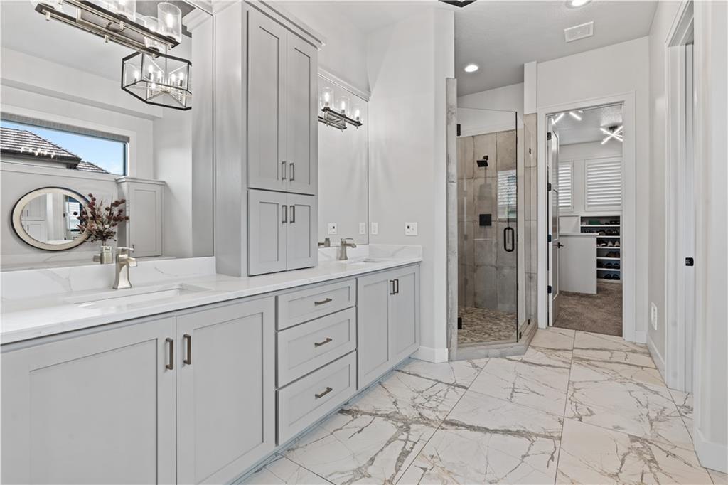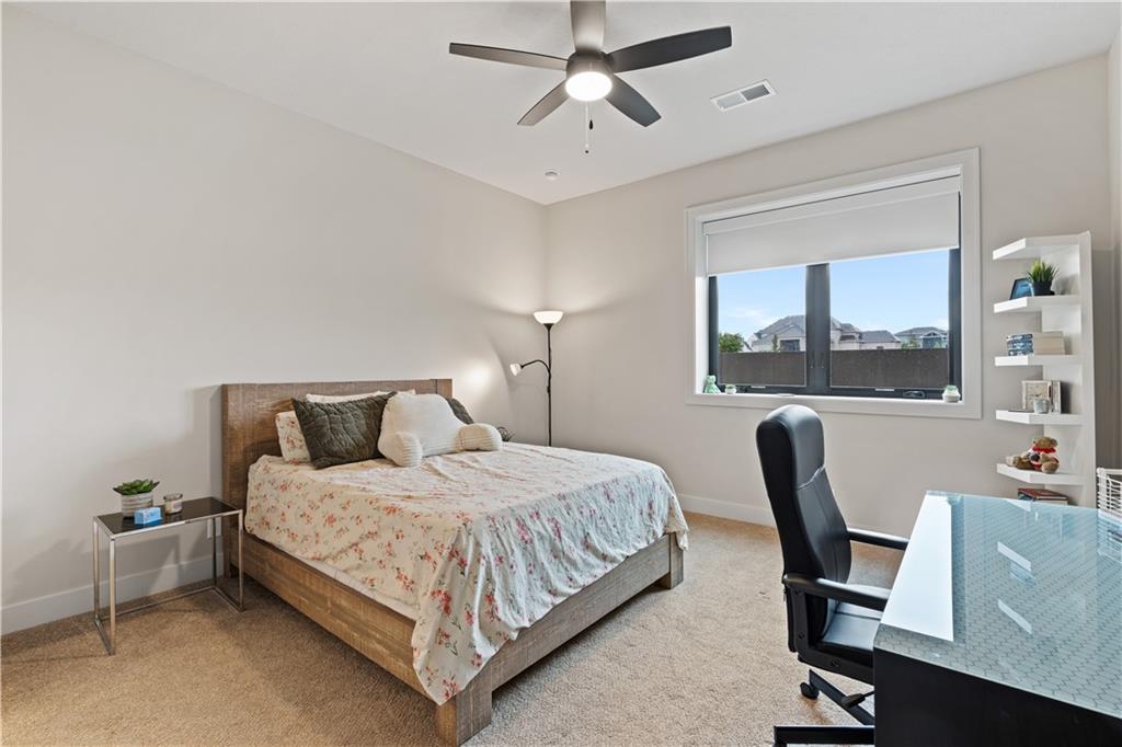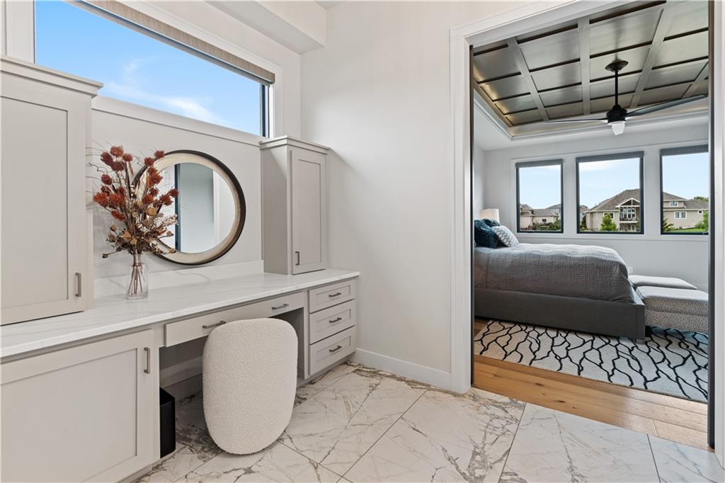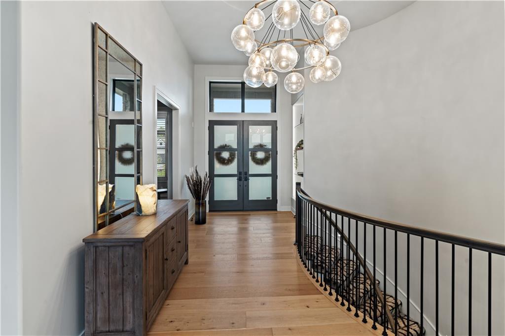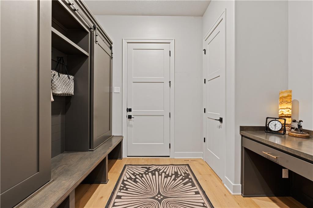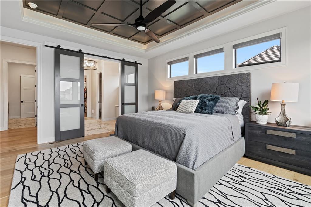 Poised within the prestigious Blue Valley School District, this award-winning Don Julian custom estate embodies the pinnacle of luxury living. Overlooking serene waters and dancing fountains, the residence offers a rare harmony of architectural excellence and natural beauty. The tranquil setting is best savored from the expansive main-level heated covered deck that connects the stunning four-seasons room. Every detail within reflects masterful craftsmanship and thoughtful design. With architectural LED lighting both interior and exterior, highlights the home's contemporary elegance. On the main level, the entrance meets you with glowing hardwoods that flow throughout both levels. The gourmet kitchen, appointed with Wolf appliances and luxurious finishes, anchors the open-concept living area—ideal for both intimate gatherings and grand entertaining. In the great room, remote-controlled window treatments reveal breathtaking lake views framed by cascading fountains.A graceful staircase leads to the lower level, designed as a private retreat and entertainment haven. Here, three ensuite bedrooms with walk-in closets complement an elegant wet bar, family recreation space, and a private music room—perfectly suited to transform into a wine cellar or recording studio.The unfinished space below the suspended garage offers endless possibilities like a home theater. Basement walkout access extends the living experience outdoors connecting to the patio and water views. Advanced home technology with a dedicated network hub with LUXUL gigabit switches, a PANAMAX MR4000 system, pre-wired for security system and in-ceiling Sonos speakers that encompasses the home in sound on both levels and the master bedroom.Enjoy year round energy efficiency with upgraded insulation and two laundry rooms for time efficiency. Blending timeless sophistication with modern innovation, this remarkable estate is more than a home—it is a statement of artistry and lifestyle in Terrybrook Farms