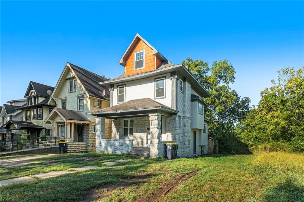 Beautifully renovated and truly turnkey, this five bedroom, two and a half bath home has been completely redone from the studs up. The roof is only 3 years old and the interior boasts natural paint colors, light modern flooring, and stylish fixtures throughout. Enjoy a bright white kitchen with stainless steel appliances, meticulous bathroom tiling, and spacious bedrooms with thoughtful design. A covered front porch is perfect for morning coffee, while the deck and flat backyard-complete with six-foot privacy fence-offer plenty of outdoor living space. Additional storage can be found in the basement. Located in an established neighborhood close to schools, parks, shopping, downtown, and the Country Club Plaza, this home blends modern updates with a price location.