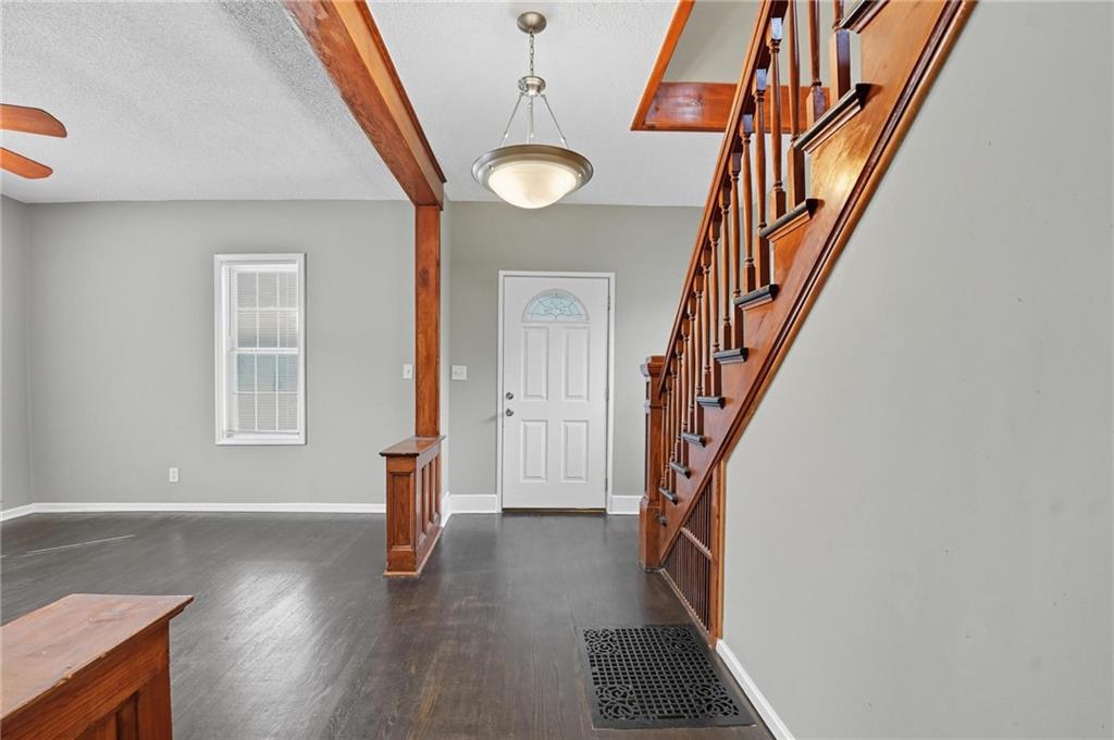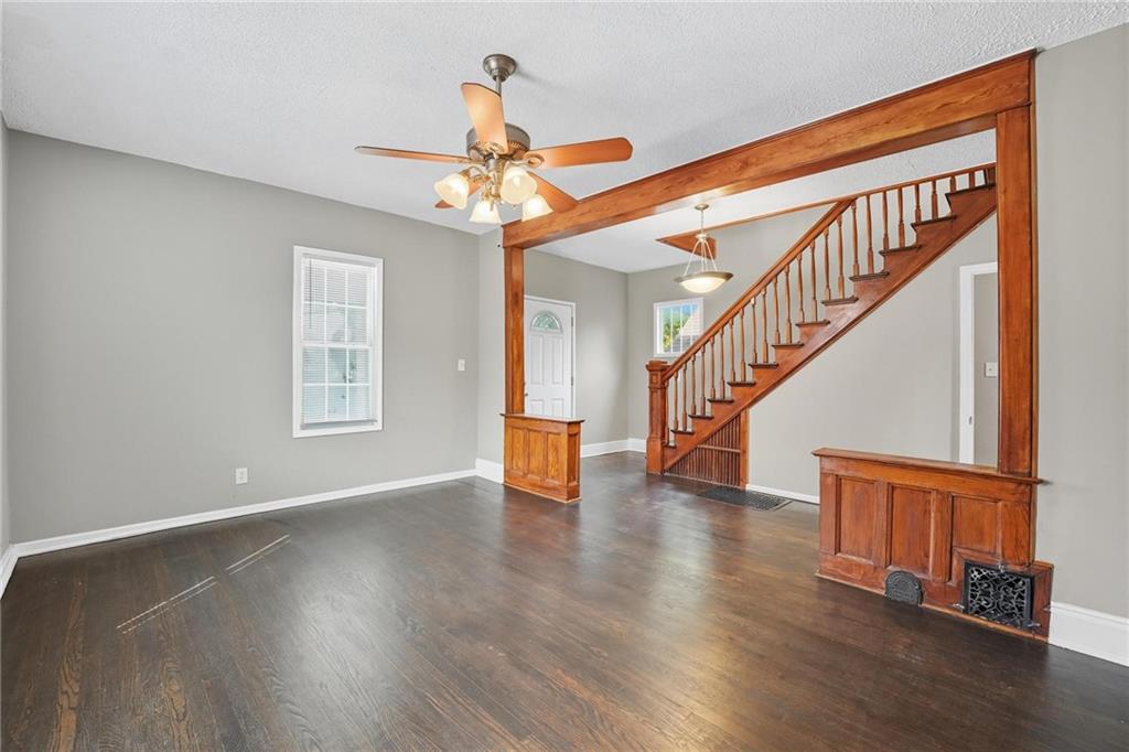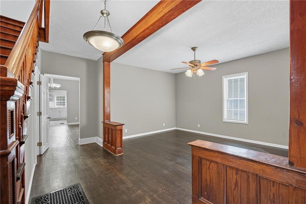 This move-in ready home blends timeless charm with fresh updates throughout. The main floor features a formal living room, dining room, and an additional room that works beautifully as a sitting room, hearth room, or cozy lounge space. The kitchen shines with crisp white cabinetry, plenty of counter space, and a seamless flow to the dining area, plus a convenient half bath nearby. Fresh paint and a roof that’s only one year old give peace of mind. Two staircases, one at the front and one at the back of the home, add unique character. Upstairs, you’ll find four bedrooms, a full bath, and a bonus room that’s perfect for a craft space, flex room, or reading nook. Stairs lead to the attic for great storage or future potential. Outside, enjoy relaxing on the large covered front porch or entertaining on the spacious back porch. Sitting on a corner lot with off-street parking, this home is ready for its next chapter.