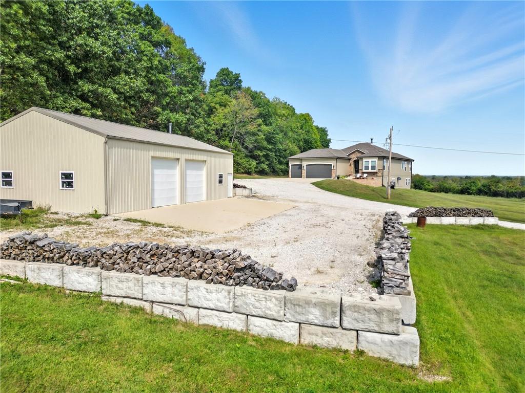 Stunning Ranch on 22.64 Acres with Unmatched Views of Amarugia Highlands Conservation Area. This four-year-young ranch home offers the perfect blend of modern comfort and country tranquility. Featuring 4 spacious bedrooms, 3 full bathrooms, and over 3,000 sq ft of finished living space, including a full walkout basement, this property is designed for both everyday living and entertaining. Perched to overlook Amarugia Highlands Conservation Area, a 1,081-acre outdoor paradise, you’ll enjoy breathtaking scenery and endless opportunities for hunting, fishing, hiking, bird watching, and wildlife viewing right out your back door. Outdoors, the property boasts a fully stocked pond with Crappie and Bluegill, nearly 15 acres of mature timber with outstanding deer and turkey hunting, and a 30x50 workshop, only 4 years new, perfect for projects, storage, or hobbies. All of this is wrapped in the peace and privacy of country living, yet conveniently located just 35 minutes southeast of Overland Park, KS, providing easy access to shopping, dining, and city amenities. This property is a rare opportunity to own a newer home with acreage, recreation, and convenience all in one package.