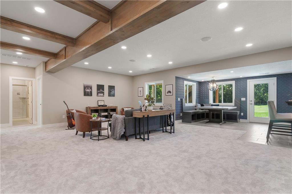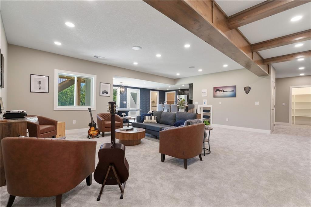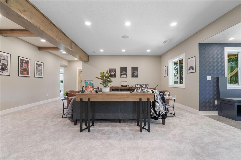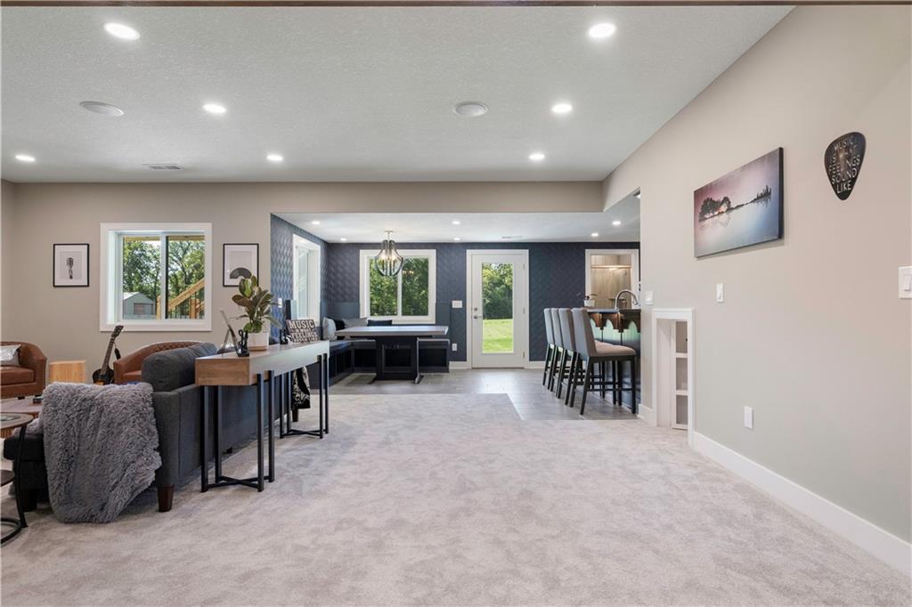 BRAND NEW Reverse 1.5 story by PCDI Homes! This stunning 5-bedroom, 4.5-bath home offers over 4,000 sq. ft. of expertly designed living space on a large 2.51-acre lot. With thoughtful details at every turn, this property combines high-end finishes, modern function, and outdoor living. The main level features soaring 12’ ceilings, white oak hardwood floors, and an open layout anchored by a custom fireplace with wood and tile accents. The gourmet kitchen is a showstopper, boasting a 10’ island, quartz counters, stainless steel appliances, double ovens, prep kitchen, custom tiled backsplash, and built-in hutch in the dining area. The luxurious main-floor primary suite is a true retreat, featuring a vaulted ceiling with wood beams, a cozy coffee bar, and private deck access for enjoying your morning cup with a view. The spa-inspired bath offers a double vanity with quartz counters, an oversized custom-tiled shower with bench, and a freestanding soaking tub. A spacious walk-in closet with tall ceilings and pull-down rods provides smart storage and convenience. Complemented by two additional bedrooms on the main level with a custom-tiled bath and a powder room bath off the entry. A convenient laundry is located on both levels. The finished lower level is an entertainer’s dream with a spacious rec room, wet bar, game area, plus two more bedrooms and two full baths. Car enthusiasts will love the oversized 4-car garage with workshop, sink, epoxy flooring, and a car lift. Outdoor living shines with a covered deck, patio, and firepit — perfect for gatherings. Located in the sought-after Basehor-Linwood school district, this property offers space, style, and sophistication inside and out. *BUILD YOUR DREAM OUTBUILDING / MANCAVE ON THE PROPERTY*