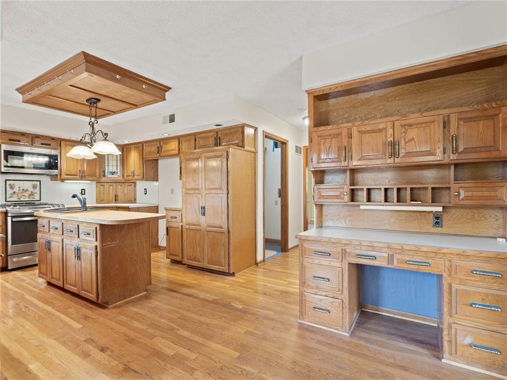 Need more space? This one is for you! More than 3,500 sf of livable space with a walkout basement on a .4 acre lot! The potential in this home is endless – the main floor features a den/office, formal dining room, spacious living area with fireplace and built-ins, half-bath, and the huge kitchen with breakfast area, island, and pantry. Upstairs, there are two secondary bedrooms, a full bathroom and the incredible primary suite complete with a sitting area with fireplace, dual vanities, separate jetted tub and shower, and massive walk-in closet ready to turn into your dream dressing room. There’s an additional entry through this closet to the 4th bedroom making it ideal for another office, nursery, home gym, or countless other possibilities. The walkout basement has a large rec space with another fireplace, a non-conforming 5th bedroom, full bathroom, storm room, and ample storage and workspace. All front windows were replaced in 2023 and include transferable warranty. New decking in 2024. Dishwasher replaced in 2020. New microwave in 2024. New carpet in basement and NE bedroom. New vinyl flooring in the basement bathroom and in the mud room off the garage. New fencing in 2023. Fantastic neighborhood with Brookhill Park right around the corner and the community pool and tennis courts minutes away. Just 15 minutes to downtown KC, close to great restaurants, stores, services, and easy access to highways - this location can’t be beat!