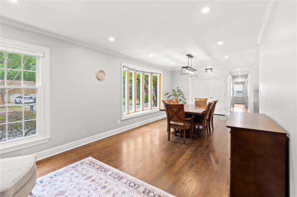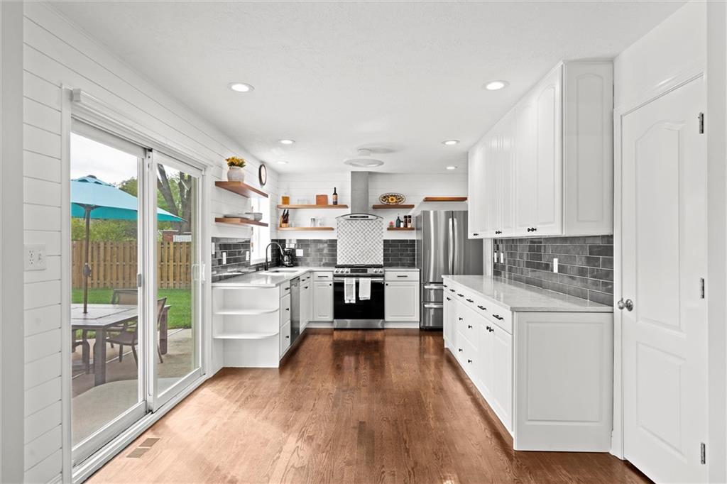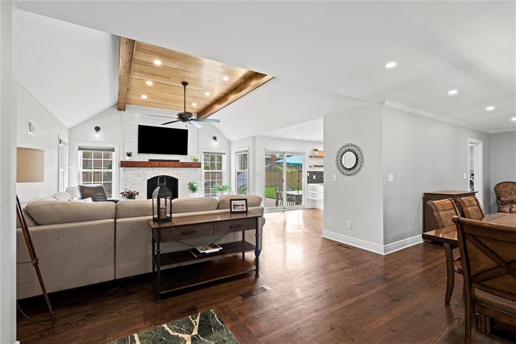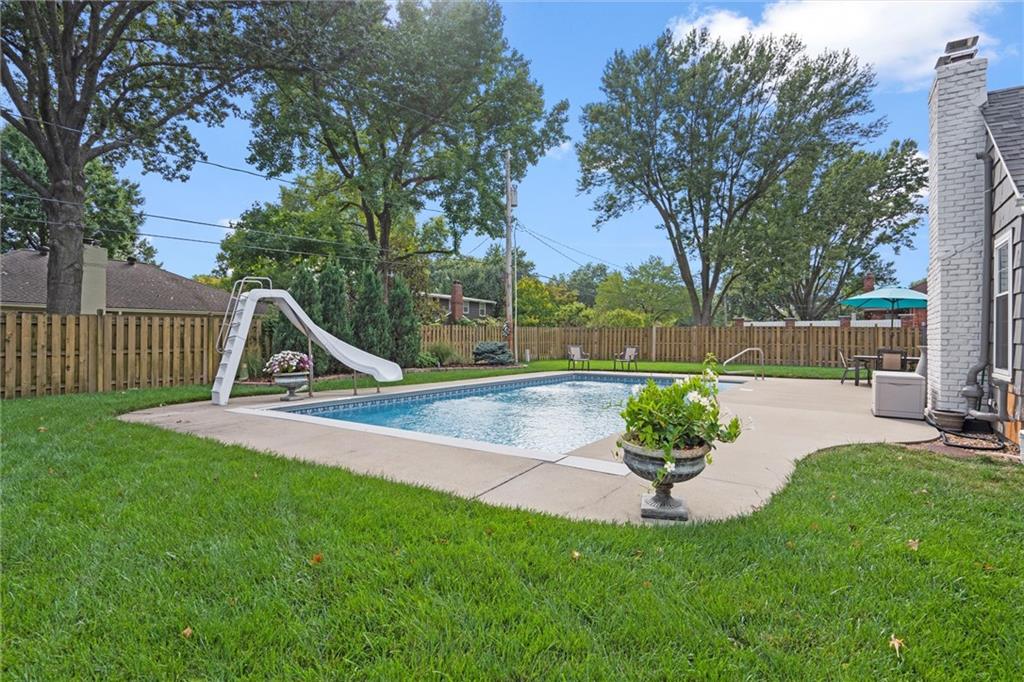 Price Improvement! Beautifully Remodeled Ranch in Sought-After Brookridge Estates – First Time on the Market in 20 Years! Welcome to this spacious and impeccably maintained 4-bedroom, 2.5-bath ranch home in the highly desirable Brookridge Estates. Thoughtfully updated throughout, this home seamlessly blends modern upgrades with timeless charm. The heart of the home is the stunning remodeled kitchen, featuring quartz countertops, custom cabinetry, new sink, backsplash and SS appliances. Gleaming hardwood floors flow throughout the main level, complementing the bright and airy family room with its vaulted ceiling, cozy fireplace, and an abundance of natural light. All four bedrooms are generously sized and located on the main level, each offering ample closet space. The bathrooms have been beautifully remodeled with high-end finishes and attention to detail. The finished lower level adds even more living space with LVP flooring, a spacious rec room, bar, convenient half bath, and a large storage room. Major system updates offer peace of mind for years to come: new roof (2022), new furnace (2022), new water heater (2024), new windows/sliding door and James Hardie lap siding on the front of the home. An in-ground sprinkler system keeps the professional landscaping lush and green. Step outside to your private backyard oasis – perfect for entertaining – with a saltwater pool, manicured landscaping, and a privacy fence creating a true resort-like setting. This is a rare opportunity to own a move-in ready home ideally located near shops, restaurants, Brookridge Golf Course, top rated Shawnee Mission Schools and easy highway access. Don’t miss it!