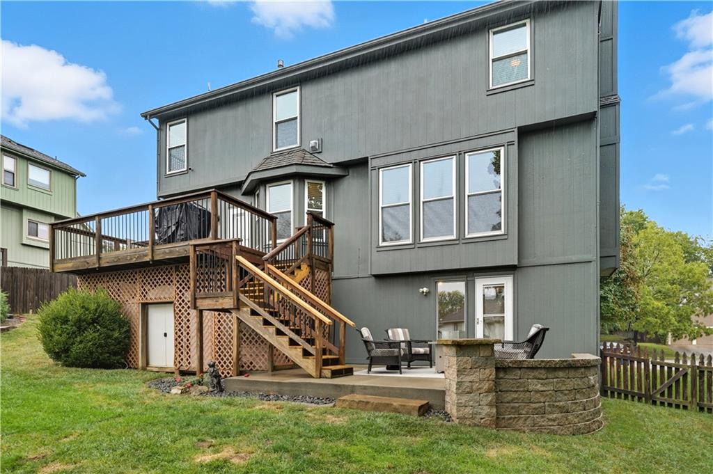 This fabulous home in the Northland’s prime location is not only a stone’s throw away from shopping, but also boasts newly refinished hardwood floors that gleam with charm! Get ready to entertain in style! On the main level enjoy formal living and dining rooms, a spacious great room with wood-trimmed gas fireplace, and an inviting eat-in kitchen with sparkling granite countertops, electric range and pantry! Upstairs, the adventure continues with bedrooms that have walk-in closets, an upgraded Jack and Jill bath, and a convenient laundry room. The king-sized primary bedroom is a dream come true, showcasing a vaulted ceiling and a luxurious five-piece ensuite which includes a fully tiled shower, large walk-in closet and his/her vanities! The walk-out lower level is chill central, featuring a wet bar, a fifth bedroom or perfect home office, a full bath, and easy access to an expanded patio and deck, all within a fenced yard perfect for epic gatherings! Park Hill South High School, 10 Minutes to Downtown or KCI!