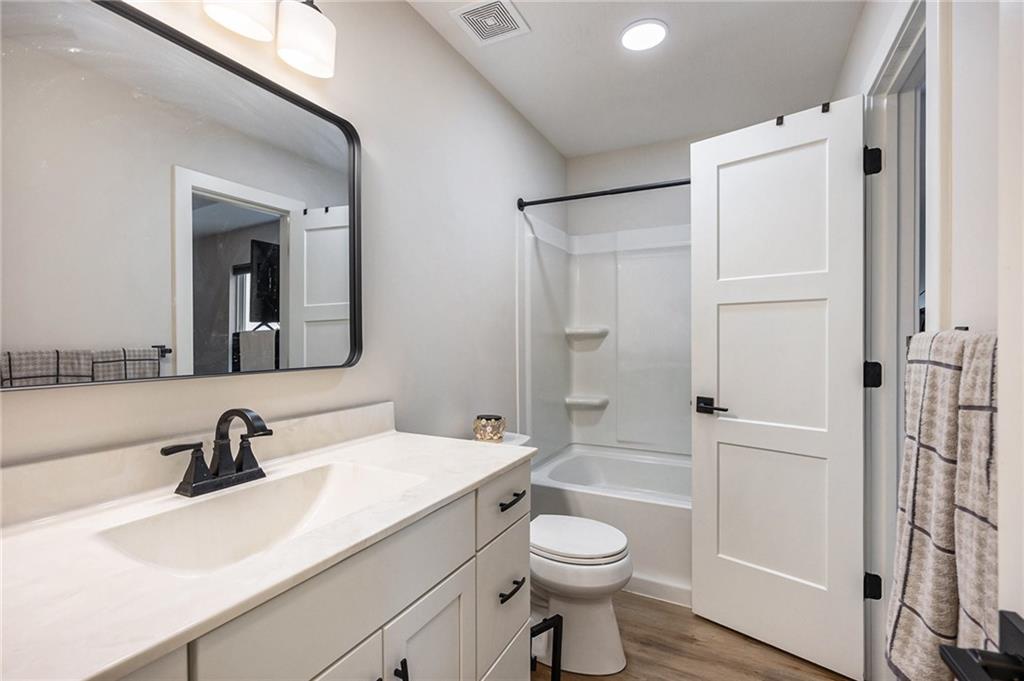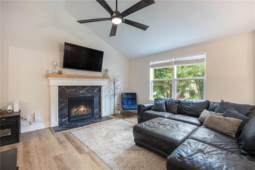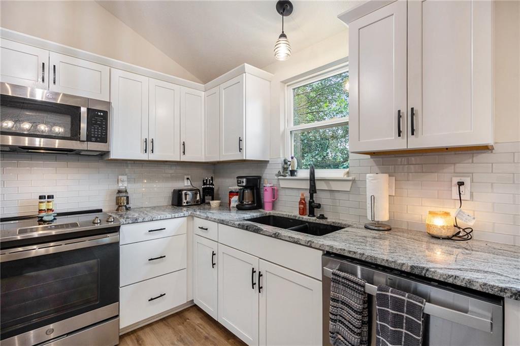 This is a shortsale property! Welcome to this stunning 3-bedroom, 1.5-bath home nestled in an established neighborhood in the Liberty School District. Thoughtfully updated from top to bottom, this home features fresh interior and exterior paint, new doors and windows, luxury vinyl plank flooring, and plush carpet in the bedrooms. The fully remodeled kitchen is a showstopper, boasting brand-new cabinets, granite countertops, stainless steel appliances, and a dining area that overlooks the brand-new deck and spacious fenced backyard perfect for entertaining or relaxing outdoors. The main living room offers a warm and inviting space with a cozy gas fireplace and an impressive 60 ceiling fan, ideal for family gatherings. The finished lower level includes a second living area with a wood-burning fireplace, a convenient walk-out to the patio, a half bath with laundry, and access to an oversized garage with plenty of space for storage or a workshop. Additional updates include a brand-new HVAC system, updated plumbing, and electrical. Be sure to check the supplements for a full scope of work this home is move-in ready and wont last long!
