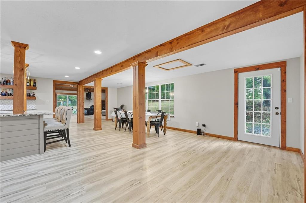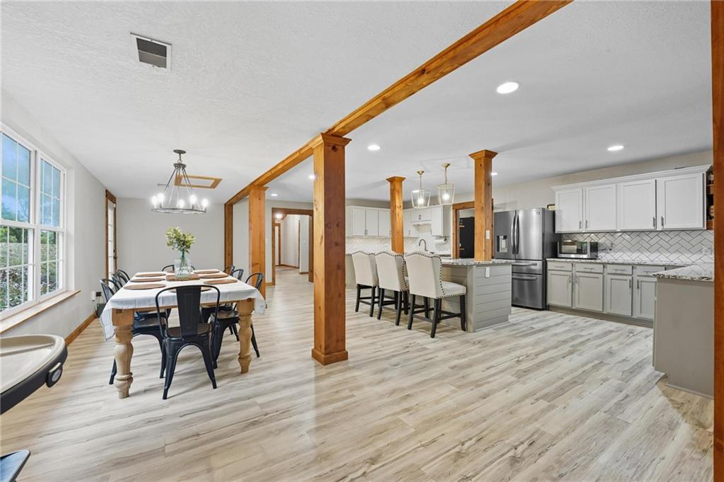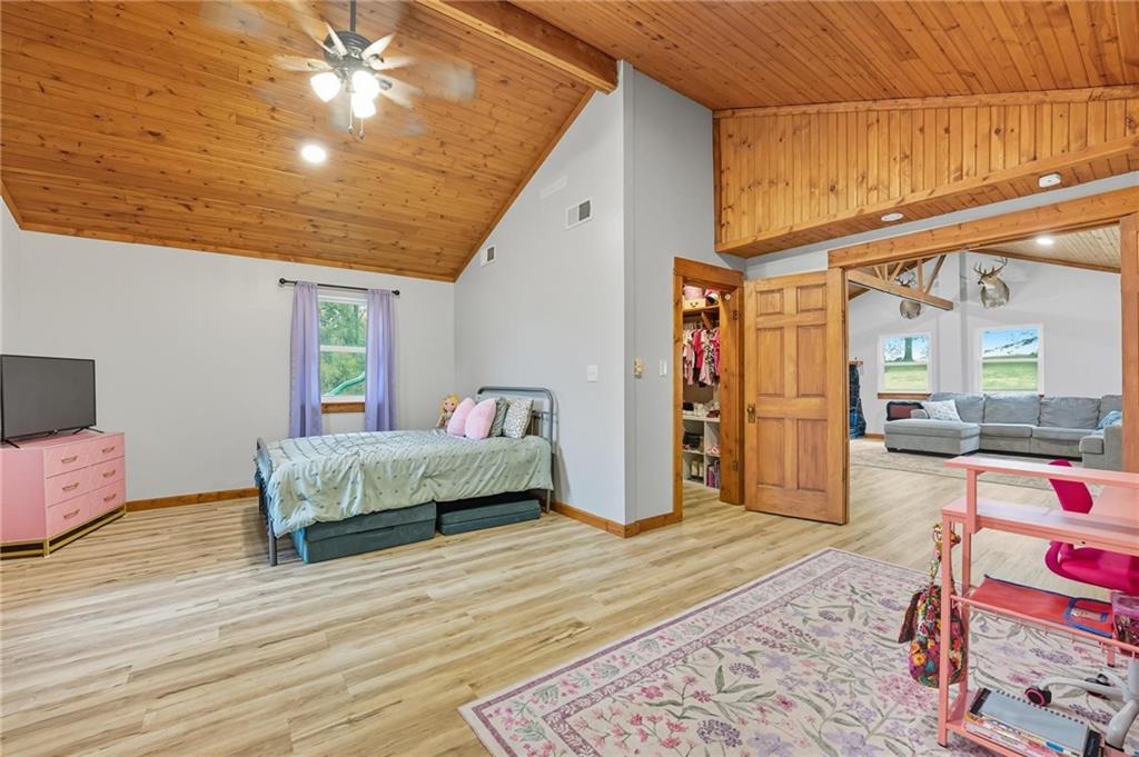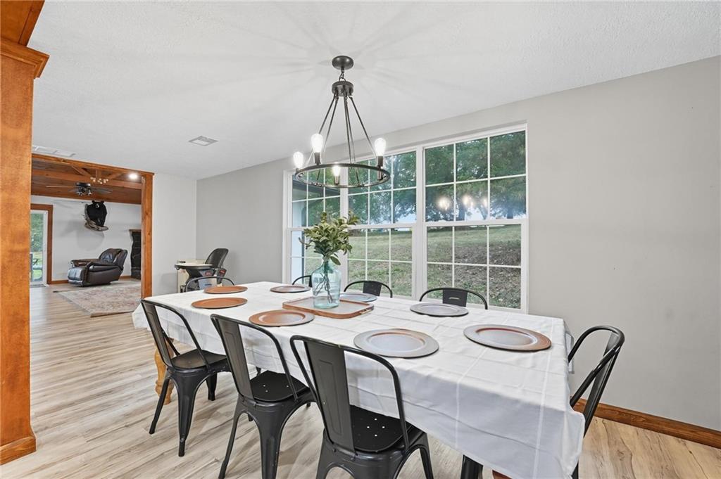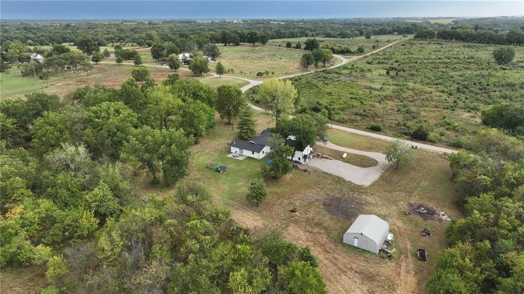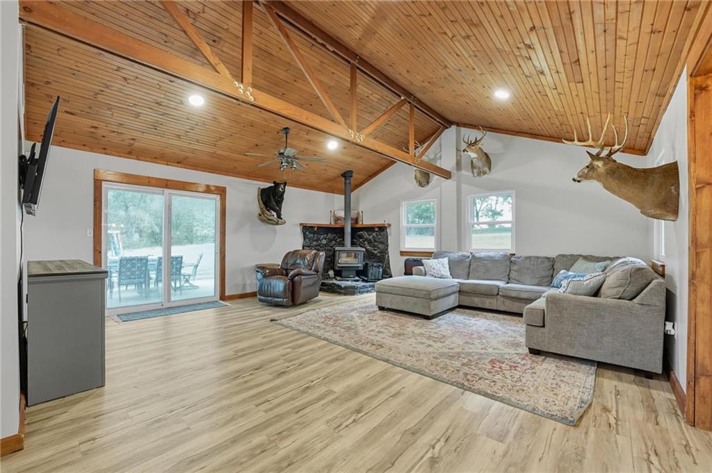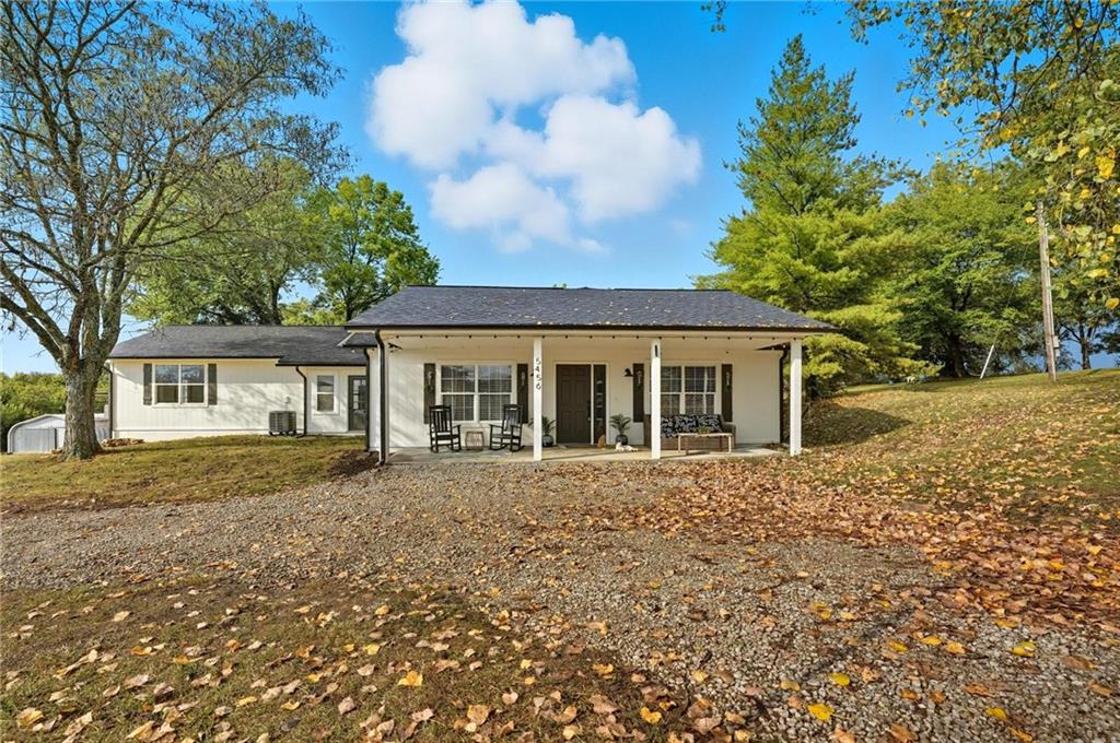 BACK ON MARKET - NO FAULT TO THE SELLER! Welcome to your dream retreat! This stunning 4 bedroom, 3 bath ranch home sits on 30 serene acres, surrounded by peaceful views and abundant wildlife. Step inside and you’ll be greeted by vaulted ceilings with rich wood accents, gorgeous light fixtures, and a completely remodeled interior that blends modern elegance with rustic charm. The oversized living room is anchored by a cozy wood-burning stove and opens onto a spacious patio, perfect for quiet evenings while overlooking your acreage. The kitchen offers tons of cabinet space, granite countertops, a farmhouse sink, updated lighting, large kitchen island, dining area, plus a huge walk-in pantry with room for an extra fridge/freezer, and built-in storage and appliance area. All 4 bedrooms are oversized and feature walk-in closets, each designed with comfort in mind. The bathrooms have been beautifully remodeled, each with its own unique character. This property features two possible master suites. To find one, walk through the breeze way to a secluded bedroom that includes a large walk-in closet, expansive bedroom space, and direct access to a freshly stained deck overlooking the peaceful countryside. With two spacious suites, the home is great for comfortable generational living, offering privacy and convenience for extended family or guests. Laundry room and an additional mudroom provide everyday convenience. The home is also equipped with all newer dual HVAC units and water heaters, roof is 3 years old. Sit out on the covered front porch enjoying your morning coffee and country life. This property has a 30x40 Quonset building with concrete floors, as well as an attached garage where you will find a storm shelter for peace of mind. The list goes on! Whether you’re looking for a private getaway, a family homestead, or a place to simply enjoy wide-open spaces, this property delivers it all!