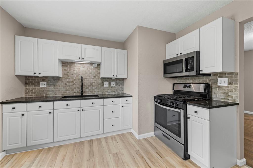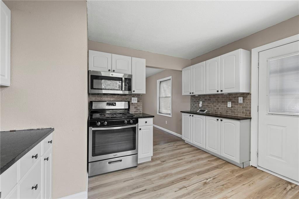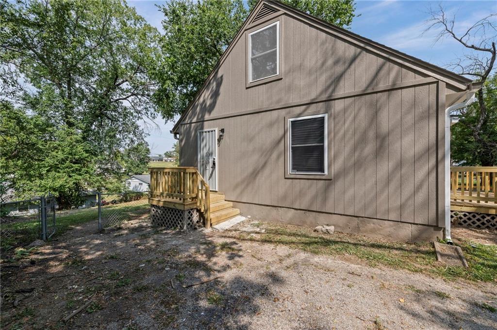 Beautiful move-in ready 4-Bedroom home in Kansas City, MO! This stunning residence has been meticulously renovated to blend modern convenience with classic charm. As you step inside, you’ll be greeted by gorgeous hardwood floors that flow seamlessly throughout the main level. Enjoy the convenience of a spacious main level master bedroom with a full bathroom. The updated kitchen is a chef's delight, showcasing stainless steel appliances, sleek countertops, and opens to a cozy dining area perfect for family meals or entertaining guests. Every bathroom has been fully updated with luxurious new tile, stylish vanities, and contemporary light fixtures, offering a fresh and inviting feel. Fresh paint, new light fixtures and ceiling fans add a modern touch while enhancing the home’s warm ambiance. Venture upstairs to find new carpeting that invites you into two additional bedrooms and a full bathroom, providing ample space for family, guests, or a home office. The finished basement boasts a convenient walk-out design, featuring an additional bedroom and a full bath—ideal for guests or as a private retreat. The laundry area in the basement offers practicality and ease of use. Outside, you'll love the newly designed front patio and side deck—perfect for soaking up the sun or hosting summer barbecues in your private outdoor space. Additional updates to this lovely home include new windows, all new siding and a new roof! Don't miss this incredible opportunity to own this fully updated home in KC! Schedule your showing today and step into a space that feels like home!